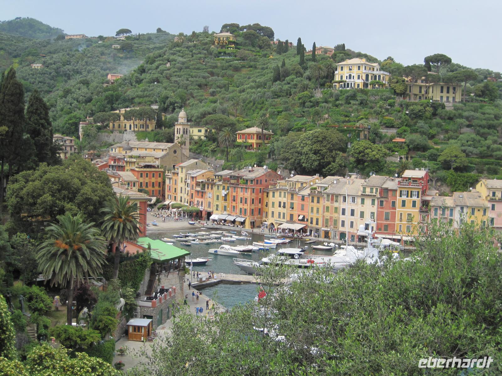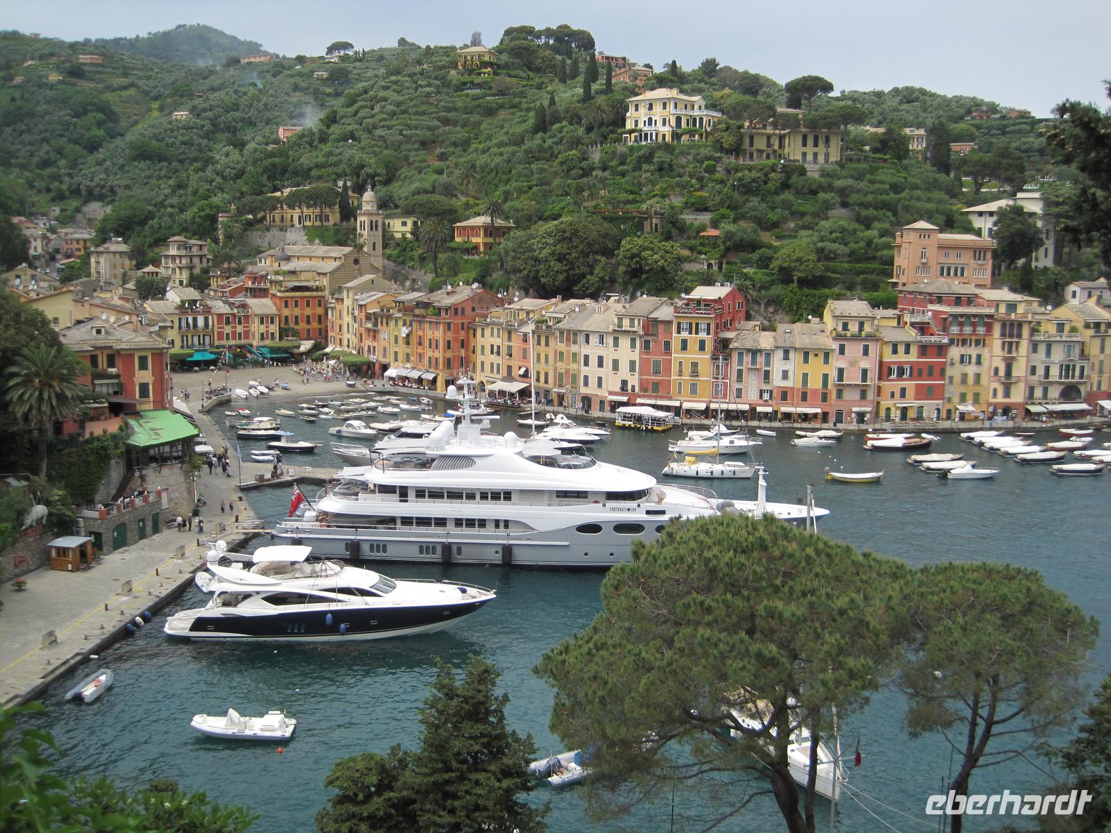 An unserem ersten fakultativen Ausflug nach Genua und Portofino erwartete uns ein bewölkter Himmel. Die 33 RG, die sich für diesen Ausflug entschieden hatten, konnten noch einen trockenen Start erleben, aber zur A10 Fahrt nach Genua regnete es zeitweise. Nach Franca zu urteilen, war das nicht so schlimm, da ca. 40 km der ca. 110 km Strecke bis Genua aus Tunnel bestehen. Zum Glück hatten wir für unsere knappe Freizeit in Genua sogar etwas Sonne, die sich für den Bummel durch die engen Gassen der Altstadt bewährte. Auf der Fahrt nach Portofino erfuhren wir, dass auf Grund von zu hohem Wellengang, die Schifffahrt von Santa Margherita nach Portofino und zurück aus Sicherheitsgründen geändert wurde. So verblieb genügend Zeit, um die Altstadt von Santa Margherita einschließlich Mittagessen zu genießen, bevor wir 13.15 Uhr nach Portofino mit dem Schiff fuhren. Durch den Wellengang, eine Fahrt wie beider „ Achterbahn". Die Einfahrt in die Bucht von Portofino war Charme pur. Die folgende Freizeit bestätigte dann die Beschreibung der einschlägigen Literatur, die einmalige Lage des Ortes. Alles Schöne ist hier beisammen, die Villen, die kleinen Häuser an der Bucht und die höher gelegene Chiesa die Giulio oder das Castell Brown. Die Rückfahrt mit dem Schiff war ähnlich turbulent wir die Herfahrt. Unser Chauffeur Jan erwartete uns schon am Hafen. Während der Rückfahrt auf der A12/A10 nach Diano Marina, konnten wir immer mal wieder das ligurische Meer, zwar Wolken verhangen, genießen.