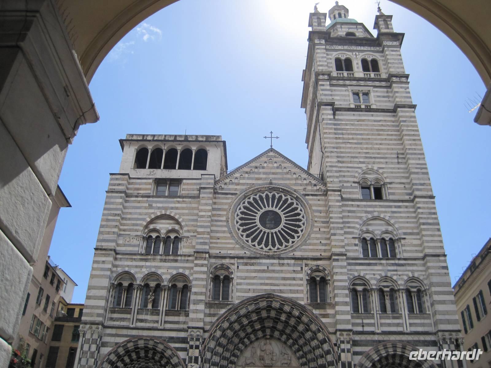 Bei ungemütlichem und regnerischem Wetter mussten wir die allgemein erwartete und begehrte Reise heute antreten. Leider erfuhren wir bereits gegen 9.00 Uhr, dass die Bootsschifffahrt von Rapallo nach Portofino ausfallen musste, wegen zu hohem Wellengang. Eine Alternative nach Portofino zu kommen, gibt es nicht für eine Reisegruppe unserer Größe von über 40 RG. Zu all dem Ärger bekamen wir es noch zur Anfahrt nach Genua mit einem Stau auf der A10 zu tun, der uns ca. 2 Std. kostbare Zeit kostete. Unsere RG hatten freundlicher Weise die Einsicht, dass mit Petrus , w/desRegens, da oben nicht zu verhandeln ist. Mit einer Freizeit in Genua konnten einige der RG trotzdem solche Sehenswürdigkeiten, wie die Kathedrale, dem Dogenpalast oder das Geburtshaus von Christoph Columbus besuchen und bestaunen. Die anschließende Stadtrundfahrt rundete das Erlebnis der ligurischen Hauptstadt ab. Auf der Fahrt nach Rapallo erlebten wir ein weiteres schönes Gebiet von öffentlichen Einrichtungen, wie Kinderkrankenhäuser und wunderbar gebauten Villen, die sich harmonisch in das Gesamtbild der Landschaft einfügten. Bei der Anfahrt nach Rapallo beeindruckte uns die Lage der Bucht und die Stadt Rapallo selbst. Eine einladende Promenade und die parallel laufende Einkaufsstraße hatten ihren eigenen Reiz. Leider waren in der Zeit unserer Anwesenheit einige Läden bereits geschlossen. Zur Erleichterung aller fand die Heimfahrt unter günstigen Verkehrsbedingungen statt, so dass der Stau auf der Anfahrt vergessen war und trotz der Unannehmlichkeiten nach wie vor eine nette und freundliche Stimmung an Bord herrschte, wohl auch in der Annahme, das unser Unglück mit Wetter und Verkehr nun vorbei sei. Nach der glatt verlaufende Heimreise zum Hotel, diskutierten bereits einige RG über den Abend mit dem typischen ligurischen Gerichten. Überrascht und erfreut waren alle von den individuellen Gerichten, wie: Vorspeise: Gemüsesuppe mit den Produkten der Saison, Trofie auf ligurische Art, Hauptspeise: Hase auf ligurische Art und Lachs in Salzkruste - alles vom feinsten!!! Viele anregende Gespräche an den Tischen rundete das Gefühl ab, dass alle RG bis hier ein nettes Reiseerlebnis hatten.