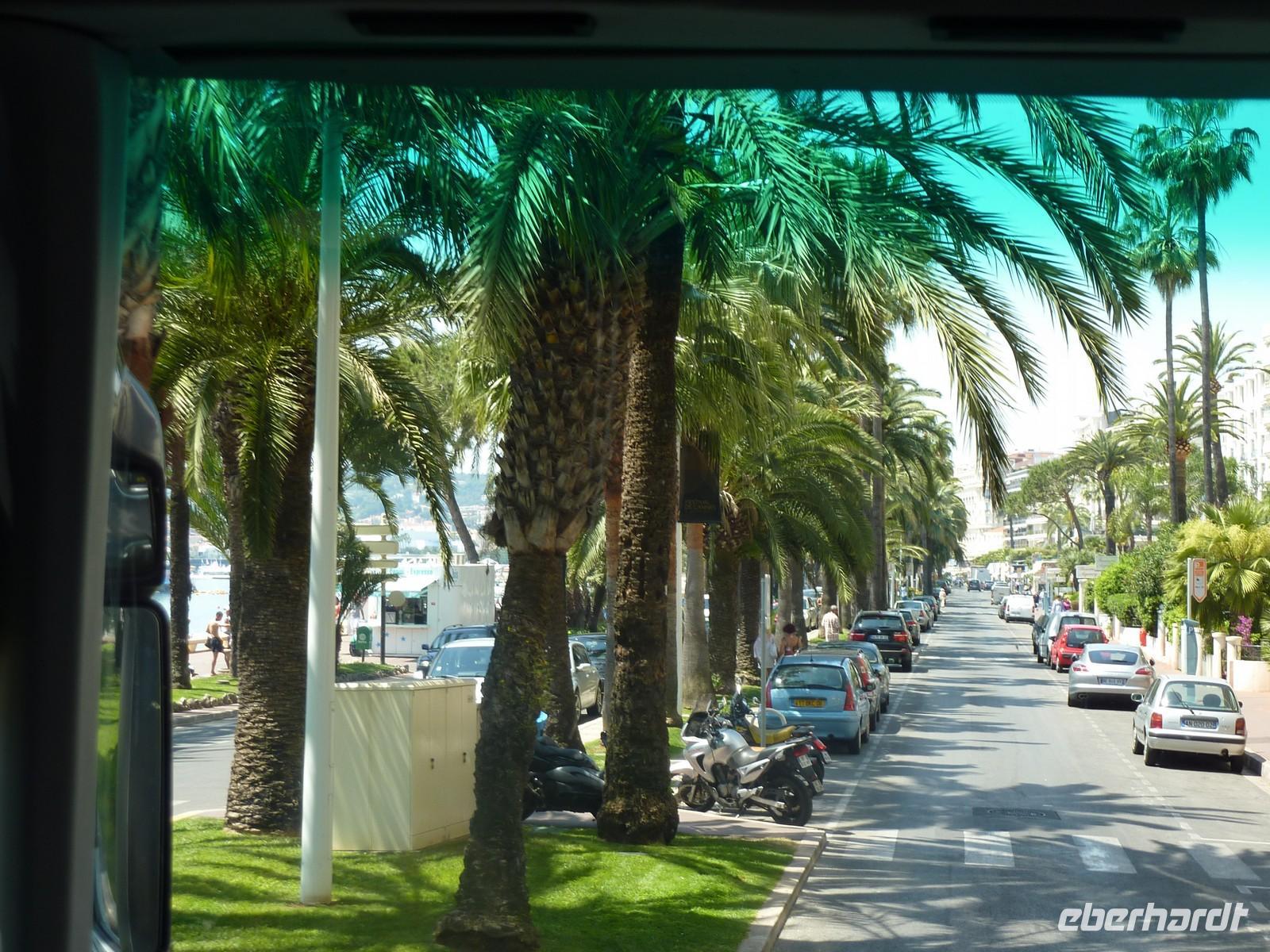 Palmen Luxusboutiquen u. Hotel darunter das berühmte Carlton, sowie das mit Nachtclub u. Casino ausgestattete Festival u. Kongressgebäude. Die 2 km lange Promenade bietet herrliche Blicke auf die Bucht und das Esterel- Gebirge.