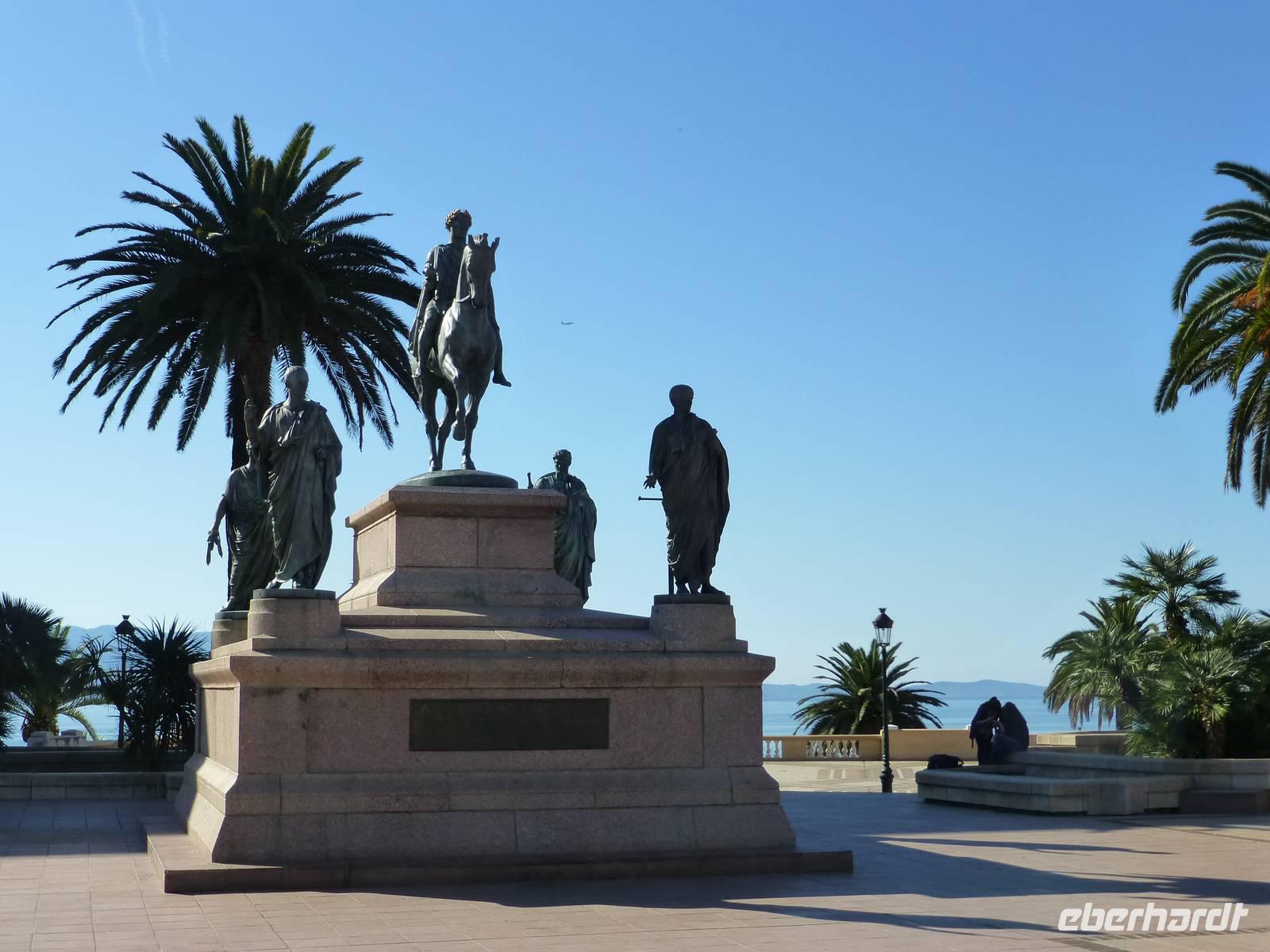 Mit unserer Reiseleitung Catherine erkundeten wir heute die Geburtsstadt Napoleons. Am Austerlitzplatz befindet sich das eindrucksvolle Denkmal Napoleon I. Die Statue des Kaisers bildet den Abschluss der 1500 m langen Achse, deren Beginn beim Place Foch durch die Statue Napoleons als Erster Konsul angezeigt wird. Das Denkmal zeigt den Kaiser in Mantel und Zweispitz, zwei Adler fliegen Napoleon voraus und eine geneigte Stele erinnert an seine Ruhmestaten. In der Grotte, die heute seinen Namen trägt, soll Napoleon Bonaparte als Kind gespielt haben. Die weitere Rundfahrt führte uns Richtung den Sanguinares Inseln. An dieser Küstenstrasse legten wir einen kleinen Stopp an dem sehenswerten Friedhof ein mit dem Grab von Tino Rossi.