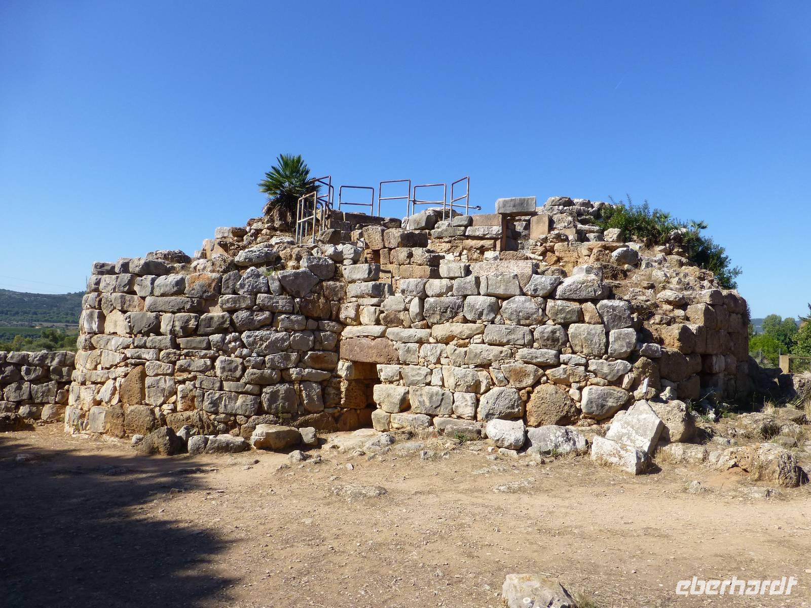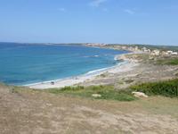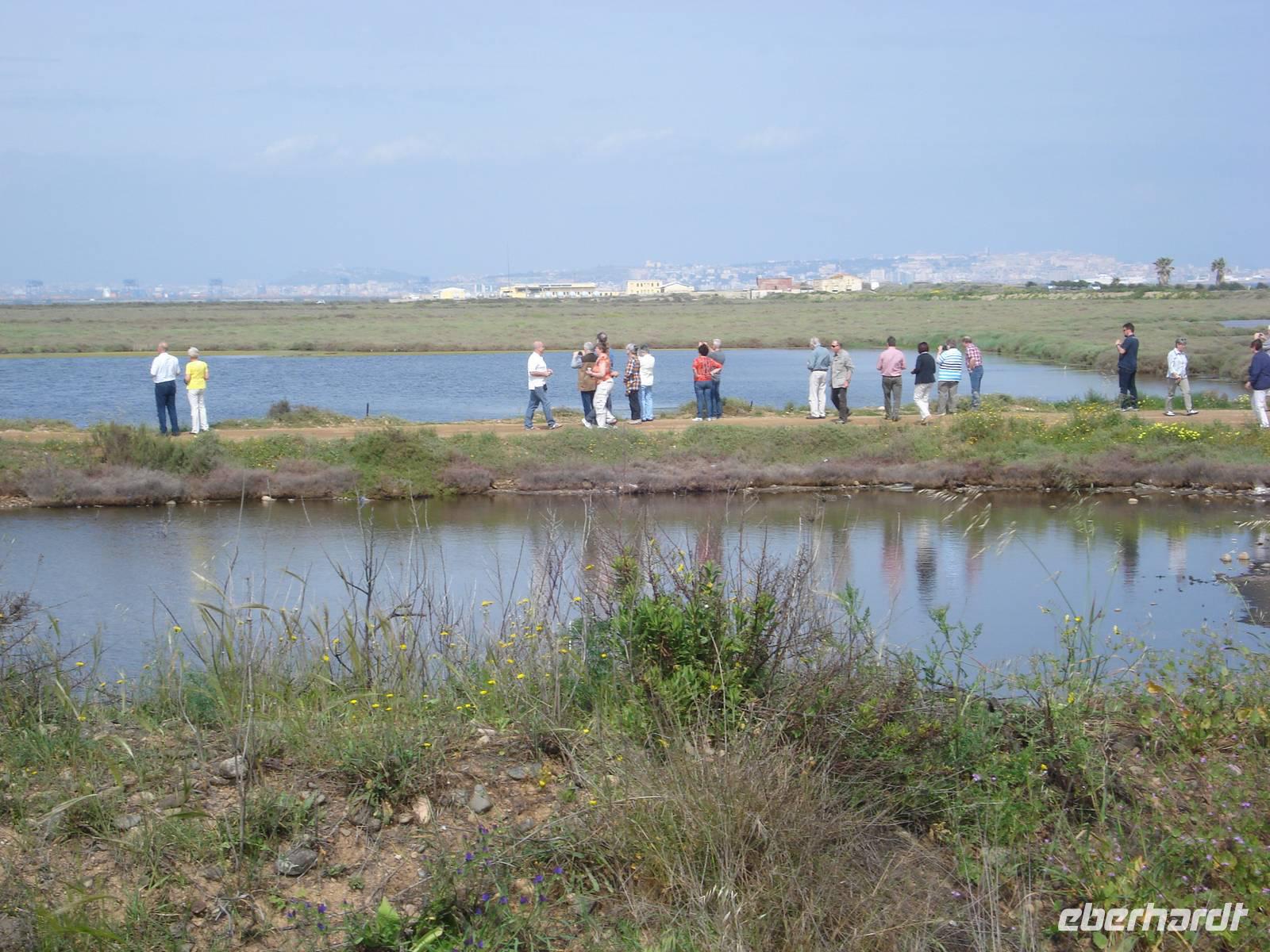 Nach einem kleinen Spaziergang erreichten wir die Ausgrabungsstätte. Tharros war einst die größte und bedeutendste phönizisch-römische Hafenstadt Sardiniens. Phönizier gründeten zwischen dem 11. und 8. Jahrhundert vor Christus diese Handelsstadt. Von den Römern wurde sie im 3. Jahrhundert vor Christus besiedelt und ausgebaut. Aufgrund der ständigen Sarazenenüberfälle wurde die blühende Metropole im 11. Jahrhundert endgültig aufgegeben. Nachdem sie jahrhundertelang unter Schutt und Macchia vergraben lag, entdeckten Hobbyarchäologen im 19. Jahrhundert die Stadt. Da unser Gästeführer uns im Stich gelassen hatte, nahm Claudia die Besichtigung selbst in die Hand. Wir bestaunten die Thermen mit ihrem ausgeklügelten Wasser- und Heizsystem, die Straßenanlage sowie den punischen Tempel. Vom Aussichtspunkt mit der einstigen nuraghischen Siedlung genossen wir einen schönen Blick auf die Lagune von Cabras sowie die Halbinsel Sinis.
