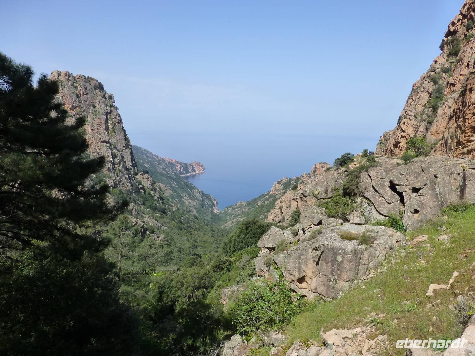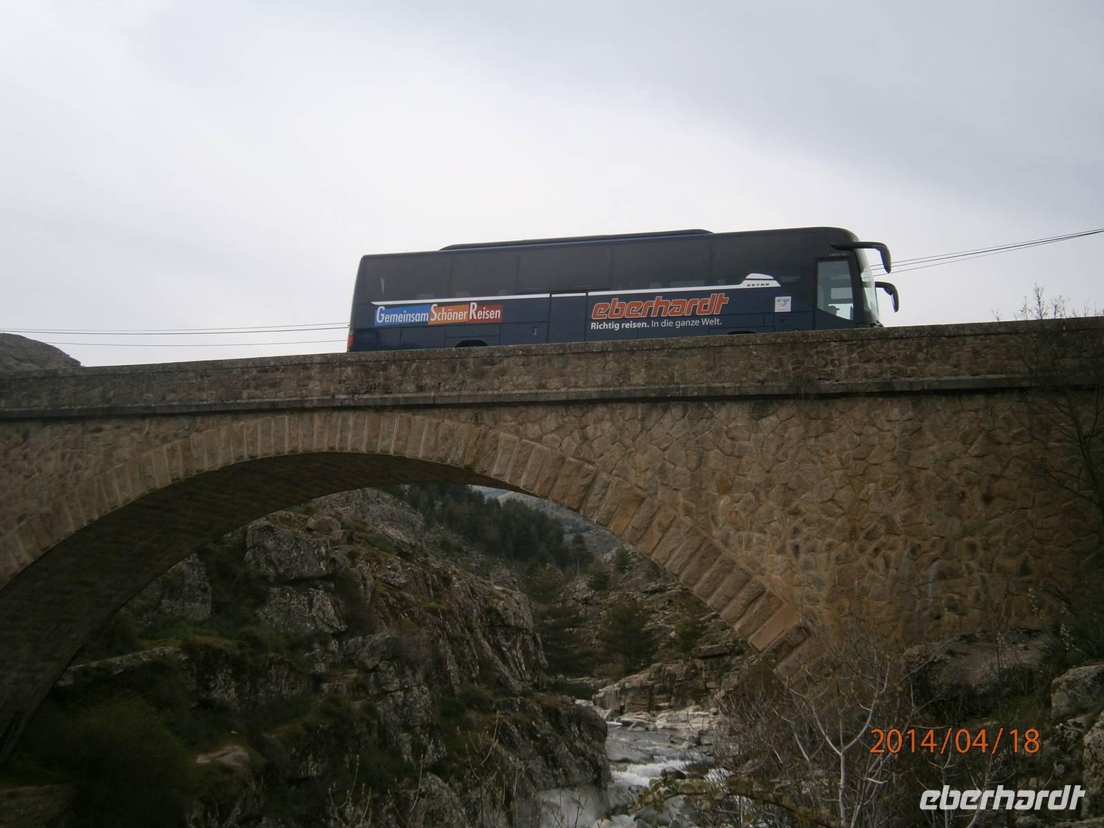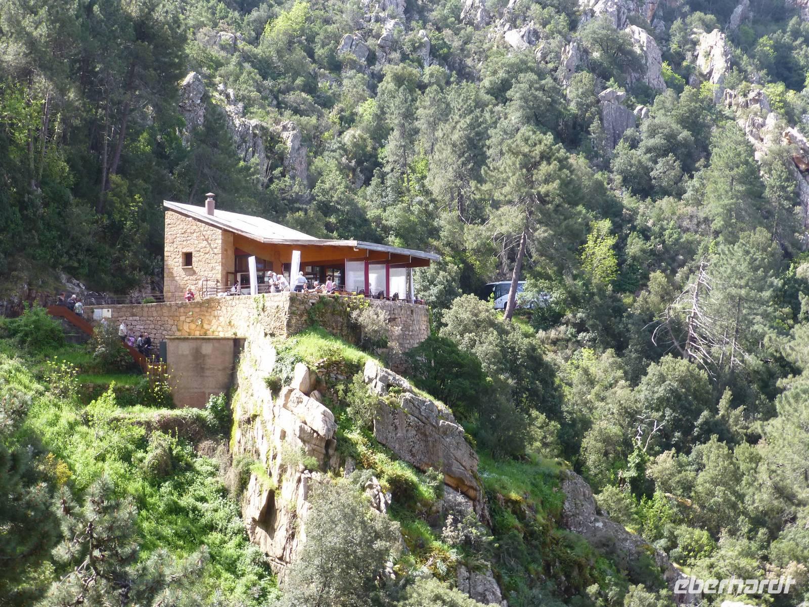 Nach diesem Naturereignis fuhren wir weiter nach Porto zur Mittagspause. Gestärkt begaben wir uns in die wildromantische Spelunca Schlucht, welche ein Werk von den Flüssen Aitone und Tavulella ist. Mit dem Col Col de Vergio, mit 1473 m der höchste Pass Korsikas, erreichten wir den höchsten Punkt unserer Reise. Durch das Niolo vorbei am Stausee von Calacuccia erreichten wir die Scala di Santa Regina. Sie gehört zu den berühmtesten und wildesten Schluchten Korsikas und durchquert die Steinwüste im Nordosten des Niolo. Der längste Fluss Korsikas, der Golo (84 km) zwängt sich in diese Schlucht. Eine Legende gab der Schlucht den Namen, die Treppe der hl. Königin. Durch das fruchtbare Golotal erreichten wir das Hotel Isolo in Lido di Marana am See von Biguglia.