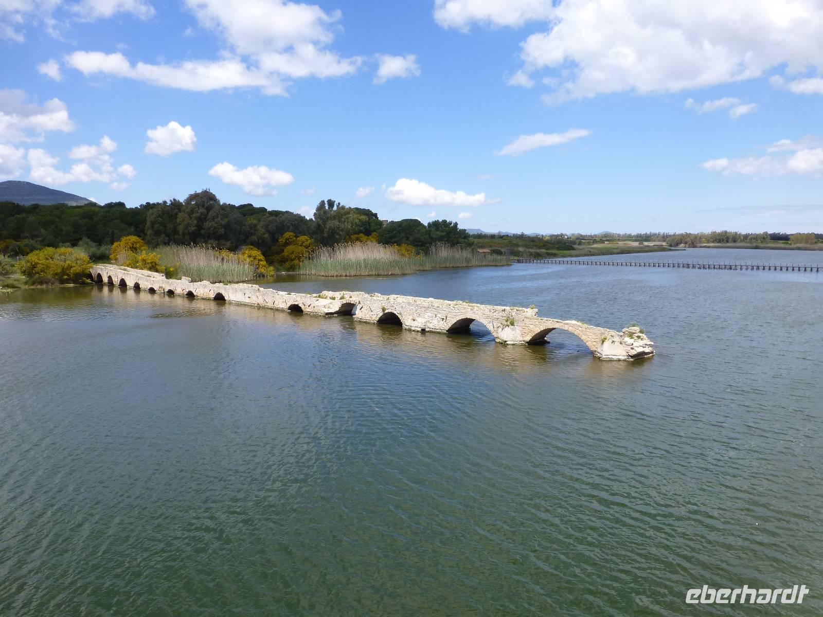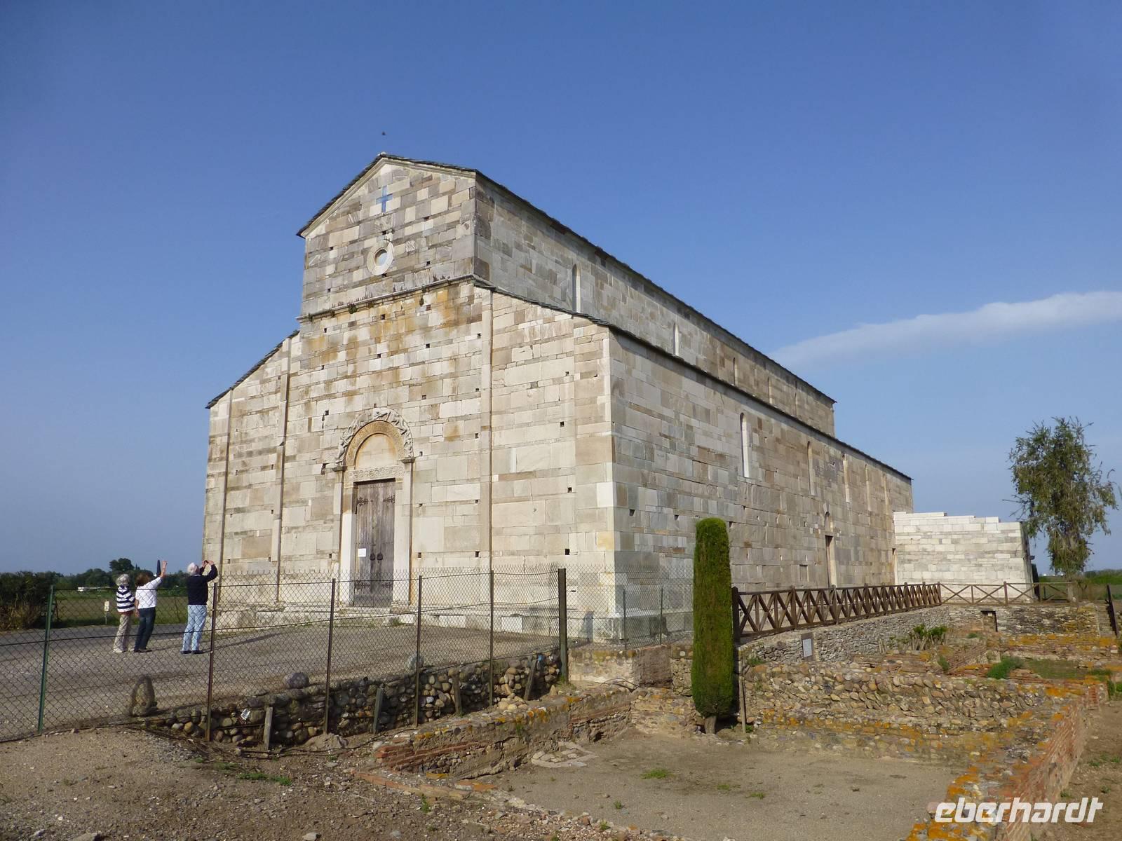 Durch die Campidano Ebene fuhren wir gen Norden, um am heutigen Tag Tharros und Bosa zu besuchen. Tharros liegt auf der Halbinsel Sinis. Die große Landzunge ist flach und sehr kahl. Die Unberührtheit der Halbinsel sowie ihre besondere Flora und Fauna (Flamingos, Eisvögel) machen sie zusammen mit den riesigen fisch- und vogelreichen Lagunen zu einer ökologisch besonderes wertvollen Zone. Die größte Attraktion der Halbinsel ist die Römerstadt Tharros. Am Parkplatz in San Giovanni di Sinis befindet sich die gleichnamige Kirche. Dabei handelt es sich nicht nur um das älteste, sondern auch um eines der schönsten Gotteshäuser auf der mit Kirchen wahrlich gesegneten Insel. Der winzige Sakralbau wurde im 5. Jahrhundert als byzantinischer Kuppel-Zentralbau begonnen und im 9. Jahrhundert mit einem Lang- und Querschiff versehen.