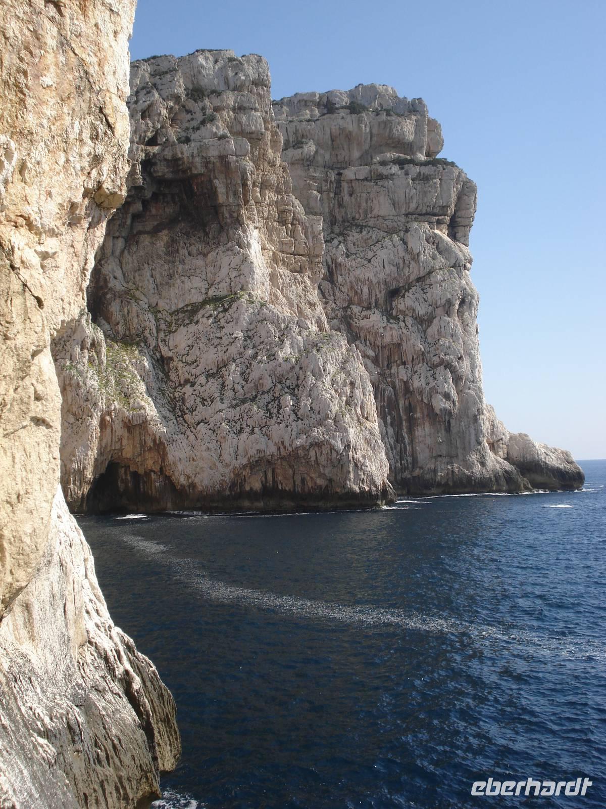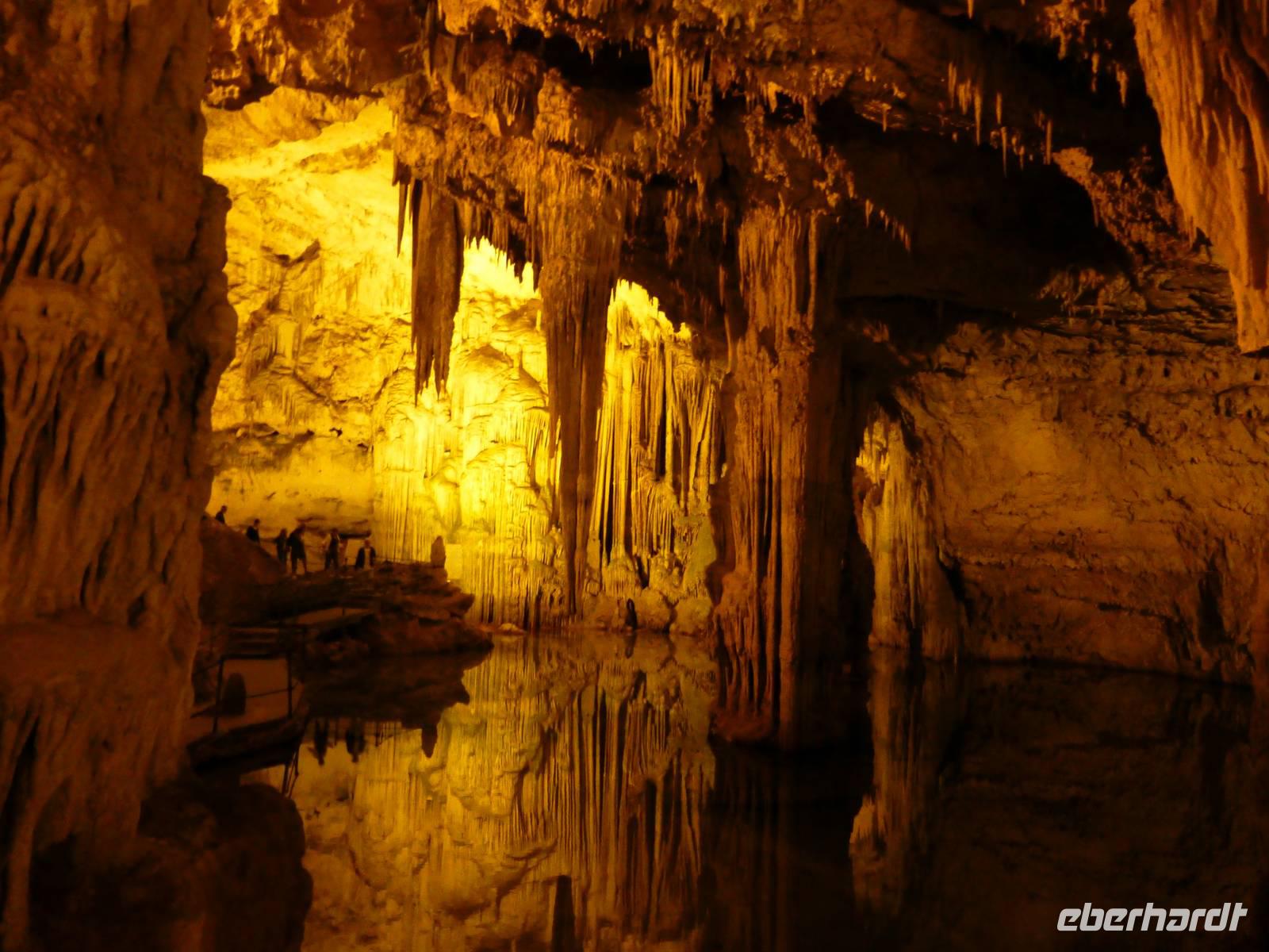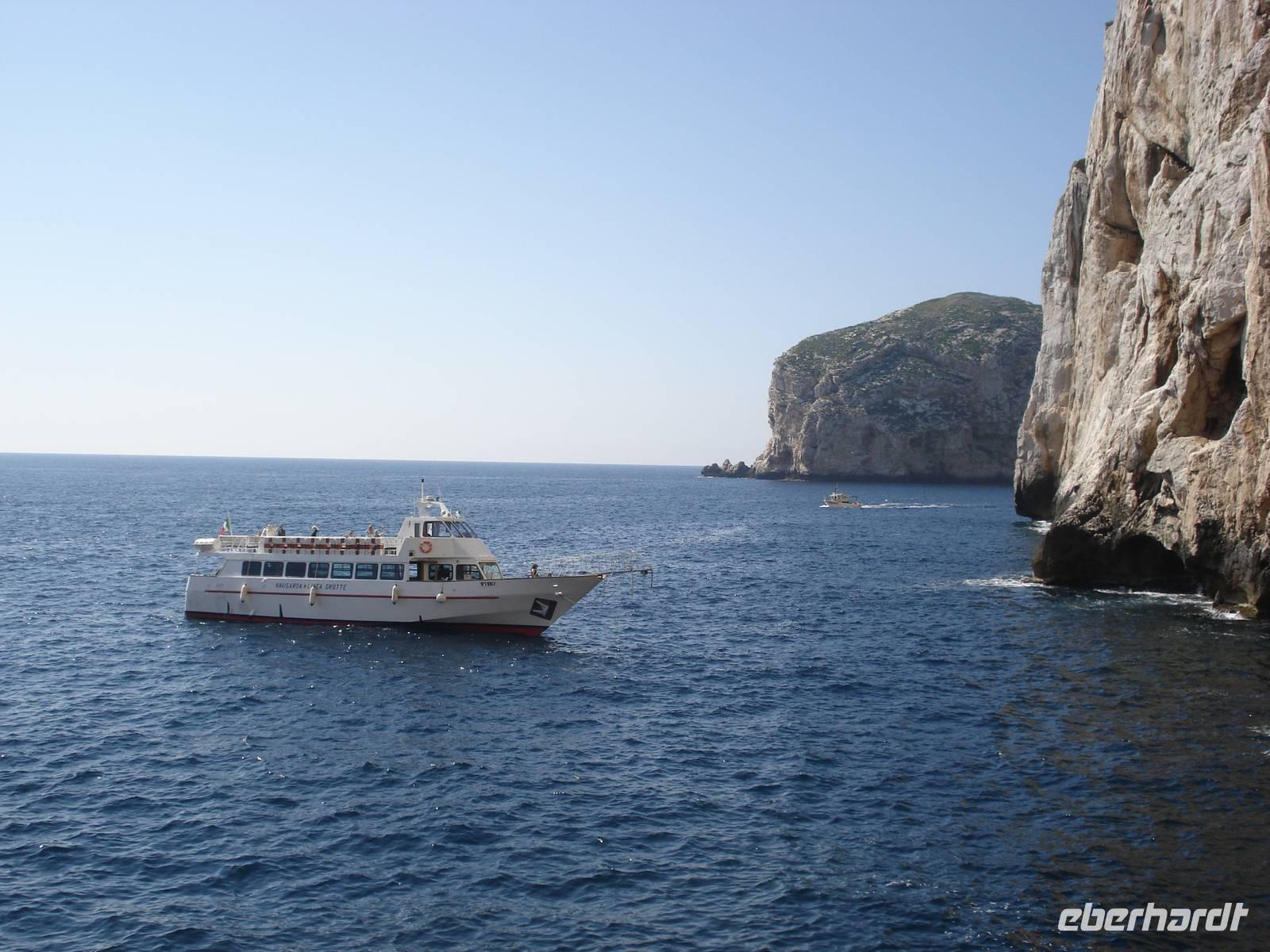 Bei diesem traumhaften Wetter und ruhiger See freuten wir uns auf die Bootsfahrt zur Grotta di Nettuno, eine der schönsten Tropfsteinhöhlen des Mittelmeeres. Das Boot brachte uns bis zum Eingang der Grotte am Fuße der steil aus dem Meer aufragenden Kalkklippe Capo Caccia. Die mächtigen Tropfsteingebilde beeindruckten uns sehr.