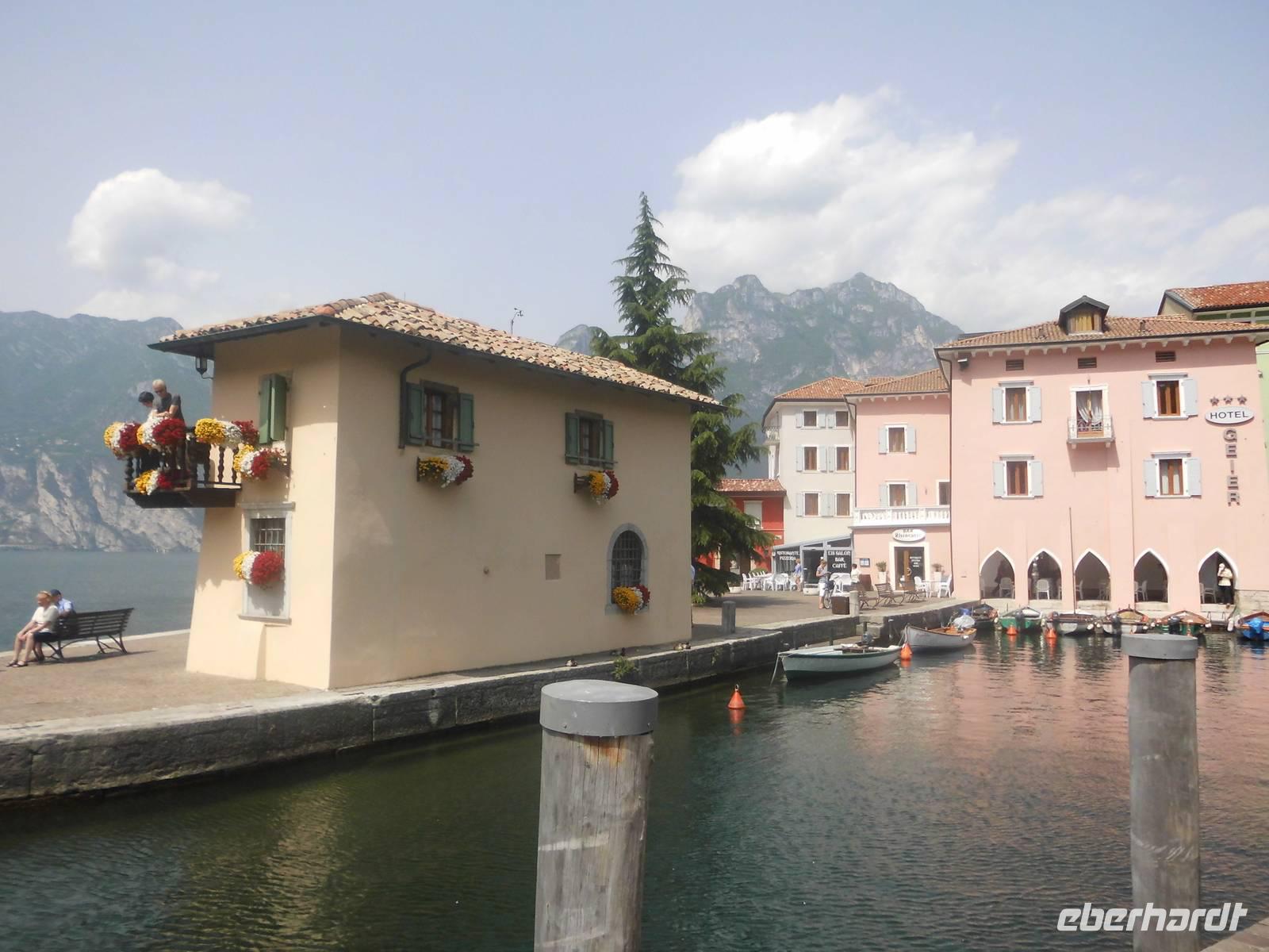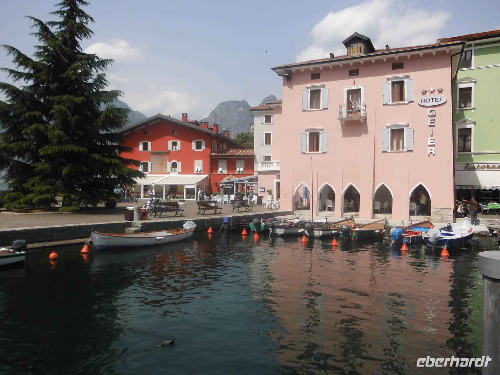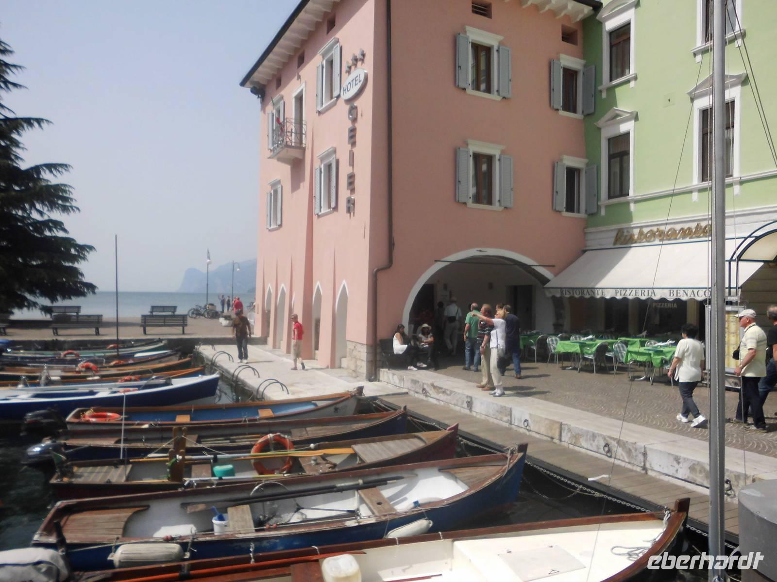Am Morgen brachte uns unsere Weiterreise die interessante Fahrt durch Südtirol, an den Dolomiten und bekannten und schönen Orten wie Brixen, dem Säbenberg und Bosen vorbei, durch die Täler der Flüsse Eisack und Etsch bis zur Abzweigung am nördlichen Gardasee. Durch die berühmte „Kerbe" bei Mori und am Loppiosee, die einst im 15. Jh. die Venezianer nutzten, um in einer Nacht- und Nebelaktion ihre Flotte über Land an den Gardasee zu bringen, fuhren wir mit herrlichem Talblick hinunter nach Torbole. Eine Pause nutzten wir zu einem Bummel hin zum winzigen, malerischen Hafen und in der Altstadt, in der Plaketten und der Name einer der europaweit kürzesten Straßen an den Aufenthalt Goethes erinnerten. Es folgte bei herrlichem Wetter eine Panoramafahrt am See entlang, auf der wir herrliche Anblicke und tolle Aussichten über den See hatten. Schließlich ging es zurück auf die Autobahn und nach Durchqueren der seit der letzten Eiszeit vom Po und seinen Nebenflüssen angeschwemmten Oberitalienischen Tiefebene erreichten wir den zentral sich durch Italien windenden Gebirgszug der Appeninen. Während wir durch das Gebirge hinunter in die Toskana fuhren, erzählte ich ein wenig über seine Entstehung. An Florenz und schließlich Pisa vorbei erreichten wir den Endpunkt unserer heutigen Busreise, Livorno, einen der wichtigsten Häfen Italiens.