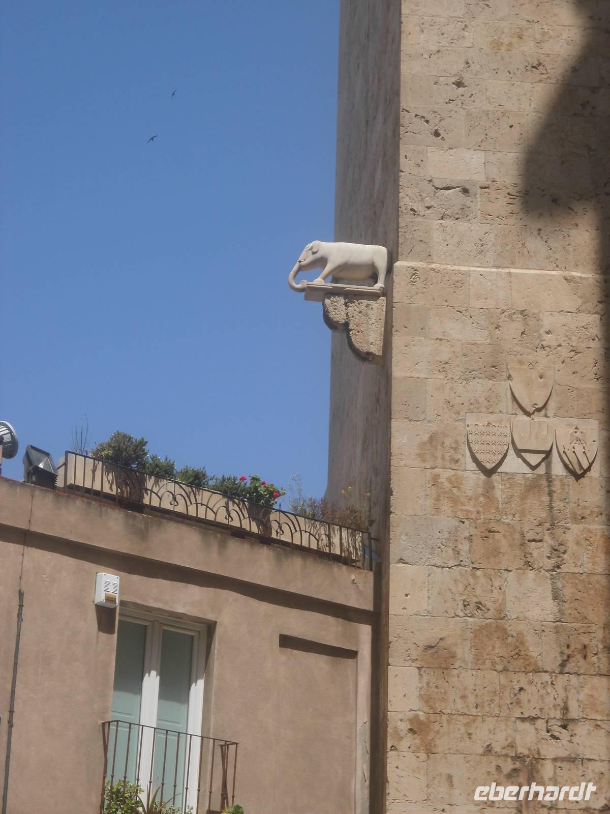 Mit schönen Blicken aufs Meer stiegen wir über die Bastion Remy immer weiter hinab, mit mehreren Stopps auf den einzelnen Terrassen, wie z.B. der Terrasse vom Umberto I. mit tollem Blick auf das Zentrum und die Umgebung von Cagliari. Am Elefantenturm, der tatsächlich symbolhaft einen Marmorelefanten auf einem steinernen vorkragenden Träger aufweist, erreichten wir die untere Befestigung der Altstadt und verließen Sie durch das Tor mit noch erhaltenem eisernem Fallgatter. Nach ein paar Metern dann hatten wir bereits die Restaurantzone erreicht und brauchten von hier nur noch geradeaus zum Busparkplatz zu gehen. Hier verabschiedeten wir uns von Stadtführerin Maria und verabredeten uns für später, um nun auf eigene Faust Cagliari zu erkunden oder eine leckere Pizza zu Mittag zu essen. Am Nachmittag fuhren wir in unser Hotel zurück.