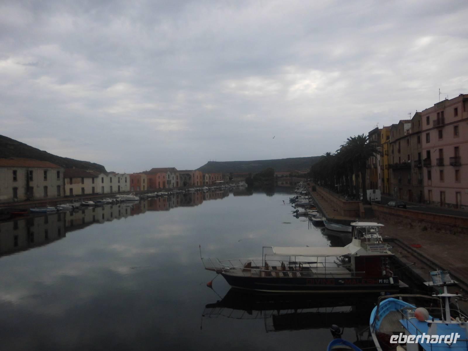Gelegen am Fluss Temo und überragt von der Höhenburg Malaspina bietet Bosa einen prächtigen Anblick. Unser Bus blieb jenseits der Altstadt am Temo-Ufer stehen, direkt neben den alten Gerberhäusern, die von der Altstadt her gesehen ebenfalls einen markanten Anblick bieten. Wie im Mittelalter oft üblich, standen die Gerberhäuser außerhalb der Stadt, damit die gewerbebedingten Gerüche nicht die Bevölkerung störten. Über die schöne alte Brücke „Ponte Veccio" betraten wir die Altstadt und trafen unmittelbar am Brückenende auf den Domplatz, von dem aus sich nach beiden Seiten eine hübsche Uferpromenade erstreckt. Nur wenige Schritte hinter dem Domplatz, durch mehrere Gassen mit Dom und Uferpromenade verbunden, erreichten wir dann die Hauptstraße, den Corso Vittorio Emanuele - idealer Ausgangspunkt, um noch etwas durch die schmalen Straßen und engen Gassen der Innenstadt zu bummeln.