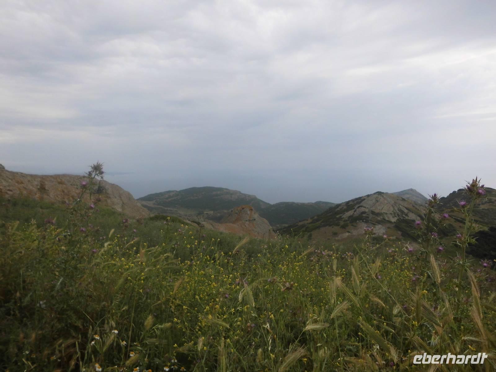 Die schöne und an Ausblicken reiche Straße Richtung Norden zwischen den Bergmassiven von Monte Minerva und Monte Unturzu einer- und dem Meer andererseits führte uns in die Nähe einer der schönsten Städte Sardiniens, die wir morgen kennenlernen würden: Alghero!