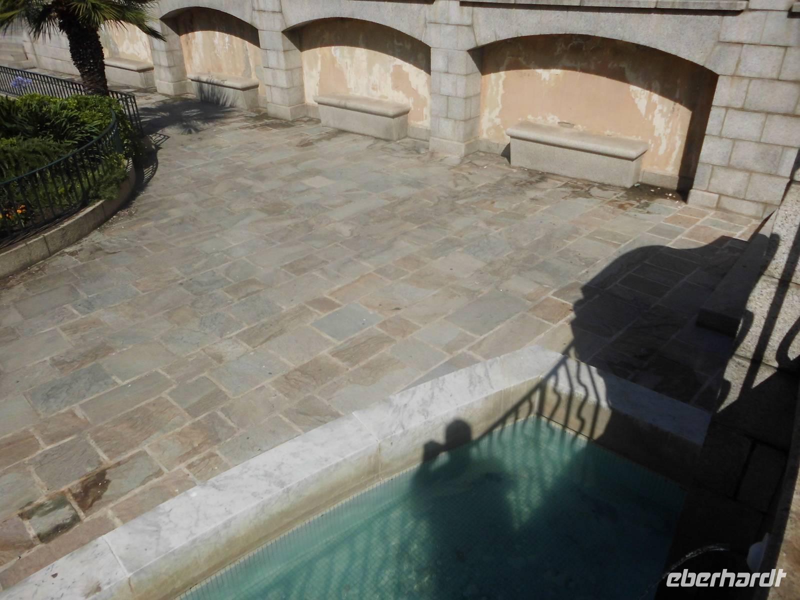 Die leicht konkurrierenden Ajacco und Bastia liegen an Einwohnerzahl und wirtschaftlicher und politischer Bedeutung fast gleichauf, aber durch den Sitz des korsischen Regionalparlaments ist Ajaccio nun politisch, durch einen knappen Überschuss an Fähr- und Hafenverbindungen Bastia nun wirtschaftlich leicht im Vorteil. Das erzählte unsere Reiseleiterin Doris, mitder wir bei herrlichem Wetter einen Rundgang durch die herrlich am Meer gelegene Stadt machten. Wir begannen mit dem Platz vor der Zitadelle, auf dem dier Büpste des von den Korsen sehr verehrten Pasqual Paoli steht, der einmal Staatschef des 14 Jahre lang bestehenden Staates Korsika im 18. Jahrhundert war, bevor er 1769 an Frankreich angegliedert wurde. Paoli ist beliebter und anerkannter als Napoleon Bonaparte, obwohl diesem natürlich in seiner Geburtsstadt Ajacco zahlreiche Denkmäler gesetzt wurden. Zunächst aber erreichten wir die Barockfassade der Kathedrale Notre Dame de la Miséricorde, die wir wegen gerade beginnenden Gottesdienstes leider nur von außen sehen konnten. Am Place Charles de Gaulle steht das größte Napoleon-Denkmal, respektlos wegen seines wuchtigen Granitsockels und seiner Form „Tintenfass" genannt. Der Kaiser wird hoch zu Ross dargestellt, flankiert von seinen Brüdern und neben dem Platz hängt über der Kreuzung der beiden wichtigsten Straßen von Ajacco die kaiserliche Krone. Dann führte uns Doris zum Geburtshaus des späteren Kaisers und erzählte uns ausführlich die Geschichte seiner Familie und seines Werdeganges bis zum immer einflussreicher werdenden General. Anschließend betraten wir den belebten Foch-Platz, auf dem sich täglich bis Mittag ein sehenswerter Wochenmarkt abspielt, auf dem alle korsischen Spezialitäten zu finden sind. Zunächst einmal betrachteten wir aber den Löwenbrunnen. Der einstige Wasserholplatz war um einen Sockel ergänzt worden, auf dem Napoleon I. im Habitus eines römischen Konsuls steht. Bei einem kleinen Rundgang über den Markt erläuterte uns Doris die einzelnen Besonderheiten korsischer Erzeugnisse, bevor sie uns zum Abschluss in die Geschäftsstraße Rue du Cardinal Fesch führte. Manche der Geschäfte waren wegen Feiertages (Himmelfahrt) geschlossen. In dieser Straße befindet sich die dem Pestheiligen Rochus gewidmete Kirche und die Rückfront des einstigen Palastes des Kardinals Fesch, aus dessen Liebhabersammlung heute eines der bedeutendsten Kunstmuseen Frankreichs entstanden ist. Wir verabschiedeten uns von Doris und hatten Zeit für Erkundungen auf eigene Faust. Am Nachmittag brachte uns der Bus zurück zum Hotel, wo wir beispielsweise noch den Pool nutzen konnten.