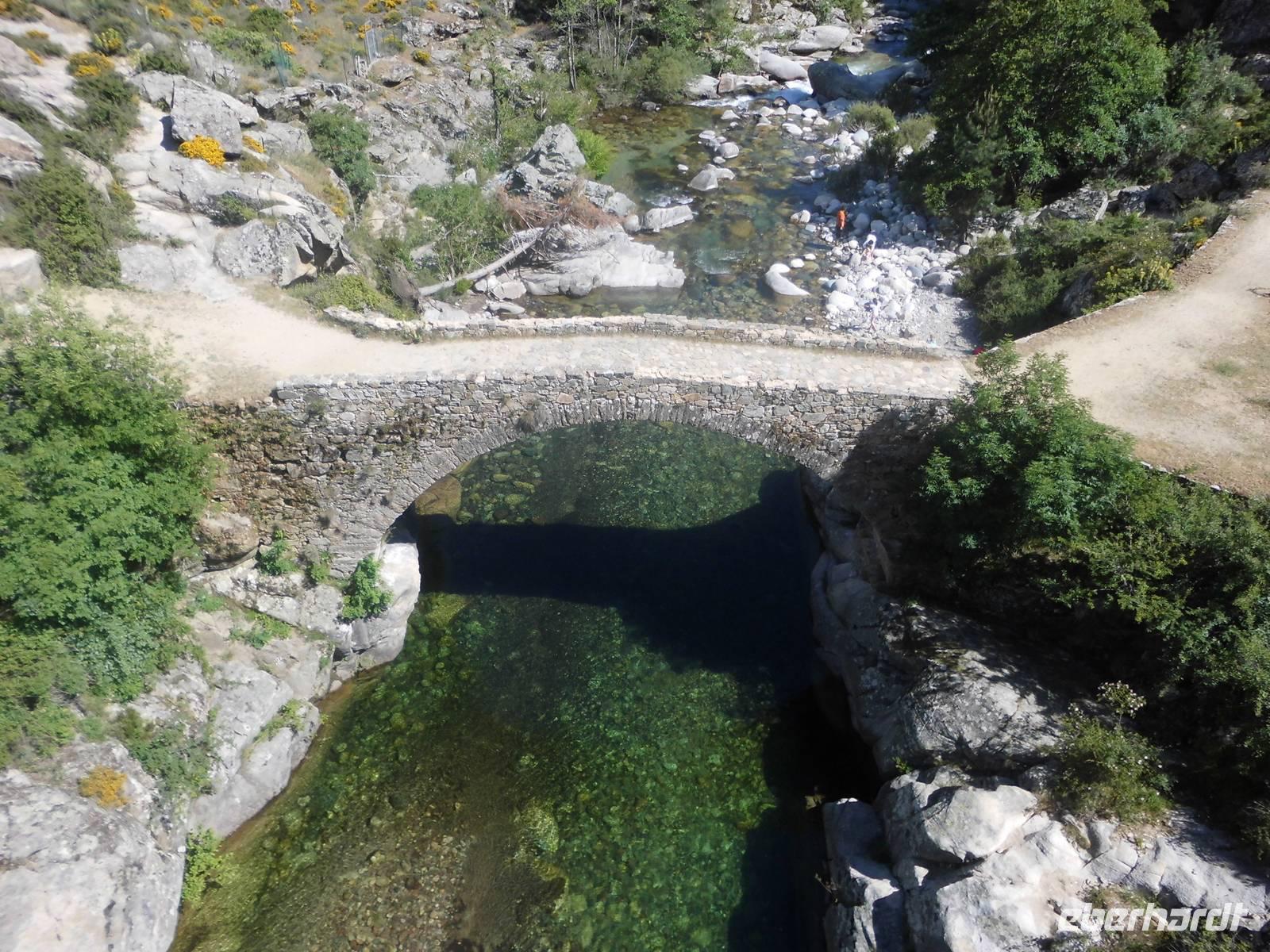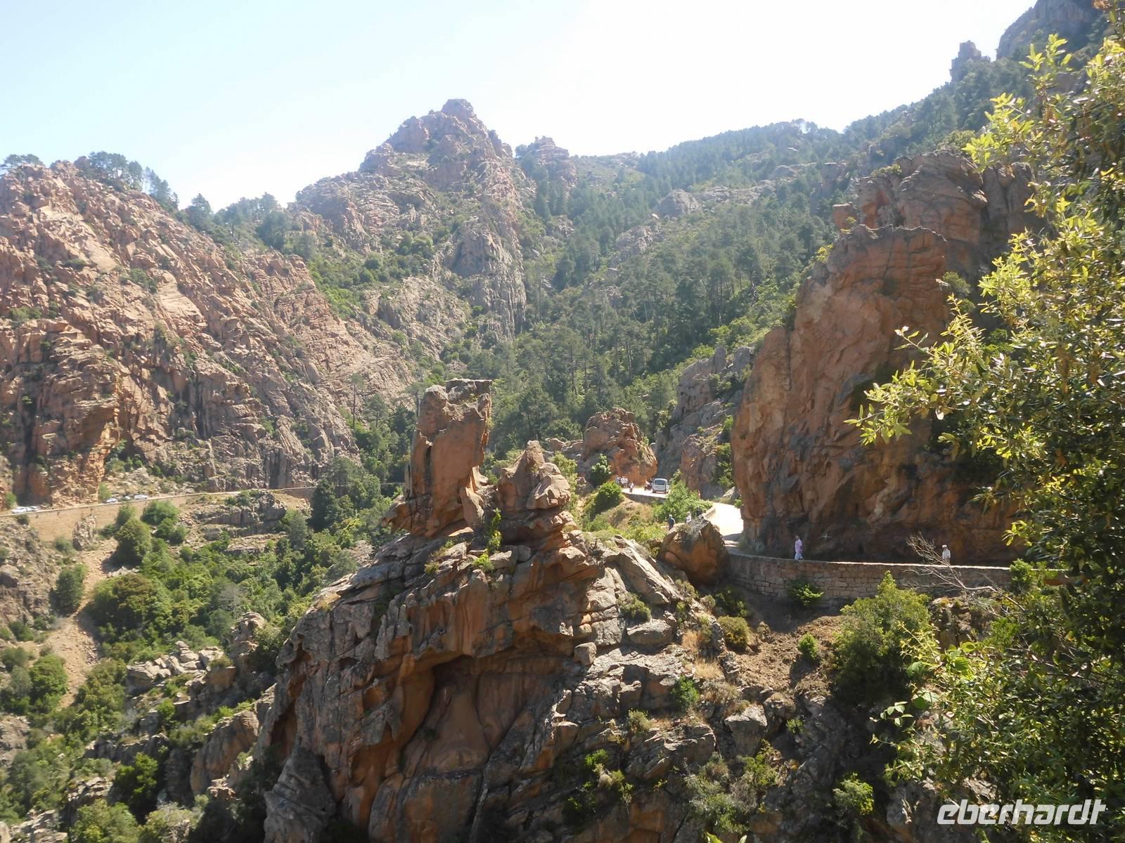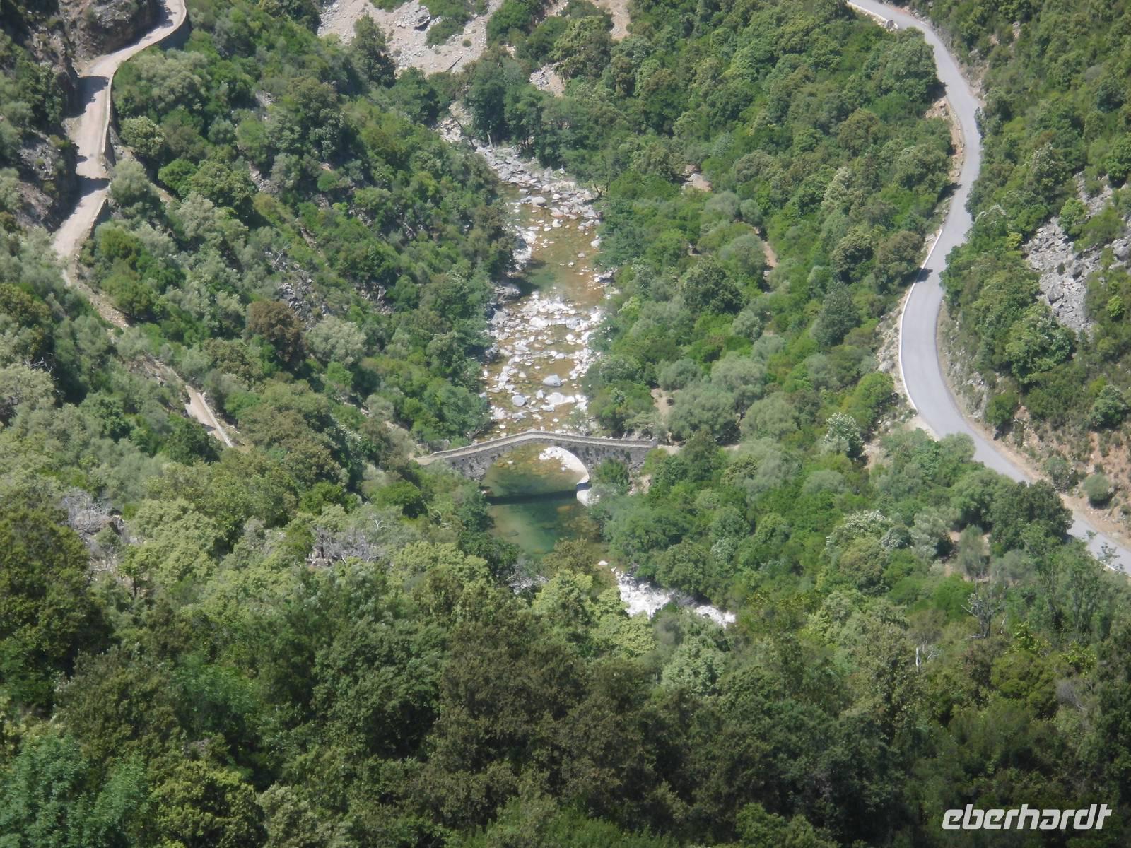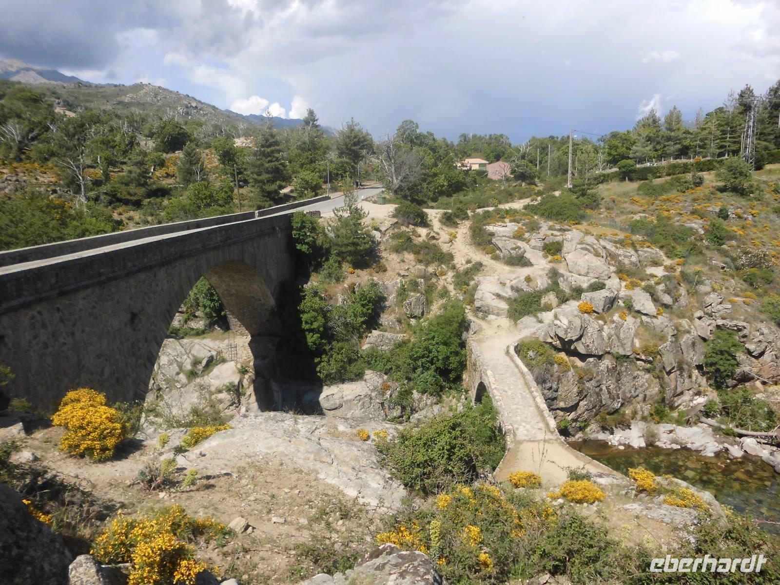 Durch die wundervolle Spelunca-Schlucht über den höchsten korsischen Pass, den 1477 m hohen Col de Vergio fuhren wir weiter und durchquerten dabei das über 2000 m hohe korsische Hochgebirge. Bei Fotostopps am Pass und unterwegs entdeckten wir beispielsweise zwei wunderschöne mittelalterliche Brücken, die die Genueser für ihre Handelswege erbaut hatten. Da waren wir bereits in der historischen Region Niolo und sahen den Stausee von Calacuccia. Durch die wilde und spektakuläre „Scala di Santa Regina" (Treppe der Königin), eine der aufregendendsten Schluchten der Insel erreichten wir schließlich die weniger gewundenen Hauptstraßen und fuhren über Porto Nuovo, wodie entscheidende Schlacvht stattgefundenden hatte, die 1769 die 14jährige Unabhängigkeit Korsikas beendete, erreichten wir das Schwemmland des Flusses Golo und den Strandsee von Biguglia. Zwischen ihm und dem Meer verlauft eine Art Sandbanj, heute mit vielenm Hotels bebaut und nach einer alten römischen Siedlung Lido di Marania benannt. Auf der lag unser Hotel!