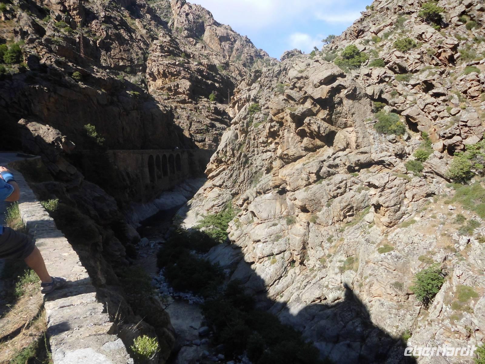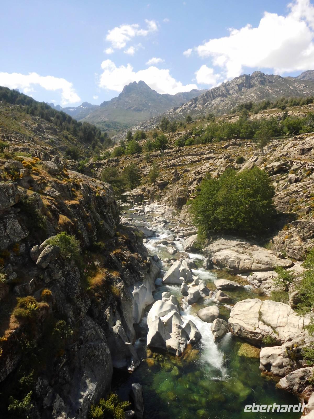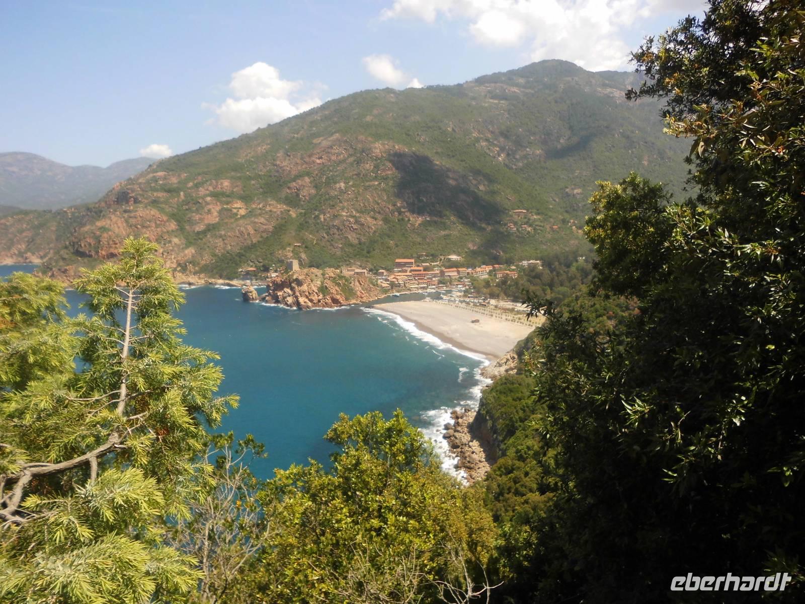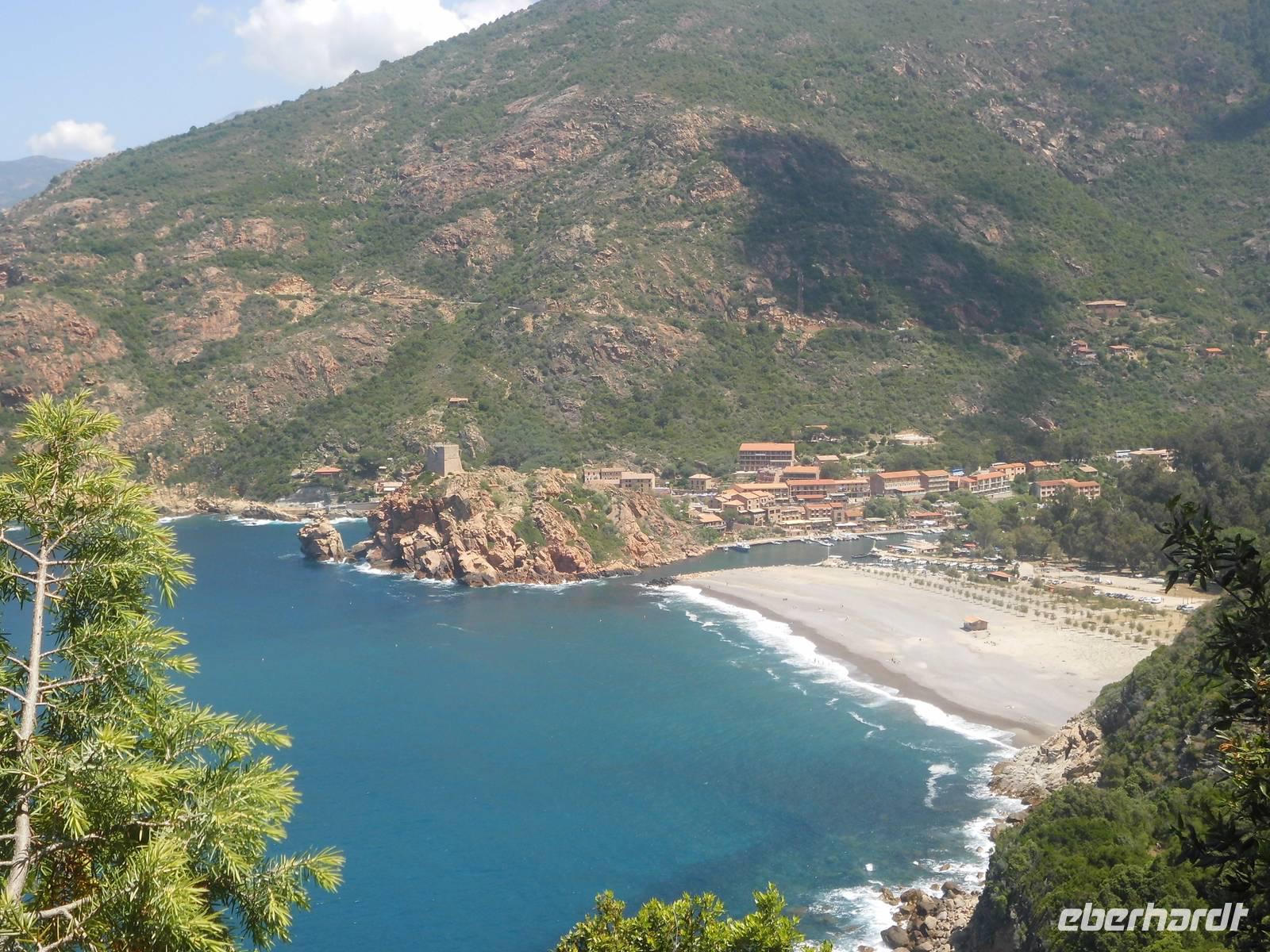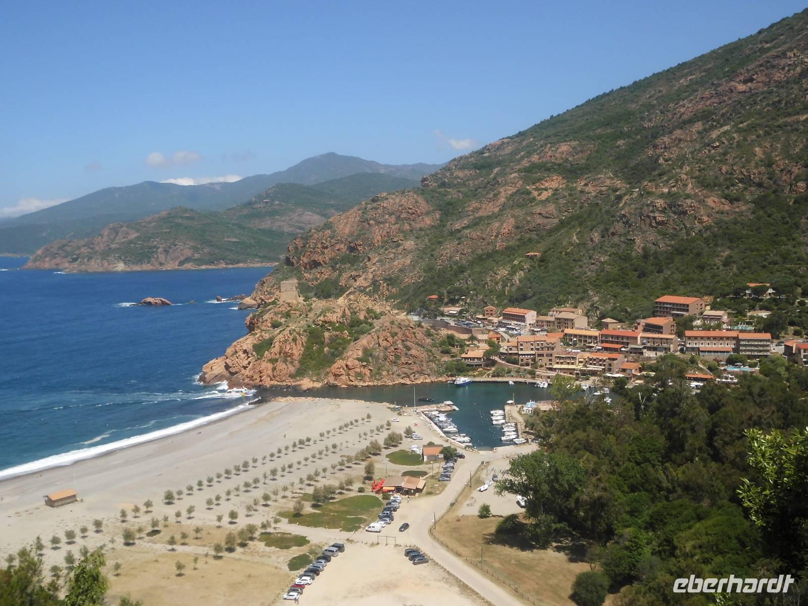 Durch die wundervolle Spelunca-Schlucht über den höchsten korsischen Pass, den 1477 m hohen Col de Vergio fuhren wir weiter und durchquerten dabei das über 2000 m hohe korsische Hochgebirge. Bei Fotostopps am Pass und unterwegs entdeckten wir beispielsweise zwei wunderschöne mittelalterliche Brücken, die die Genueser für ihre Handelswege erbaut hatten. Da waren wir bereits in der historischen Region Niolo und sahen den Stausee von Calacuccia. Durch die wilde und spektakuläre „Scala di Santa Regina" (Treppe der Königin), eine der aufregendendsten Schluchten der Insel erreichten wir schließlich die weniger gewundenen Hauptstraßen und fuhren über Porto Nuovo, wodie entscheidende Schlacvht stattgefundenden hatte, die 1769 die 14jährige Unabhängigkeit Korsikas beendete, erreichten wir das Schwemmland des Flusses Golo und den Strandsee von Biguglia. Zwischen ihm und dem Meer verlauft eine Art Sandbanj, heute mit vielenm Hotels bebaut und nach einer alten römischen Siedlung Lido di Marania benannt. Auf der lag unser Hotel!