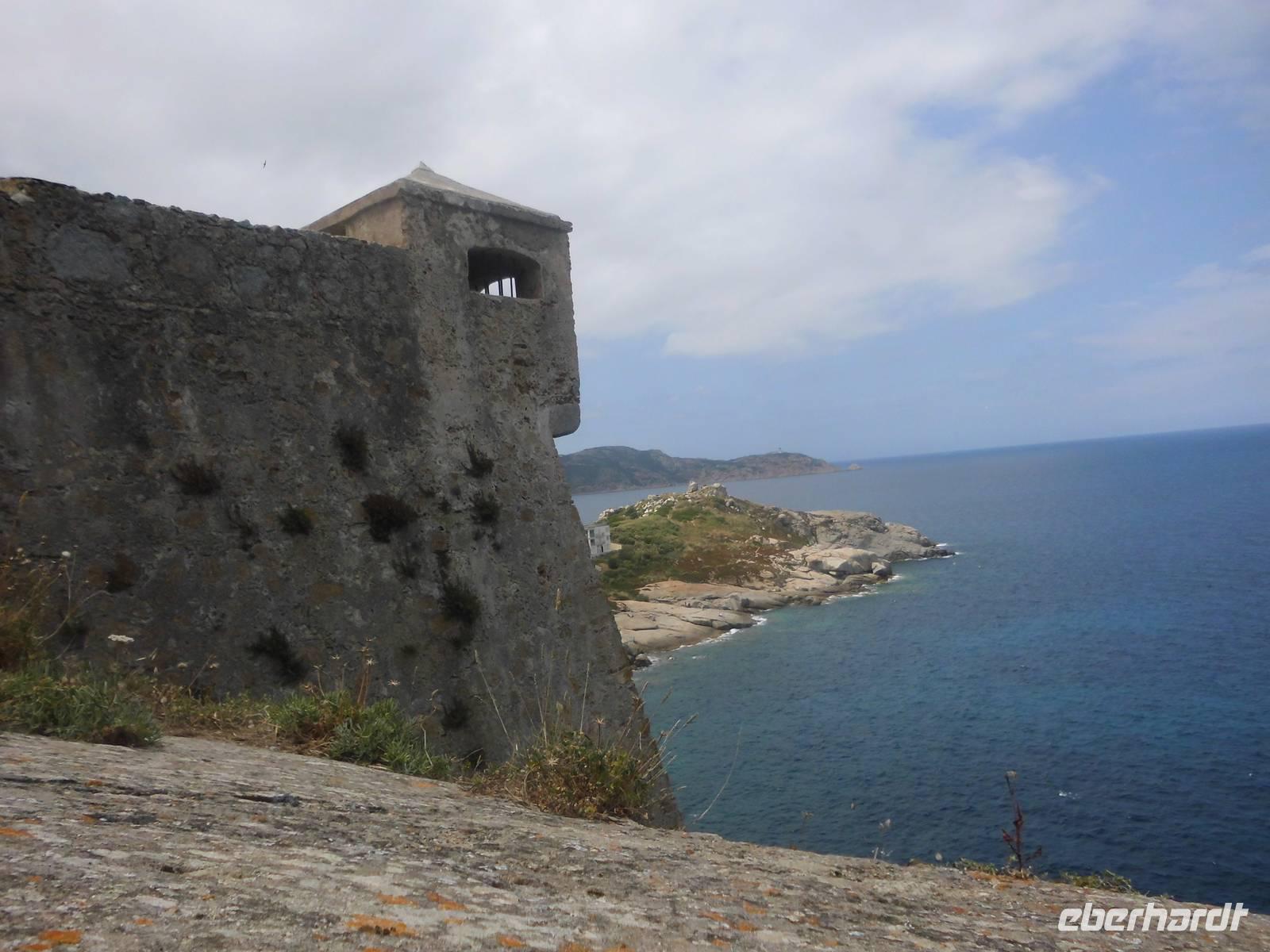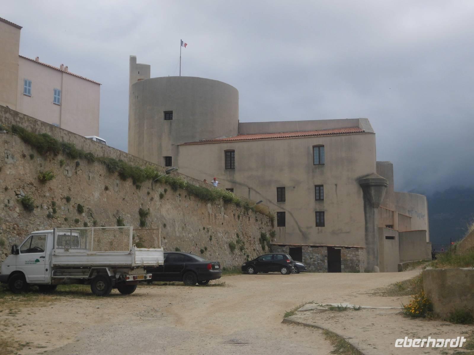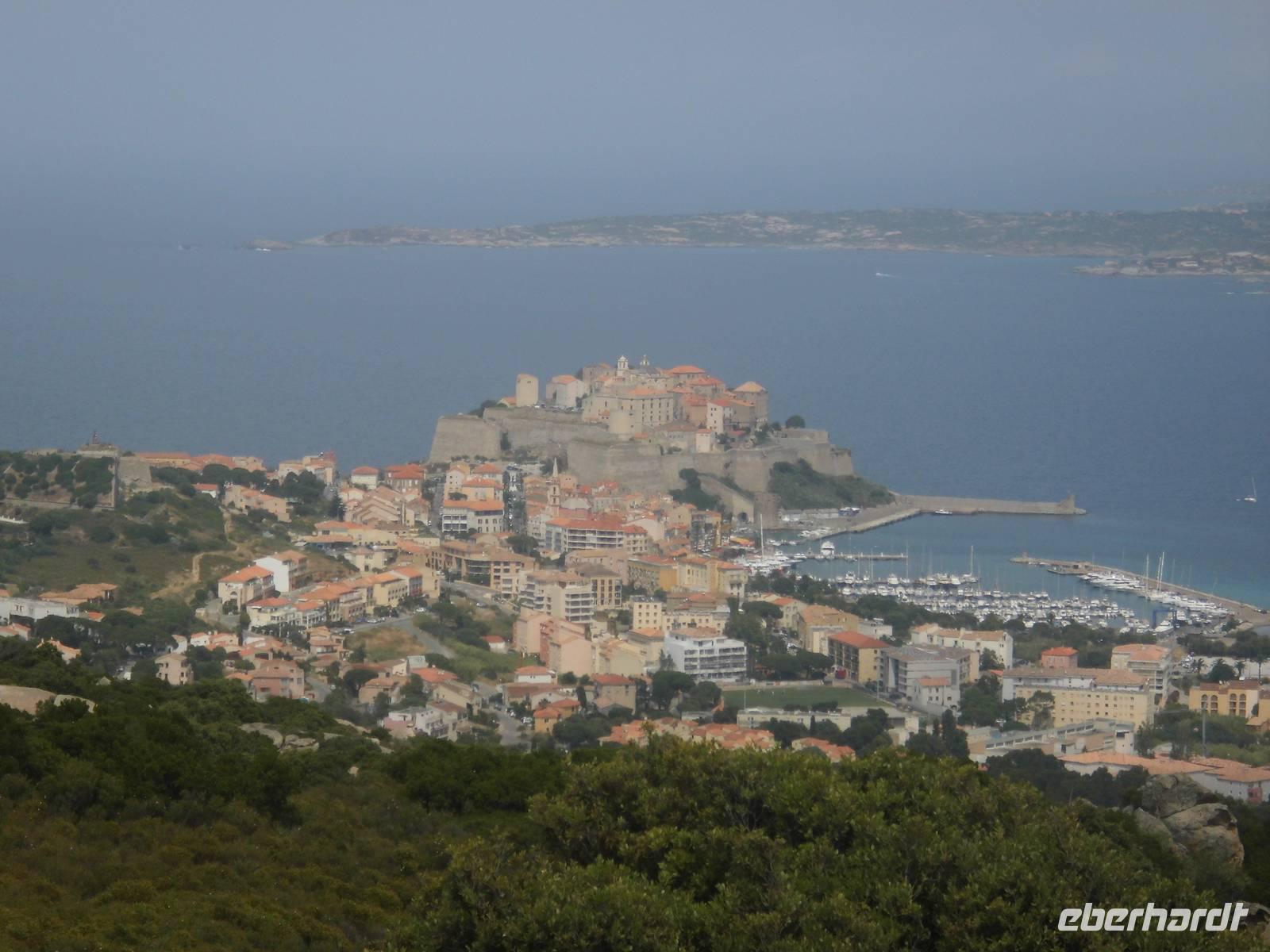 Über den Pass von Sant Stefano erreichten wir heute die Bucht von Sant Florent, bogen aber vorher nach Westen ab und durchquerten die Mondlandschaft der Desert des Agrigates. Eine Wpüste vermag man in dem knapp 160 qkm großen Gebiet weniger zu erkennen - die Maccia wuchert überall, ab und zu entdeckt man Obstbäumer, aber zumesist nur unwirtliche Landschaft. Die Genueser hatten vergeblich versucht, in einer Art Kollektivwirtschaft, zu der sie Bauern zwangen, hier nennenswerte Getreideproduktion aufzubauen. Mit dem Projekt erstarb auch jegliche Bewirtschaftung - heute führt nur eine einzige Straße hindurch. Nach Toilettenpause am Hafen von L'Ile Rousse hatten wir ein paar Minuten Gelegenheit zum Bummel in der winzigen Genueserstadt Algajola und dann zu einer kleinen Verkostung typisch korsischer Produkte. Natürlich konnten Wurst, Schinken, Käse, Honig, Marmelade oder das nur hier erhältliche Kastanienmehl auch gekauft werden. Nächstes Ziel war die Zitadellenstadt Calvi, dier viele als die „ genuesischste" aller Städte Korsikas bezeichneten. Am Columbusdenkmal verließen wir den Bus und betraten die Stadt - neben Lissabon, Sevilla und Genua behauptet auch Calvi, der Amerika-Entdecker sei hier geboren worden. Durch das einzige Tor betraten wir die Zitadelle, die gleichzeitig die Altstadt ist. Im aklten Gouverneurspalast, auf dem die französische Fahne weht, ist heute noch ein Quartier der Fremdenlegion. Interessant sind neben den Altstadtgassen die Mauern und Wehrgänge und das (mögliche?) Geburtshaus von Christoph Columbus.