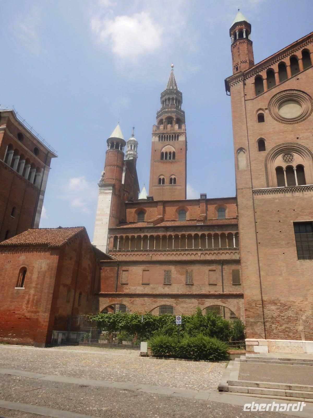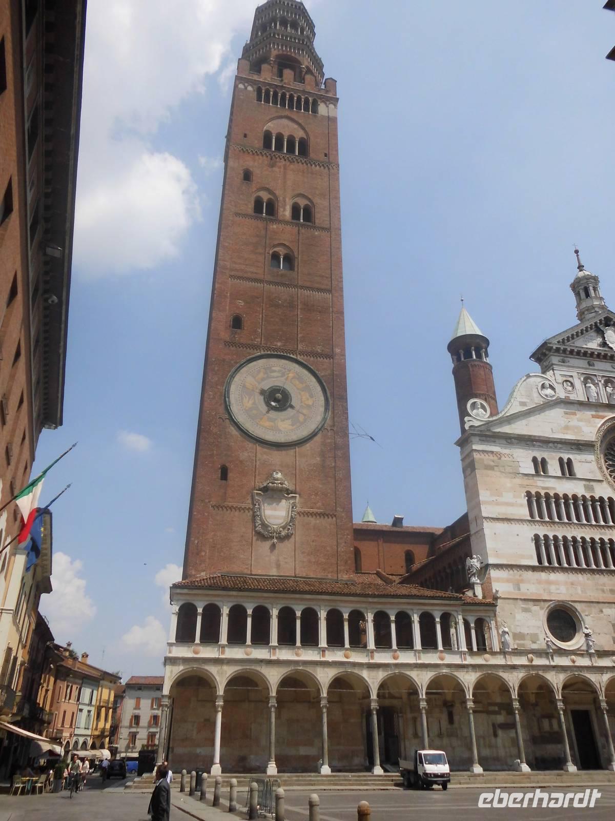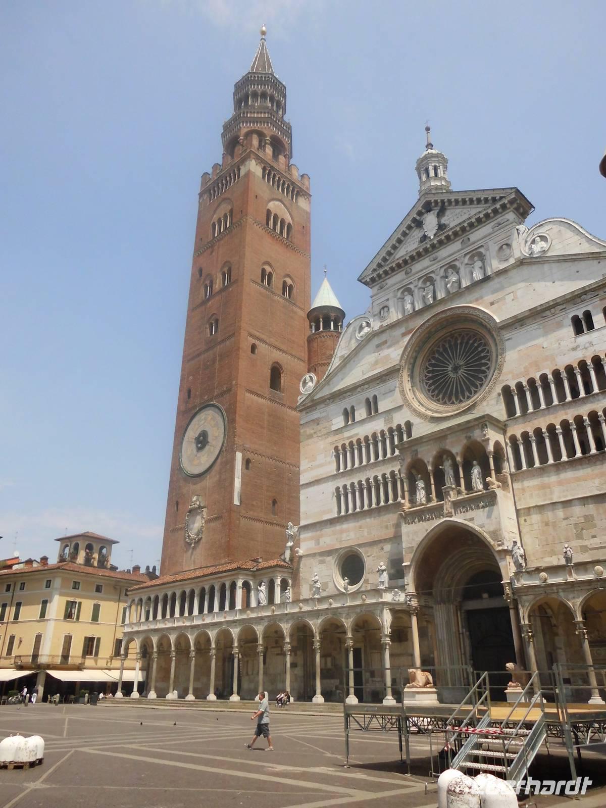 Dann ging es zurück auf die Autobahn entlang der italienischen Riviera und kurz vor Genua nordwärts in die Berge der Appeninen. Gegen Mittag hatten wir schon ein gutes Stück der Strecke bis Sterzing geschafft - und etwas Zeit für ein weiteres Extra gewonnen. Und das hatte es in sich! Wir verließen die Autobahn und fuhren zum historischen Zentrum der Geigenbauerstadt Cremona. Nicht allzuweit war der Weg vom Busparkplatz zum Höhepunkt der Stadt, dem Domplatz. Schon von weitem sieht man den Torrazzo, den höchsten Glockenturm Italiens und Wahrzeichen Cremonas. Zusammen mit dem im lombardischen Romanikstil begonnen Dom bildet er ein einzigartiges Ensemble und dominiert die „Piazza del Comune", den Stadtplatz, auf dem es neben dem Dom, dem achteckigen Baptisterium auch das alte Rathaus und das Haus der Stadtwache aus dem 13. Jahrhundert zu sehen gibt. Nach angemessener Freizeit kehrten alle zum Bus zurück und wir setzten die Fahrt zu unserem Tagesziel fort, dem uns schon bekannten Motel „Brenner" auf dem Autohof bei Sterzing, wo uns das letzte gemeinsame Abendessen der Reise erwartete.