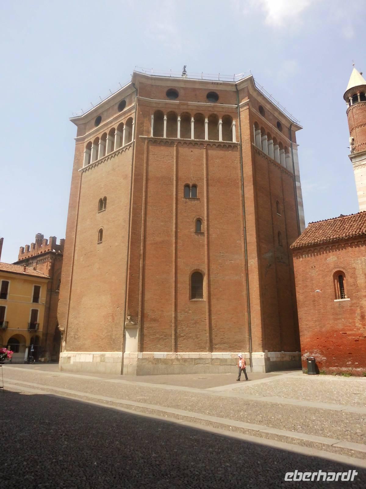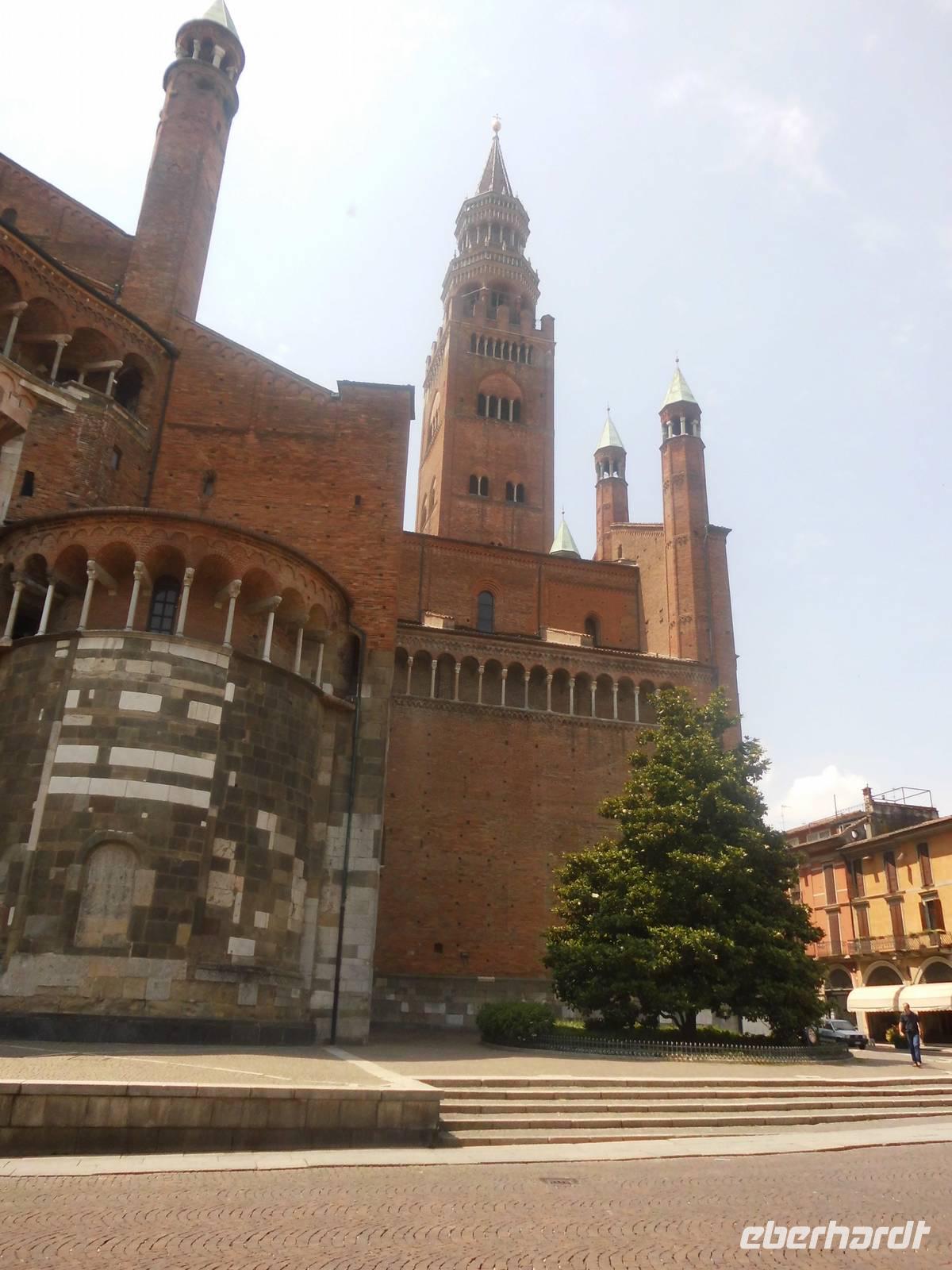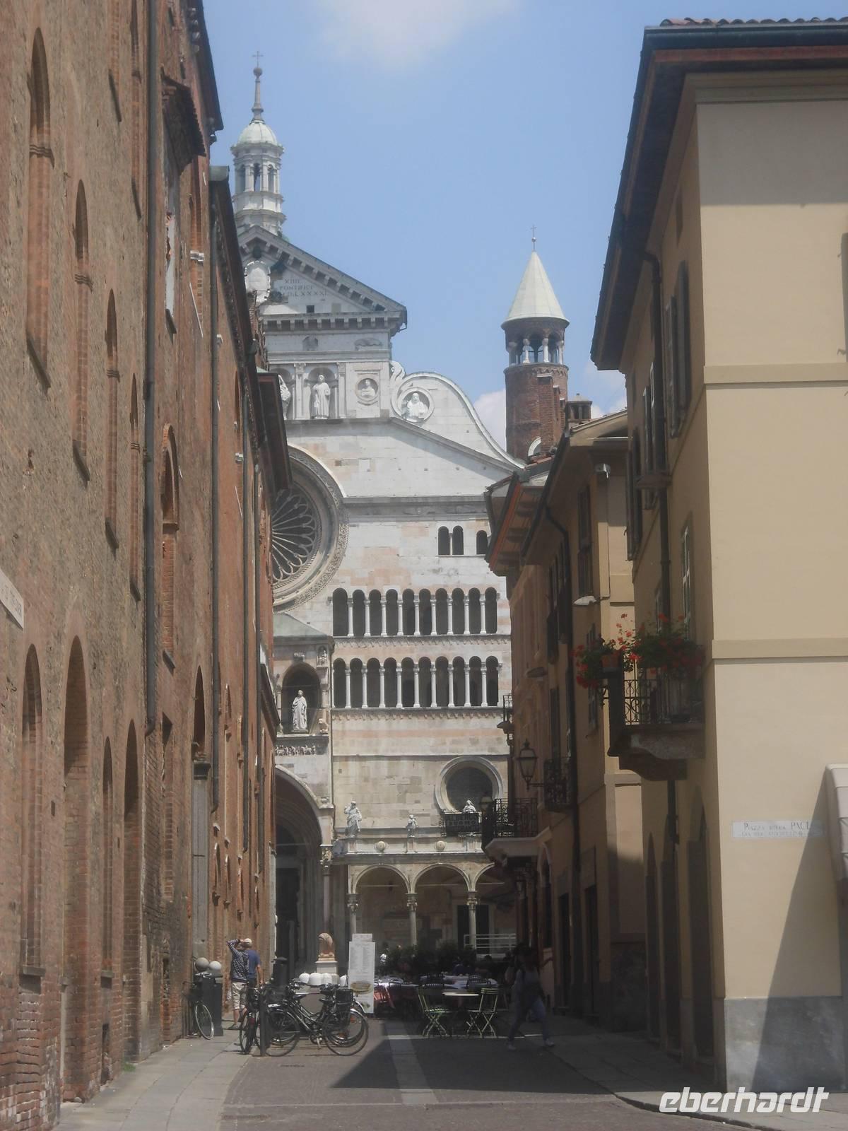 Dann ging es zurück auf die Autobahn entlang der italienischen Riviera und kurz vor Genua nordwärts in die Berge der Appeninen. Gegen Mittag hatten wir schon ein gutes Stück der Strecke bis Sterzing geschafft - und etwas Zeit für ein weiteres Extra gewonnen. Und das hatte es in sich! Wir verließen die Autobahn und fuhren zum historischen Zentrum der Geigenbauerstadt Cremona. Nicht allzuweit war der Weg vom Busparkplatz zum Höhepunkt der Stadt, dem Domplatz. Schon von weitem sieht man den Torrazzo, den höchsten Glockenturm Italiens und Wahrzeichen Cremonas. Zusammen mit dem im lombardischen Romanikstil begonnen Dom bildet er ein einzigartiges Ensemble und dominiert die „Piazza del Comune", den Stadtplatz, auf dem es neben dem Dom, dem achteckigen Baptisterium auch das alte Rathaus und das Haus der Stadtwache aus dem 13. Jahrhundert zu sehen gibt. Nach angemessener Freizeit kehrten alle zum Bus zurück und wir setzten die Fahrt zu unserem Tagesziel fort, dem uns schon bekannten Motel „Brenner" auf dem Autohof bei Sterzing, wo uns das letzte gemeinsame Abendessen der Reise erwartete.