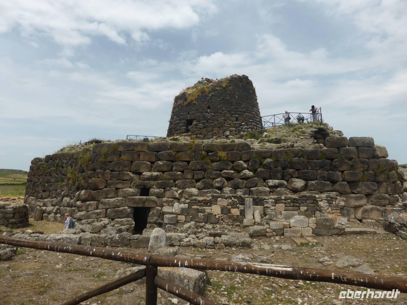 Durch die Campidano Ebene fuhren wir gen Norden, um am heutigen Tag ein Wahrzeichen Sardiniens und Bosa zu besuchen. Unser erstes Ziel war die bekannte Nuraghe Satnu Antine. Sie steht im Valle dei Nuraghi, welches durch eine Vielzahl prähistorischer Sehenswürdigkeiten bekannt ist. Darunter gehören die zahlreichen Nuraghen, die Wahrzeichen Sardinien. Diese Nuraghe entstand ca. 1600 v. Chr. und beeindruckt durch seine Komplexität. Um den Hauptturm herum standen einst noch drei Ecktürme. Diese wurden mit einem überdachten Gang verbunden. Die Nuraghen waren nicht nur Wohn- sondern auch Verteidigungsanlagen. Über die zwei Etagen der Nuraghe gelangten wir durch die Treppe in der Mauer auf die Terrasse und genossen einen schöne Blick auf die Umgebung sowie die Nuraghe Oes.