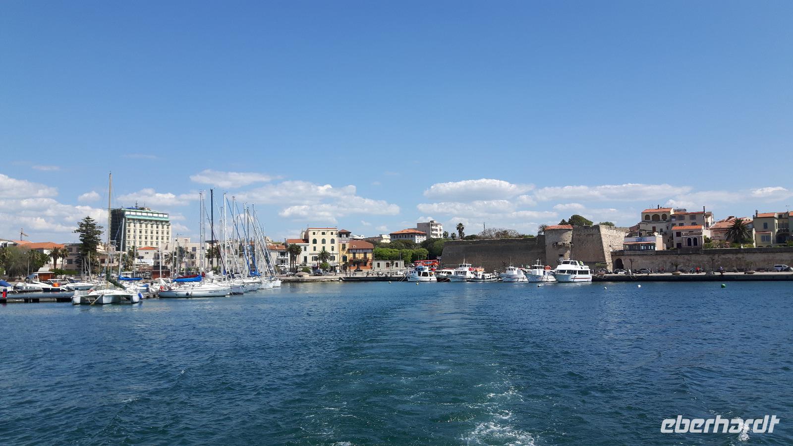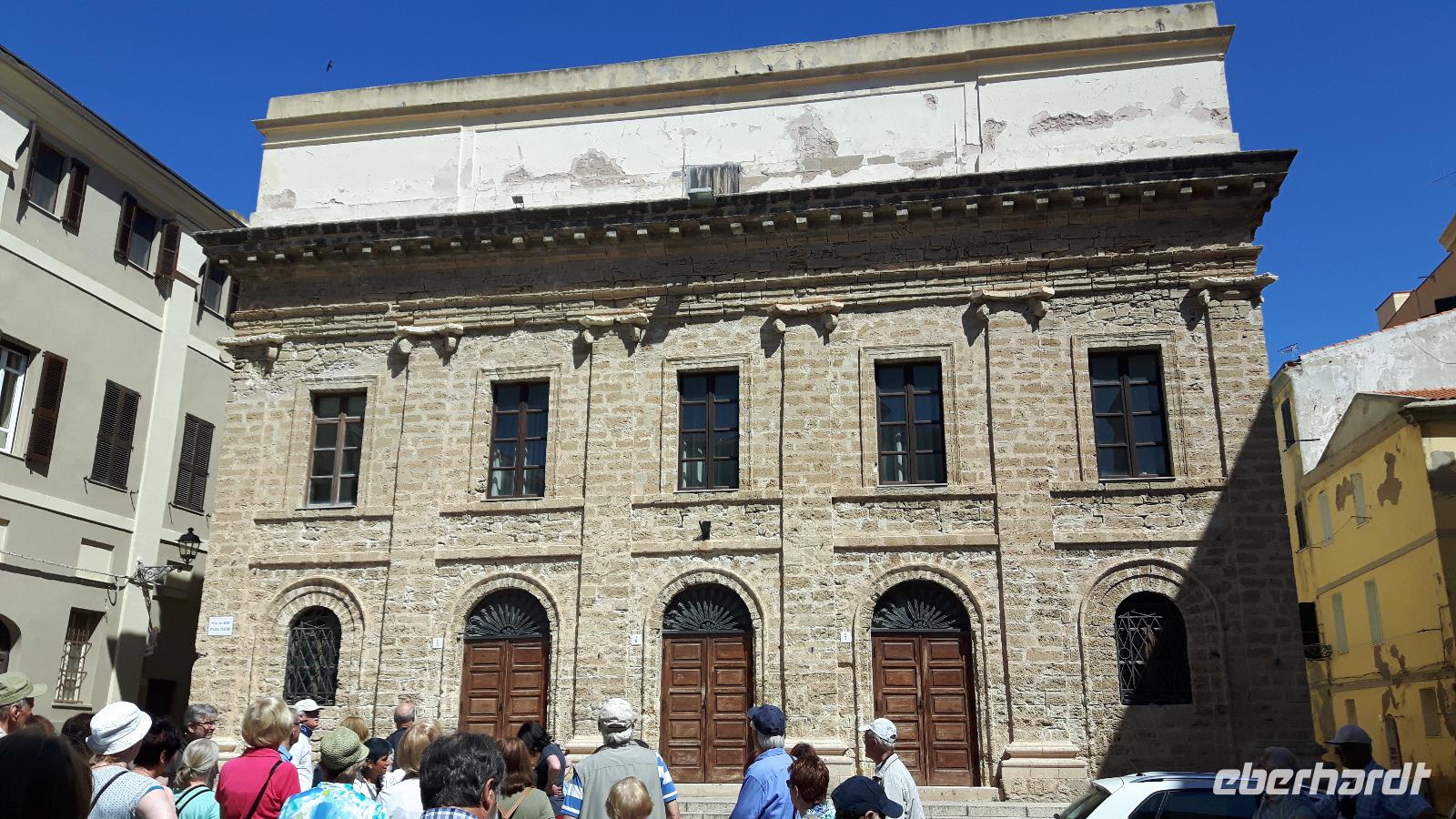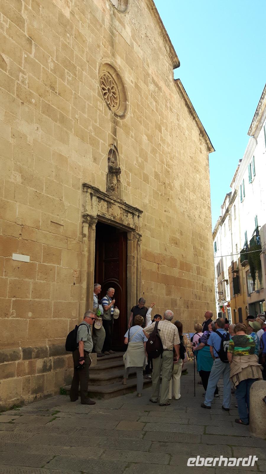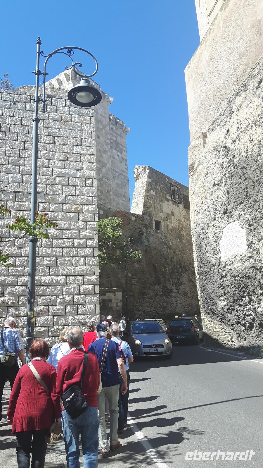 Am heutigen Vormittag erkundeten wir gemeinsam mit unserer Stadtführerin Marcella die Stadt Alghero. Wir spazierten entlang der Strandpromenade in die Innenstadt - strahlender Sonnenschein war unser Begleiter. Die Altstadt der spanischsten Stadt der Insel liegt gedrängt auf einer Landzunge umgeben von der Festungsmauer. Trotz der schweren Zerstörungen des Zweiten Weltkrieges ist das Zentrum der Altstadt zum größten Teil intakt. Während unseres Stadtrundganges sahen wir die Piazza Civica, die „gute Stube" der Bürger Algheros. Wir gelangten zur Kathedrale „Santa Maria" mit ihrem ungewöhnlich achteckigen Glockenturm. Durch die Altstadtgassen erreichten wir schließlich die San-Francesco-Kirche, hinter dessen schlichter Fassade sich ein sehenswertes Inneres sowie, ein aus 22 Säulen bestehender Kreuzgang aus Sandstein, verbirgt. Bei diesem traumhaften Wetter und ruhiger See freuten wir uns am Nachmittag auf die Bootsfahrt zur Grotta di Nettuno, eine der schönsten Tropfsteinhöhlen des Mittelmeeres. Das Boot brachte uns bis zum Eingang der Grotte am Fuße der steil aus dem Meer aufragenden Kalkklippe Capo Caccia. Sie ist mit Treppen und Wegen ausgestattet und führt durch mehrere große Säle. Die unterirdischen mächtigen Tropfsteingebilde beeindruckten uns alle sehr, die Grotte ist ganz einfach ein geologisches Wunder!