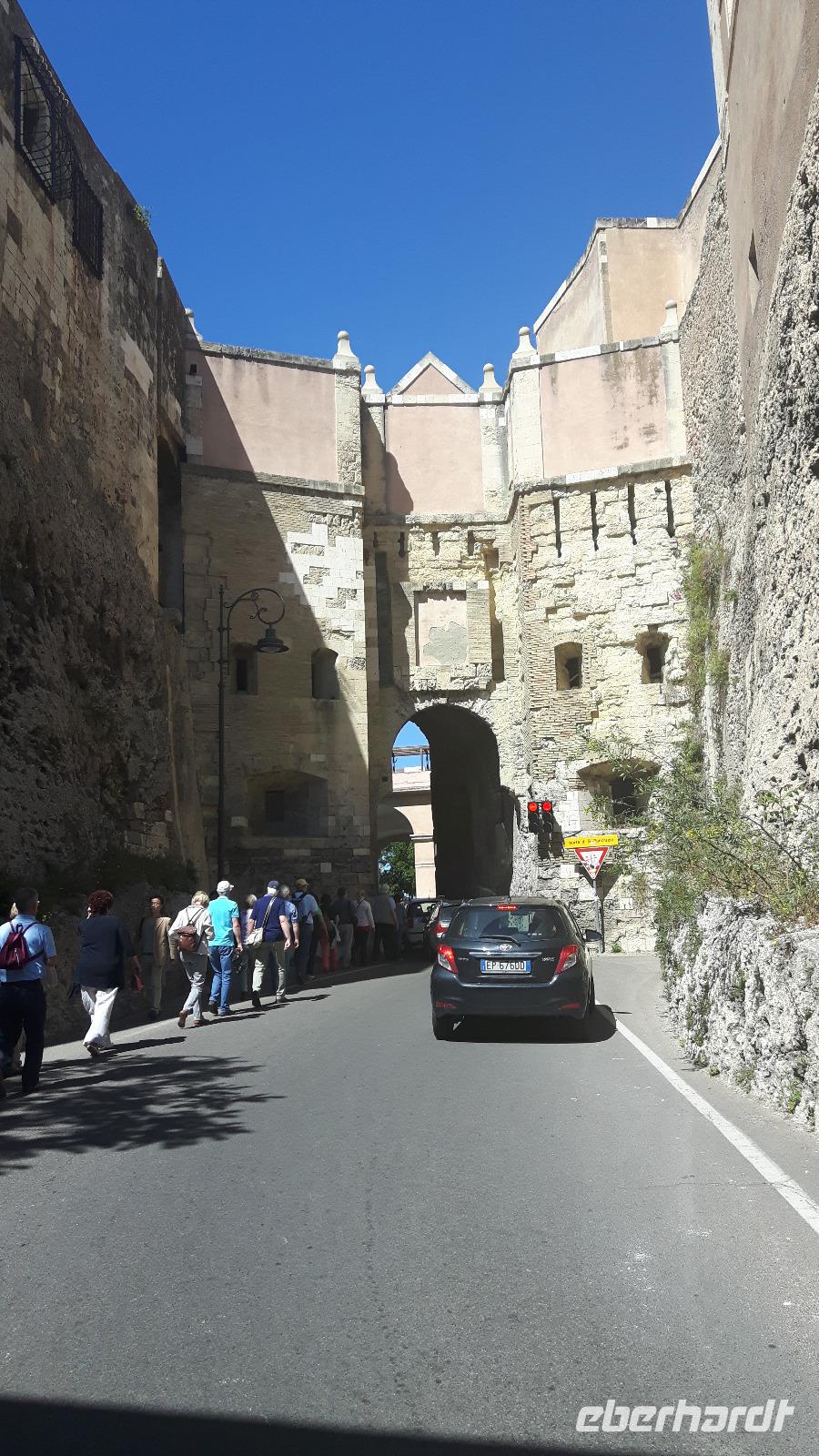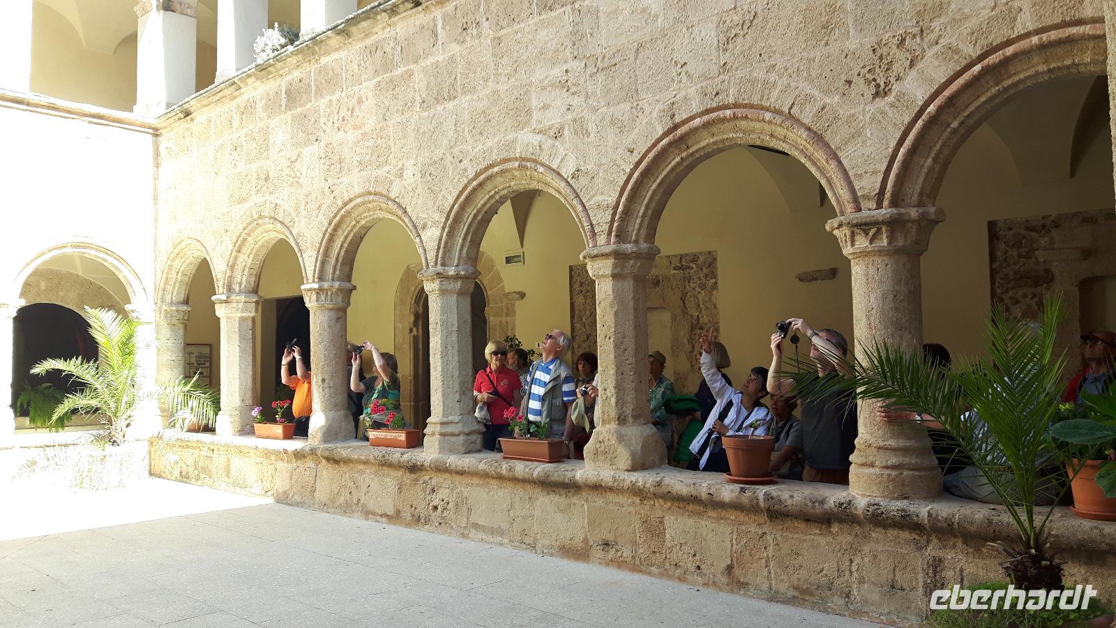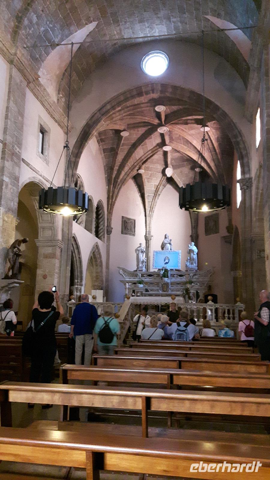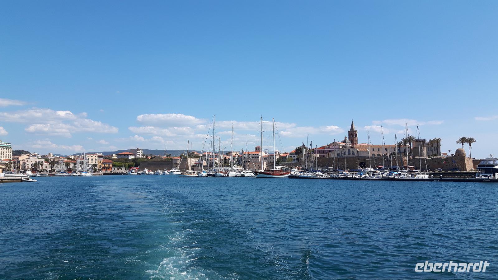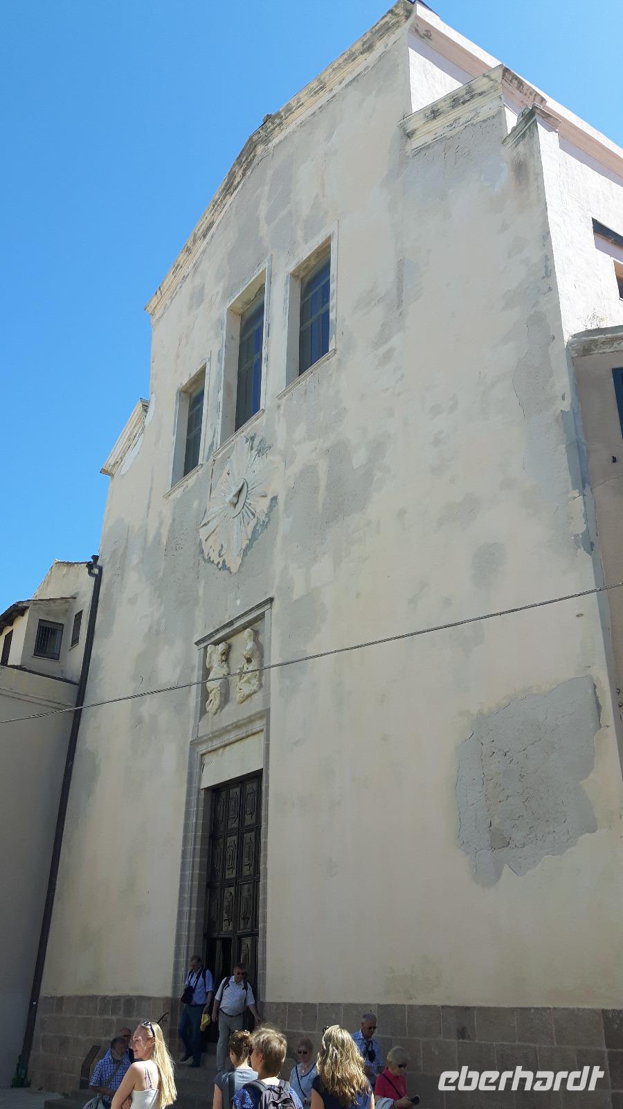 Am heutigen Vormittag erkundeten wir gemeinsam mit unserer Stadtführerin Marcella die Stadt Alghero. Wir spazierten entlang der Strandpromenade in die Innenstadt - strahlender Sonnenschein war unser Begleiter. Die Altstadt der spanischsten Stadt der Insel liegt gedrängt auf einer Landzunge umgeben von der Festungsmauer. Trotz der schweren Zerstörungen des Zweiten Weltkrieges ist das Zentrum der Altstadt zum größten Teil intakt. Während unseres Stadtrundganges sahen wir die Piazza Civica, die „gute Stube" der Bürger Algheros. Wir gelangten zur Kathedrale „Santa Maria" mit ihrem ungewöhnlich achteckigen Glockenturm. Durch die Altstadtgassen erreichten wir schließlich die San-Francesco-Kirche, hinter dessen schlichter Fassade sich ein sehenswertes Inneres sowie, ein aus 22 Säulen bestehender Kreuzgang aus Sandstein, verbirgt. Bei diesem traumhaften Wetter und ruhiger See freuten wir uns am Nachmittag auf die Bootsfahrt zur Grotta di Nettuno, eine der schönsten Tropfsteinhöhlen des Mittelmeeres. Das Boot brachte uns bis zum Eingang der Grotte am Fuße der steil aus dem Meer aufragenden Kalkklippe Capo Caccia. Sie ist mit Treppen und Wegen ausgestattet und führt durch mehrere große Säle. Die unterirdischen mächtigen Tropfsteingebilde beeindruckten uns alle sehr, die Grotte ist ganz einfach ein geologisches Wunder!