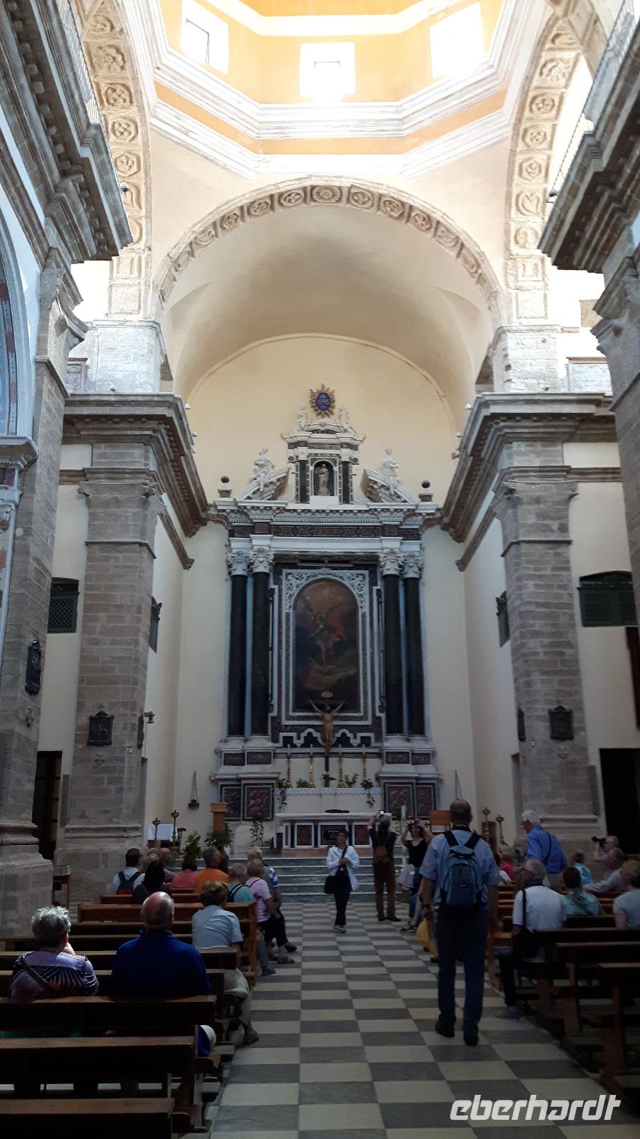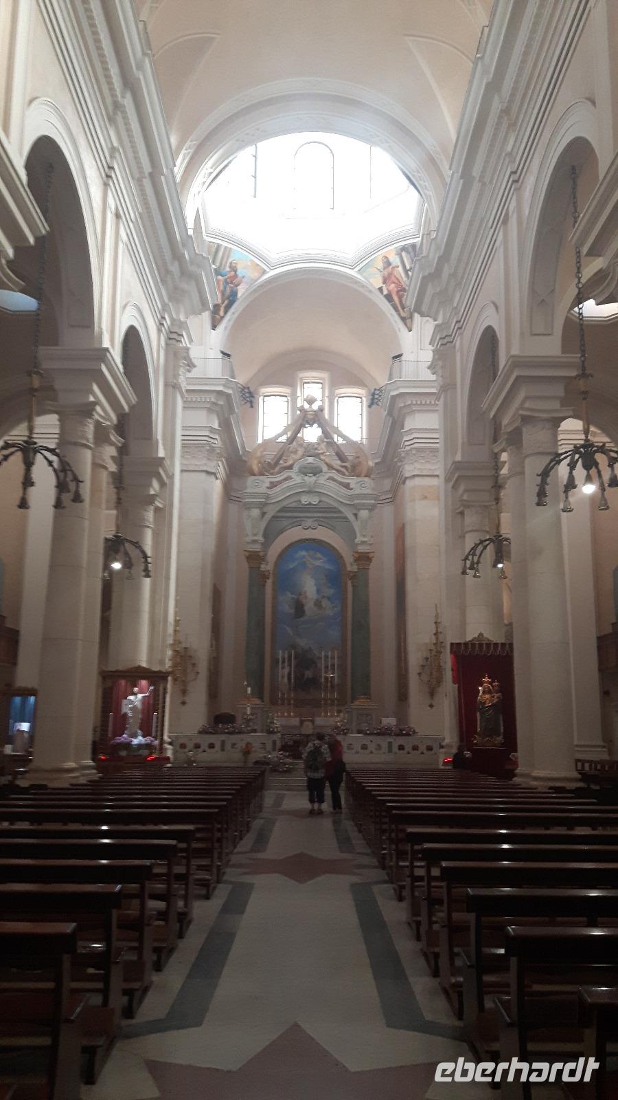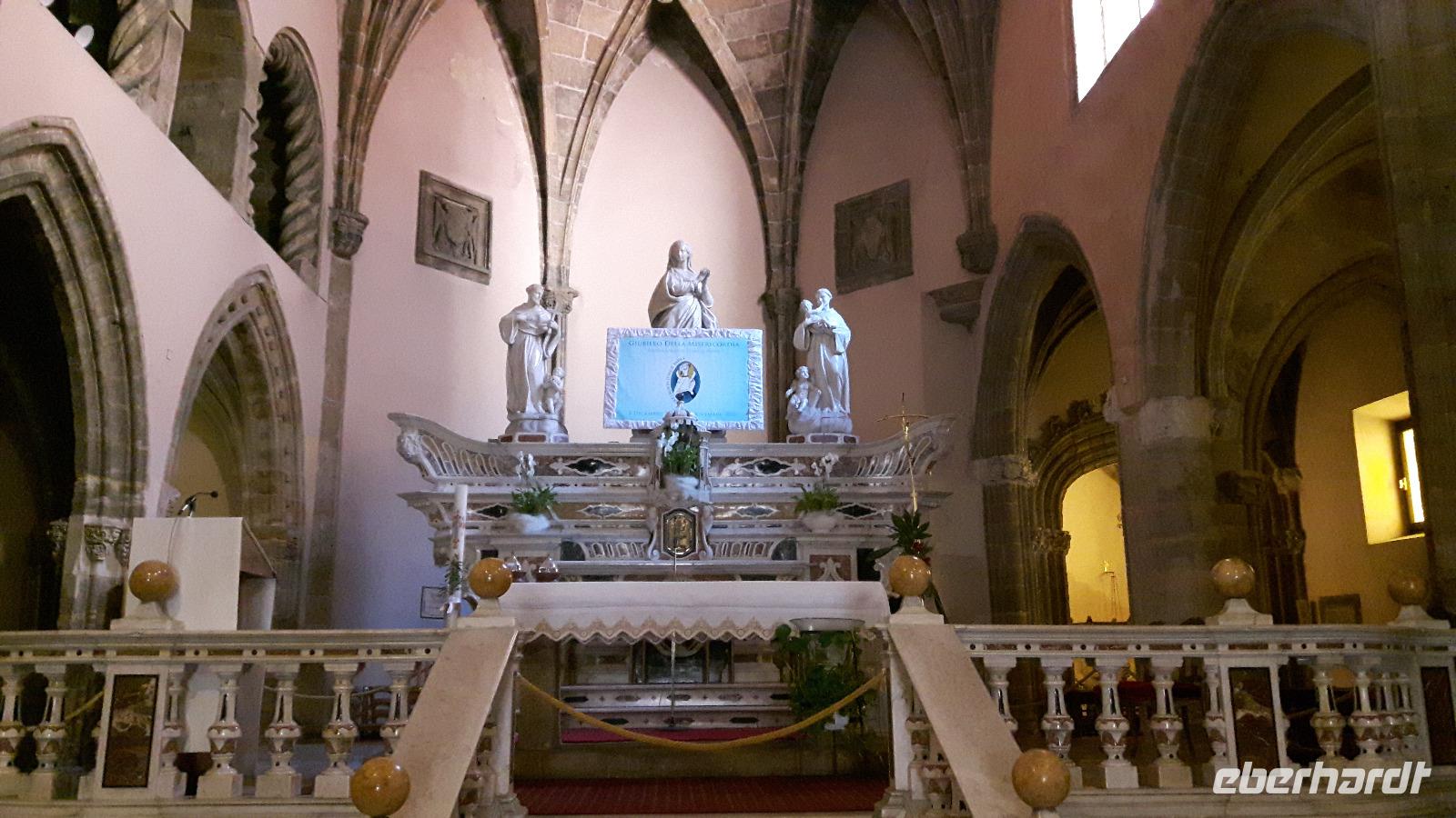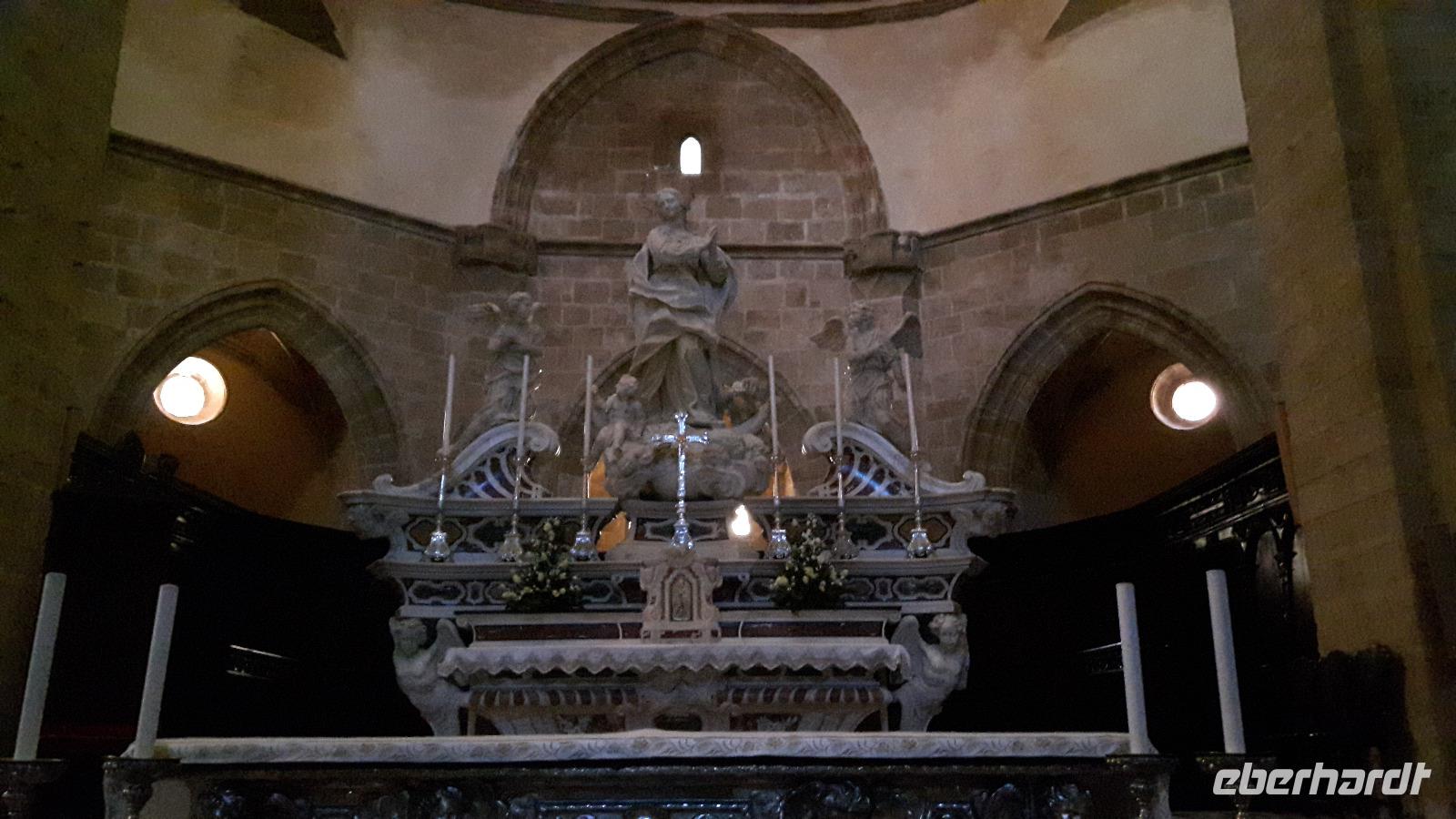 Am heutigen Vormittag erkundeten wir gemeinsam mit unserer Stadtführerin Marcella die Stadt Alghero. Wir spazierten entlang der Strandpromenade in die Innenstadt - strahlender Sonnenschein war unser Begleiter. Die Altstadt der spanischsten Stadt der Insel liegt gedrängt auf einer Landzunge umgeben von der Festungsmauer. Trotz der schweren Zerstörungen des Zweiten Weltkrieges ist das Zentrum der Altstadt zum größten Teil intakt. Während unseres Stadtrundganges sahen wir die Piazza Civica, die „gute Stube" der Bürger Algheros. Wir gelangten zur Kathedrale „Santa Maria" mit ihrem ungewöhnlich achteckigen Glockenturm. Durch die Altstadtgassen erreichten wir schließlich die San-Francesco-Kirche, hinter dessen schlichter Fassade sich ein sehenswertes Inneres sowie, ein aus 22 Säulen bestehender Kreuzgang aus Sandstein, verbirgt. Bei diesem traumhaften Wetter und ruhiger See freuten wir uns am Nachmittag auf die Bootsfahrt zur Grotta di Nettuno, eine der schönsten Tropfsteinhöhlen des Mittelmeeres. Das Boot brachte uns bis zum Eingang der Grotte am Fuße der steil aus dem Meer aufragenden Kalkklippe Capo Caccia. Sie ist mit Treppen und Wegen ausgestattet und führt durch mehrere große Säle. Die unterirdischen mächtigen Tropfsteingebilde beeindruckten uns alle sehr, die Grotte ist ganz einfach ein geologisches Wunder!