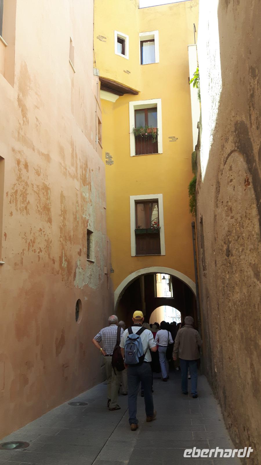 Durch die fruchtbare Campidano-Ebene fuhren wir gen Norden, um am heutigen Tag die Nuraghe Santu Antine und Bosa zu besuchen. Die Nuraghe Santu Antine ist ein imposantes Beispiel der Wahrzeichen der Insel und liegt inmitten des sogenannten Valle dei Nuraghi (Tal der Nuraghen), denn in dieser Gegend befinden sich die Überreste von 32 Nuraghen. Diese Wehranlage ist eine der größten Sardiniens und mit dem Bau wurde etwa 1.000 v. Chr. begonnen, wobei zunächst der Hauptturm errichtet wurde. In den folgenden Jahrhunderten kam die Wehrmauer mit den drei Ecktürmen hinzu. Um die Nuraghe herum befanden sich die Rundhütten eines Dorfes, deren Grundmauern teilweise wieder ausgegraben wurden. Die Gesamthöhe des Turmes betrug ursprünglich einmal ca. 25 Meter, heute jedoch nur 17,50 Meter! Damit überragt Santu Antine immerhin alle anderen noch erhaltenen Nuraghen der Insel! Der Komplex beeindruckt besonders im Inneren mit seinen gewaltigen Dimensionen. Als Baumaterial wurden grob behauene Basaltblöcke aus der näheren Umgebung verwendet. Den besten Eindruck von der damaligen Leistung der Erbauer bekommt man, wenn man von der Wehrmauer in den Hof hinabblickt. Es ist ganz einfach bewundernswert, wie präzise und in welcher Höhe die schweren Steinblöcke aufgeschichtet wurden. Immerhin ist der Turm über 3.000 Jahre alt und steht heute noch! Tief beeindruckt fuhren wir anschließend weiter nach Bosa. Bosa am Temo ist übrigens die einzige unmittelbar an einem Wasserlauf erbaute Stadt. Dank seines malerischen historischen Zentrums, der Lage am Temo sowie der Burg Malaspina gilt Bosa als die schönste Stadt Sardiniens! Entlang des palmengesäumten Temo-Ufers, dem Corso Vittorio Emanuele und durch die engen Gassen bummelten wir durch die Altstadt. Einige Gäste nutzten den Aufenthalt in Bosa sogar und erklommen gemeinsam mit mir die Treppe zur Burg Malaspina hinauf. Die wohl schönste Küstenstraße mit phantastischem Panorama auf den Monte Ferru führte uns nach Alghero. In den Felsregionen des Monte Ferru finden zahlreiche selten gewordene Tiere und Pflanzen ein ungestörtes Refugium. Das Hotel „Rina" wurde unser Domizil für die nächsten drei Nächte. Empfangen wurden wir mit einem Begrüßungsgetränk. Das reichhaltige und geschmackvolle Abendessen beendete diesen erlebnisreichen Tag.