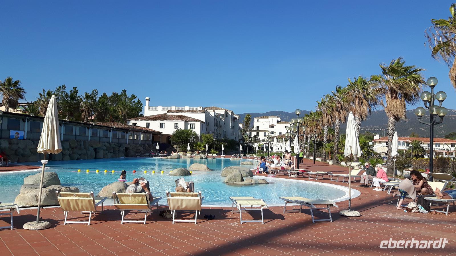 Der heutige Tag konnte zur Erholung oder auch aktiv genutzt werden. Unsere Wanderung führte uns vorbei am Pinienwald und entlang des Strandes nach Fertilia, wo wir eine kleine Pause einlegten. Nach einer knapp 2-stündigen Wanderung erreichten wir die Nuraghe „Palmavera". Sie wurde in mehreren Phasen zwischen dem Jahr 1.000 v. Chr. und 800 v. Chr. errichtet. Nach einer kleinen Besichtigung traten wir teilweise ganz individuell den Rückweg an, der uns wiederum vorbei an der römischen Brücke und entlang des Stagno di Calich zurück zum Hotel führte. Nach insgesamt etwa 15 Wanderkilometern verbrachten wir den restlichen Nachmittag zum Teil am Strand. Ein leckeres Abendessen rundete diesen letzten Abend auf der Insel Sardinien ab!