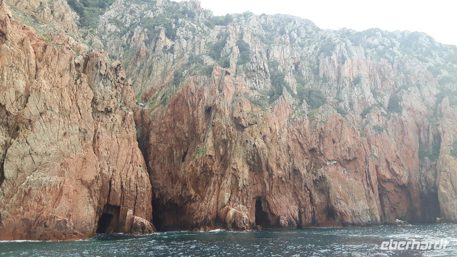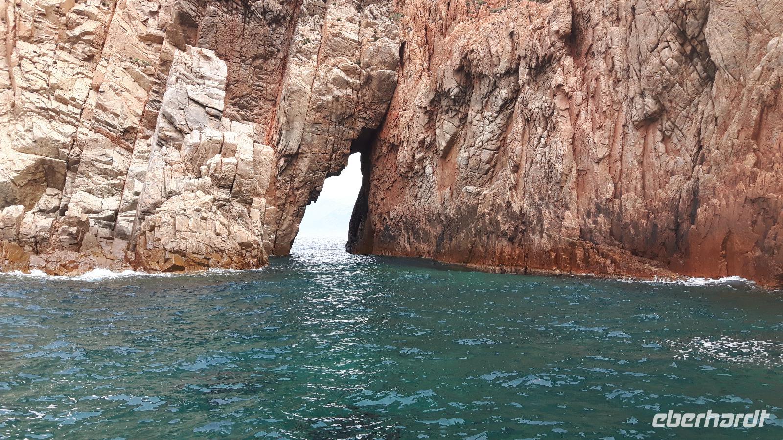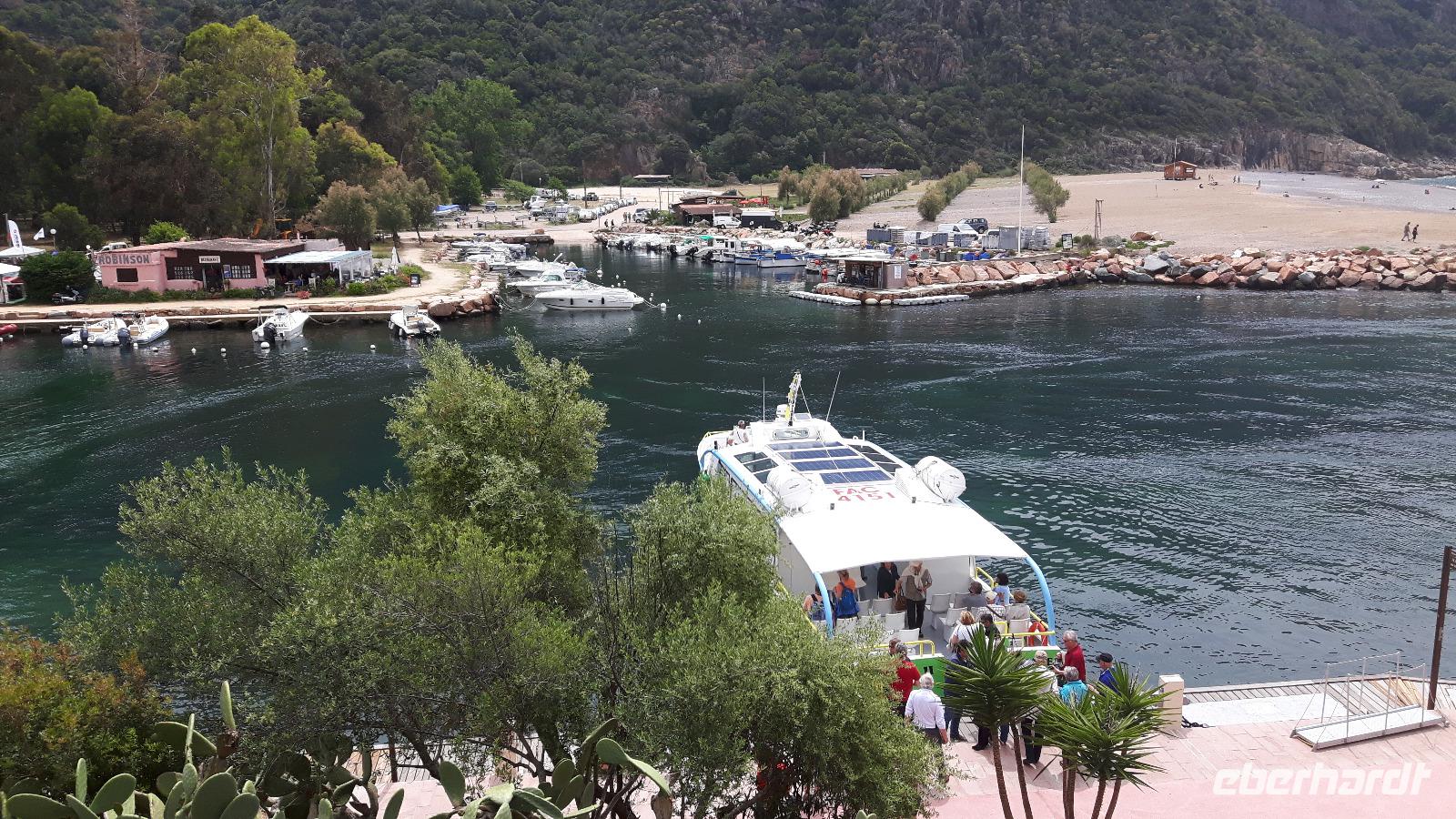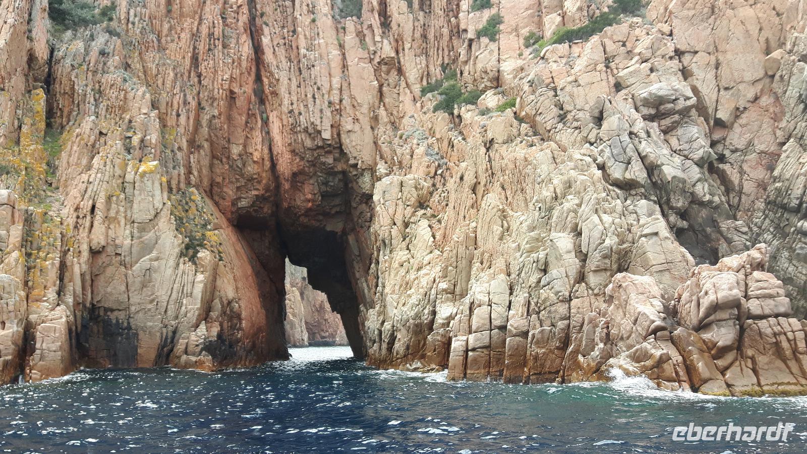 Zu der wohl schönsten Landschaft Korsikas führte uns unser heutiger Ausflug - zur Calanche. Am Golf von Sagone entlang und vorbei an der griechischen Stadt Cargese erreichen wir die Calanche, eines der berühmtesten Naturphänomene der Insel. Der bizarre gelbliche bis rote Felsengarten hoch über dem Meer ließ uns ins Schwärmen geraten. Die Tafoni-Verwitterung wurde hier erforscht. Diese durch Wasser- und Temperatureinwirkungen entstandenen Felsformationen können an vielen Stellen Korsikas beobachtet werden, aber selten so großflächig und vor dem farblichen Kontrast des tiefblauen Meeres wie in der Calanche. Wir ließen unserer Phantasie freien Lauf und entdeckten u. a. eine Schildkröte und einen Hund. Nach diesem aufregenden Naturereignis fuhren wir weiter nach Porto zur Mittagspause. Die meisten unserer Gäste unternahmen von hier aus eine eindrucksvolle Schifffahrt entlang der Küste bis zum Capo Rosso, welches sich am südlichen Ende des Golfs von Porto befindet. Wir sahen beeindruckende steil abfallende Klippen, kleine Grotten und die bizarre Felsformationen. Diese Gegend zählt zweifellos zu den Naturschönheiten der Insel. Entsprechend gut gestärkt und in bester Laune begaben wir uns weiter in die wildromantische Spelunca-Schlucht, welche ein Werk von den Flüssen Aitone und Tavulella ist. Auf der Fahrt begegneten wir mitten auf der Straße zahlreichen Wildschweinen... - das war übrigens eine „Riesen-Spektakel" und ein entsprechender Foto-Stopp durfte daher natürlich nicht fehlen!