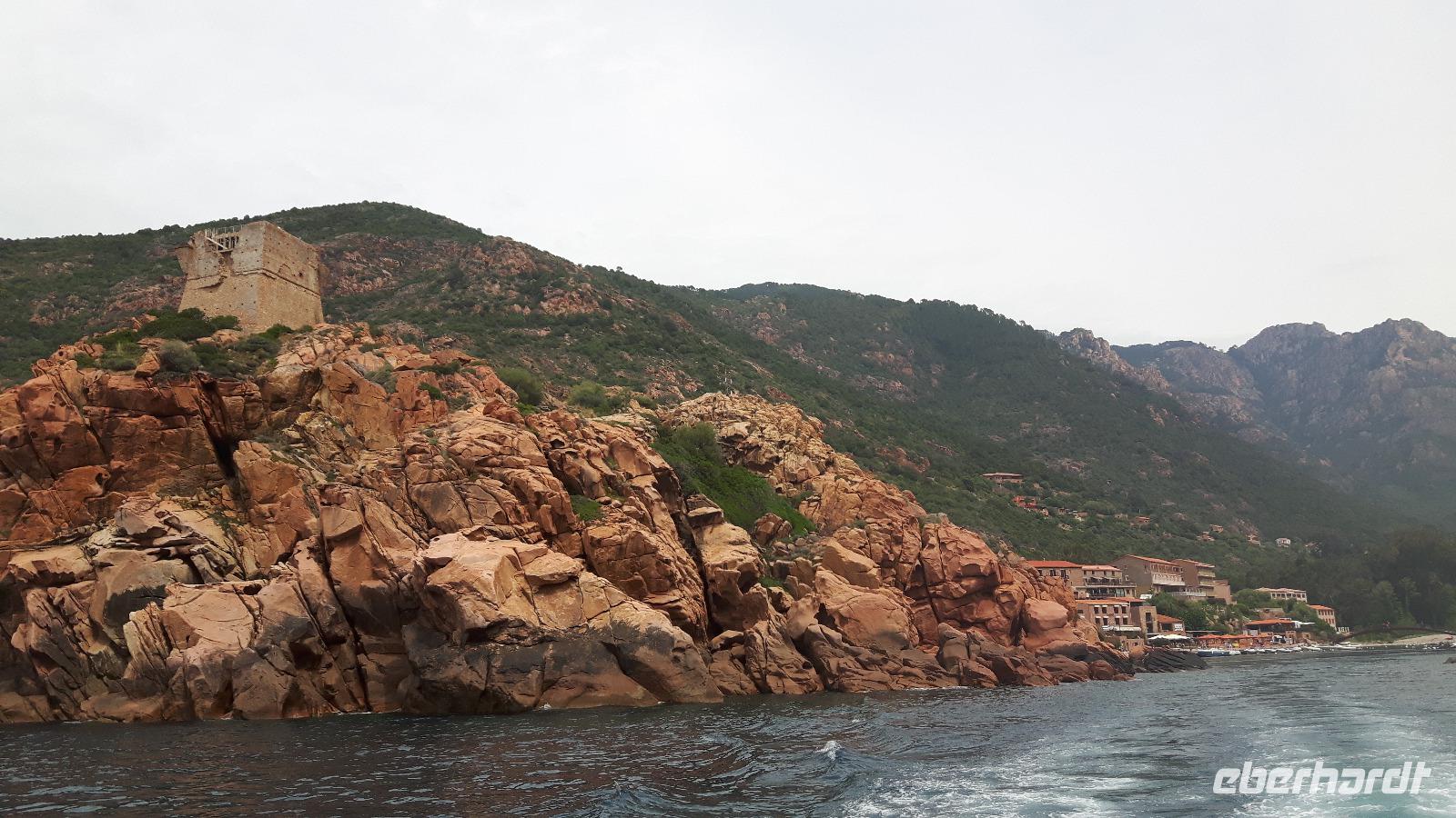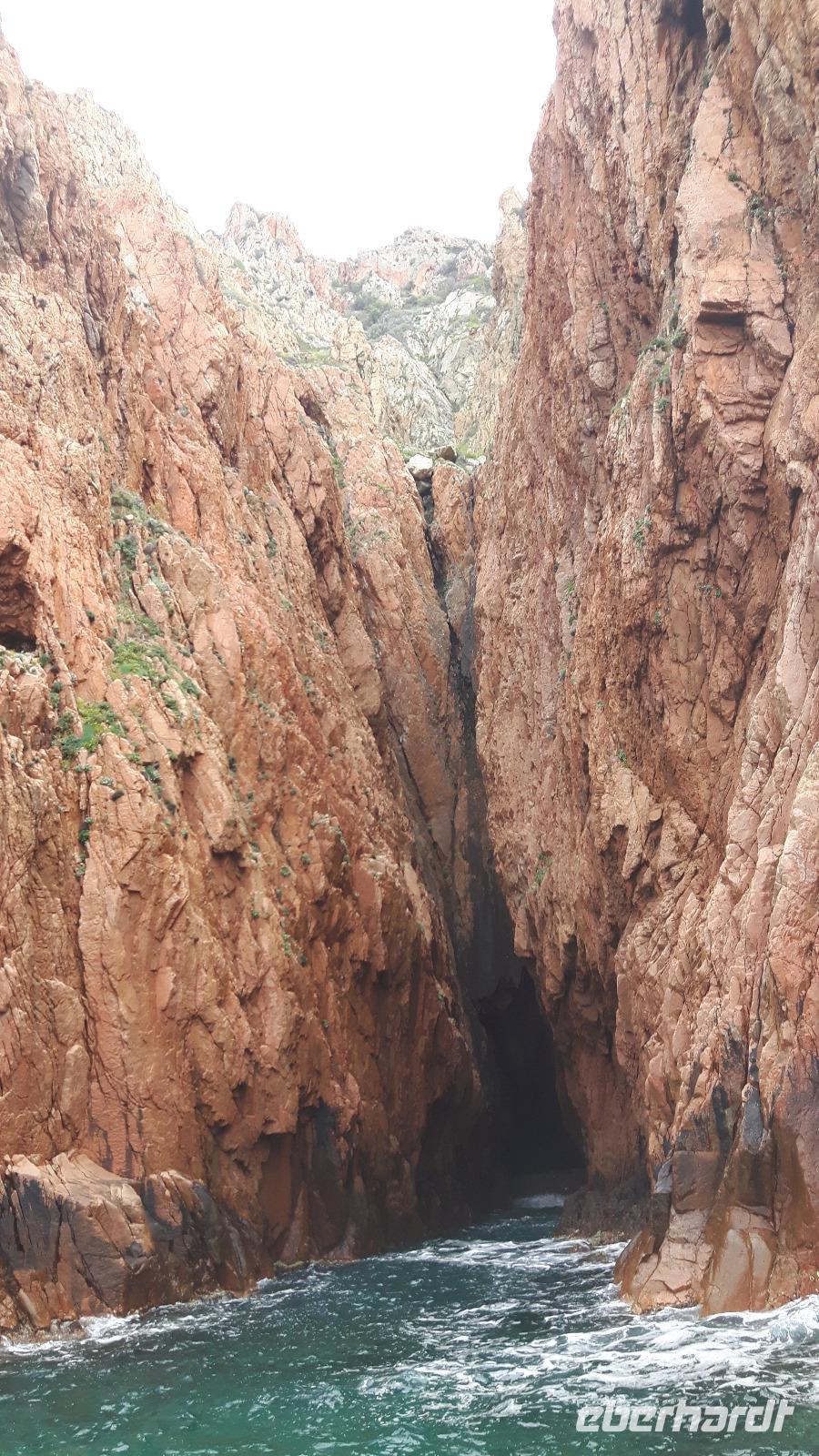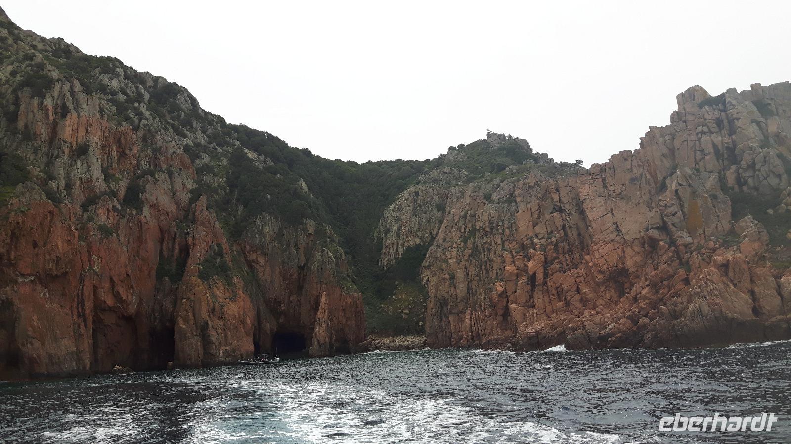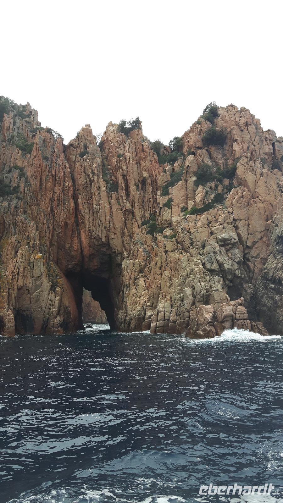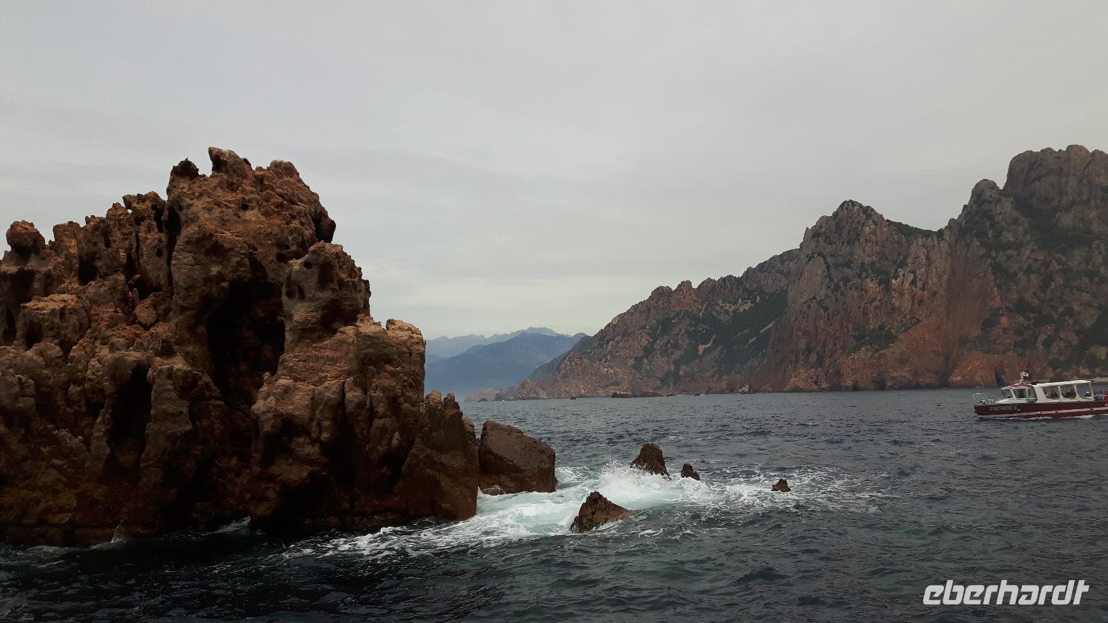 Zu der wohl schönsten Landschaft Korsikas führte uns unser heutiger Ausflug - zur Calanche. Am Golf von Sagone entlang und vorbei an der griechischen Stadt Cargese erreichen wir die Calanche, eines der berühmtesten Naturphänomene der Insel. Der bizarre gelbliche bis rote Felsengarten hoch über dem Meer ließ uns ins Schwärmen geraten. Die Tafoni-Verwitterung wurde hier erforscht. Diese durch Wasser- und Temperatureinwirkungen entstandenen Felsformationen können an vielen Stellen Korsikas beobachtet werden, aber selten so großflächig und vor dem farblichen Kontrast des tiefblauen Meeres wie in der Calanche. Wir ließen unserer Phantasie freien Lauf und entdeckten u. a. eine Schildkröte und einen Hund. Nach diesem aufregenden Naturereignis fuhren wir weiter nach Porto zur Mittagspause. Die meisten unserer Gäste unternahmen von hier aus eine eindrucksvolle Schifffahrt entlang der Küste bis zum Capo Rosso, welches sich am südlichen Ende des Golfs von Porto befindet. Wir sahen beeindruckende steil abfallende Klippen, kleine Grotten und die bizarre Felsformationen. Diese Gegend zählt zweifellos zu den Naturschönheiten der Insel. Entsprechend gut gestärkt und in bester Laune begaben wir uns weiter in die wildromantische Spelunca-Schlucht, welche ein Werk von den Flüssen Aitone und Tavulella ist. Auf der Fahrt begegneten wir mitten auf der Straße zahlreichen Wildschweinen... - das war übrigens eine „Riesen-Spektakel" und ein entsprechender Foto-Stopp durfte daher natürlich nicht fehlen!
