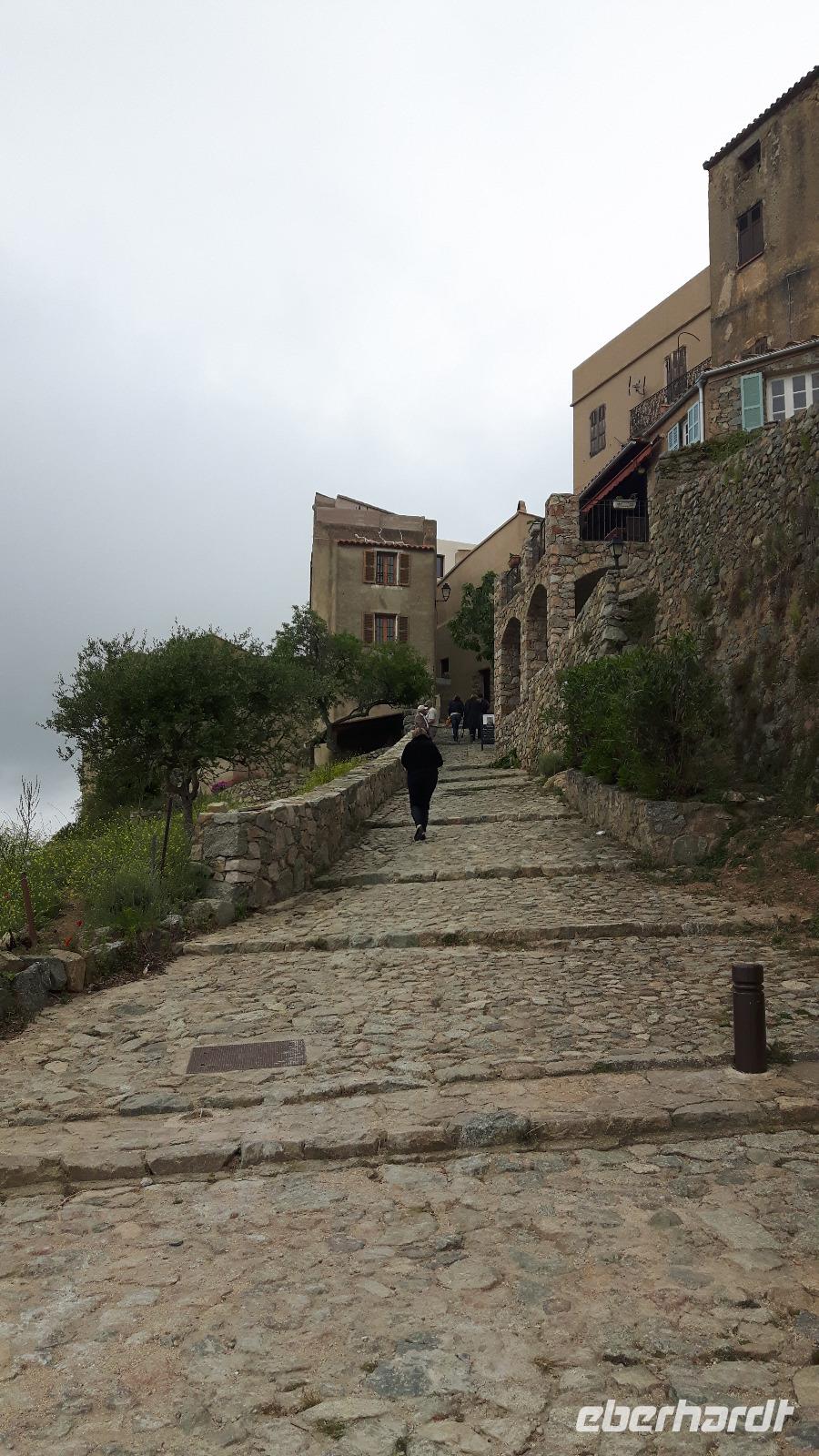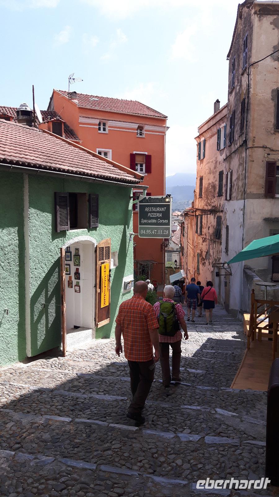 Am Morgen starteten wir in Richtung Nordwestküste. Zunächst legten wir einen kleinen Fotostopp kurz vor dem blühenden Hafenstädtchen Ile Rousse ein. Den Namen hat die Stadt von der ihr vorgelagerten roten Felseninsel La Pietra, die heute über einen Damm mit der Innenstadt verbunden ist. Der dadurch entstandene Naturhafen wird von den großen Fähren aus Frankreich und Italien angefahren, und hat die Stadt zum zweitwichtigsten Zentrum der Balagne nach Calvi gemacht. Für Urlauber präsentiert sich Ile Rousse als beliebter Ferienort mit zahlreichen Restaurants und Cafés. Entlang der traumhaften Küstenstraße gelangten wir nach Calvi. Hier befindet sich das vermeintliche Geburtshaus von Christoph Columbus, denn Calvi beansprucht (zusammen mit anderen Städten) für sich der Geburtsort des berühmten Seefahrers und Entdeckers zu sein. Wir bummelten hinauf ins Zitadellenviertel und durch die Gassen der Unterstadt. Hier hatten wir auch zahlreiche Möglichkeiten, die letzten Souvenirs für die Daheimgebliebenen zu erwerben. Durch die Balagne, den „Garten Korsikas" führte uns unser Weg nach Sant´ Antonino. Es gehört zu den schönsten Dörfern Frankreich und klebt wie ein Adlerhorst auf einer Bergkuppe - schon die Fahrt dorthin war ein echtes Abenteuer! Nach einem Bummel durch das Gassengewirr erfrischten sich die meisten unserer Gäste bei einem Glas Zitronensaft in der ansässigen Weinkellerei Clos Antonini. Voller schöner Eindrücke kehrten wir am Abend in unser Hotel „Lagune" nahe der Stadt Borgo zurück.