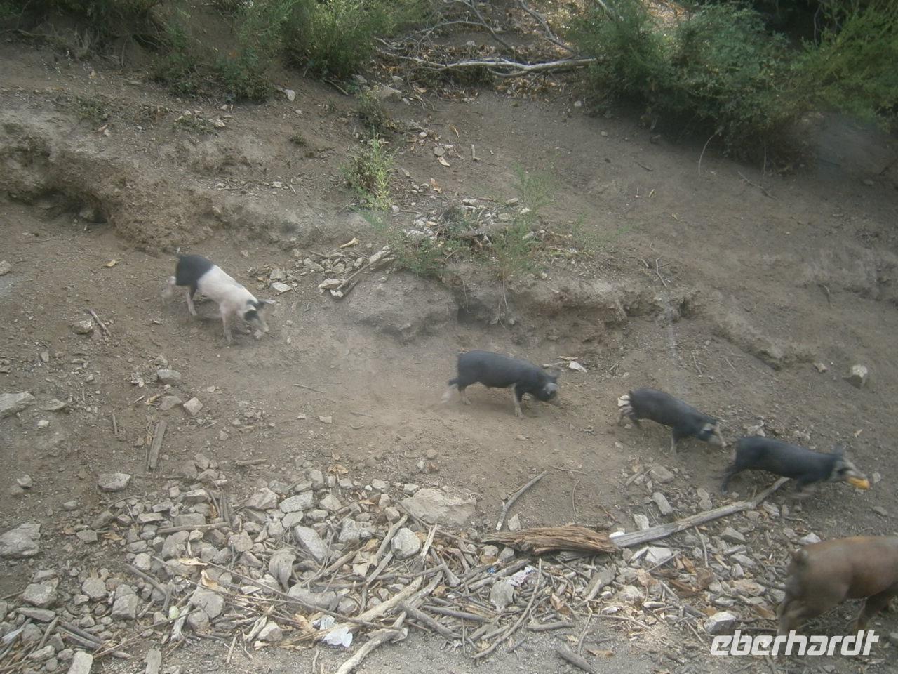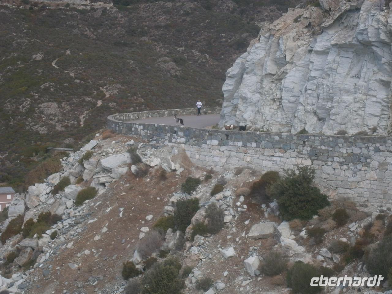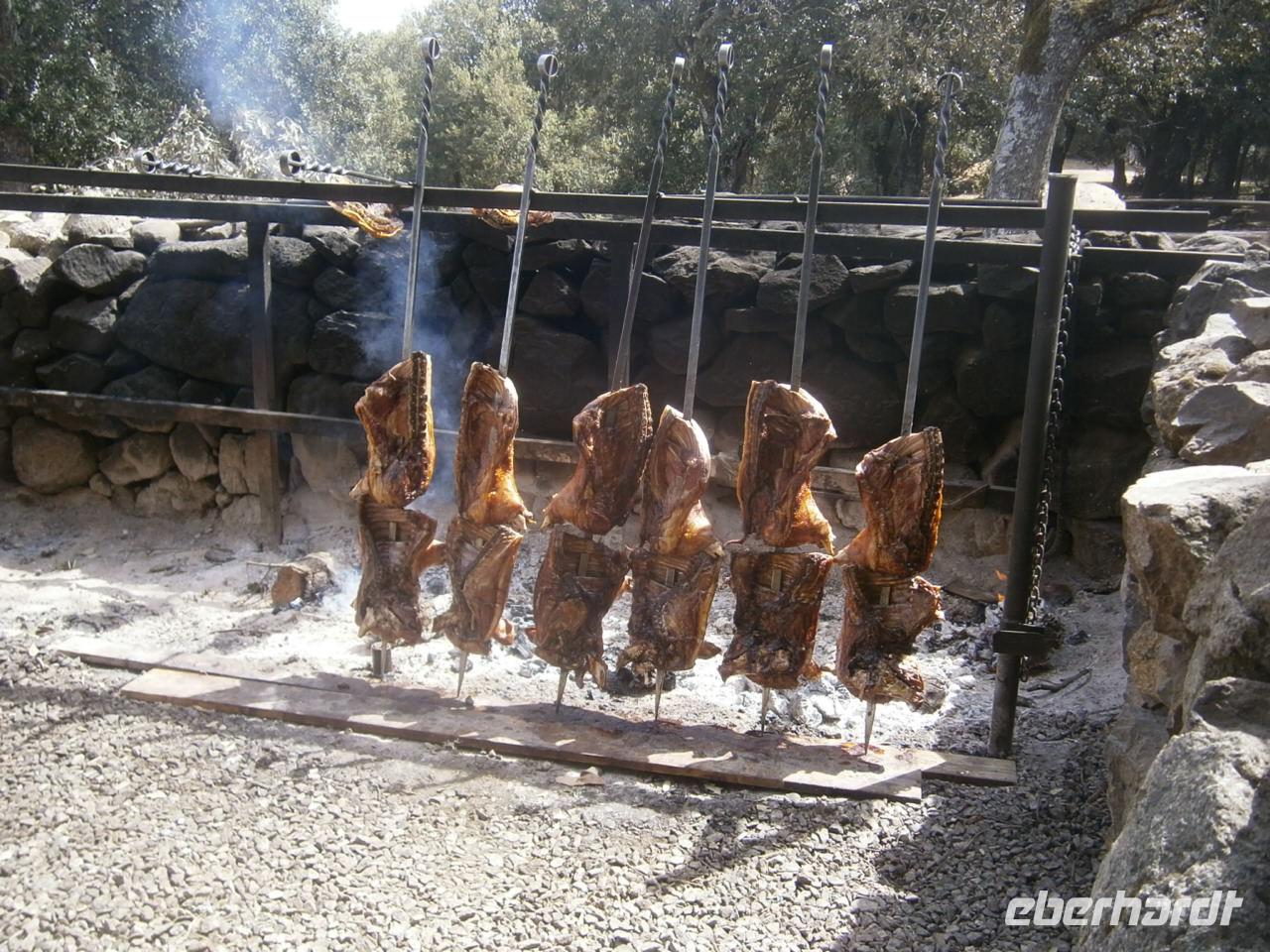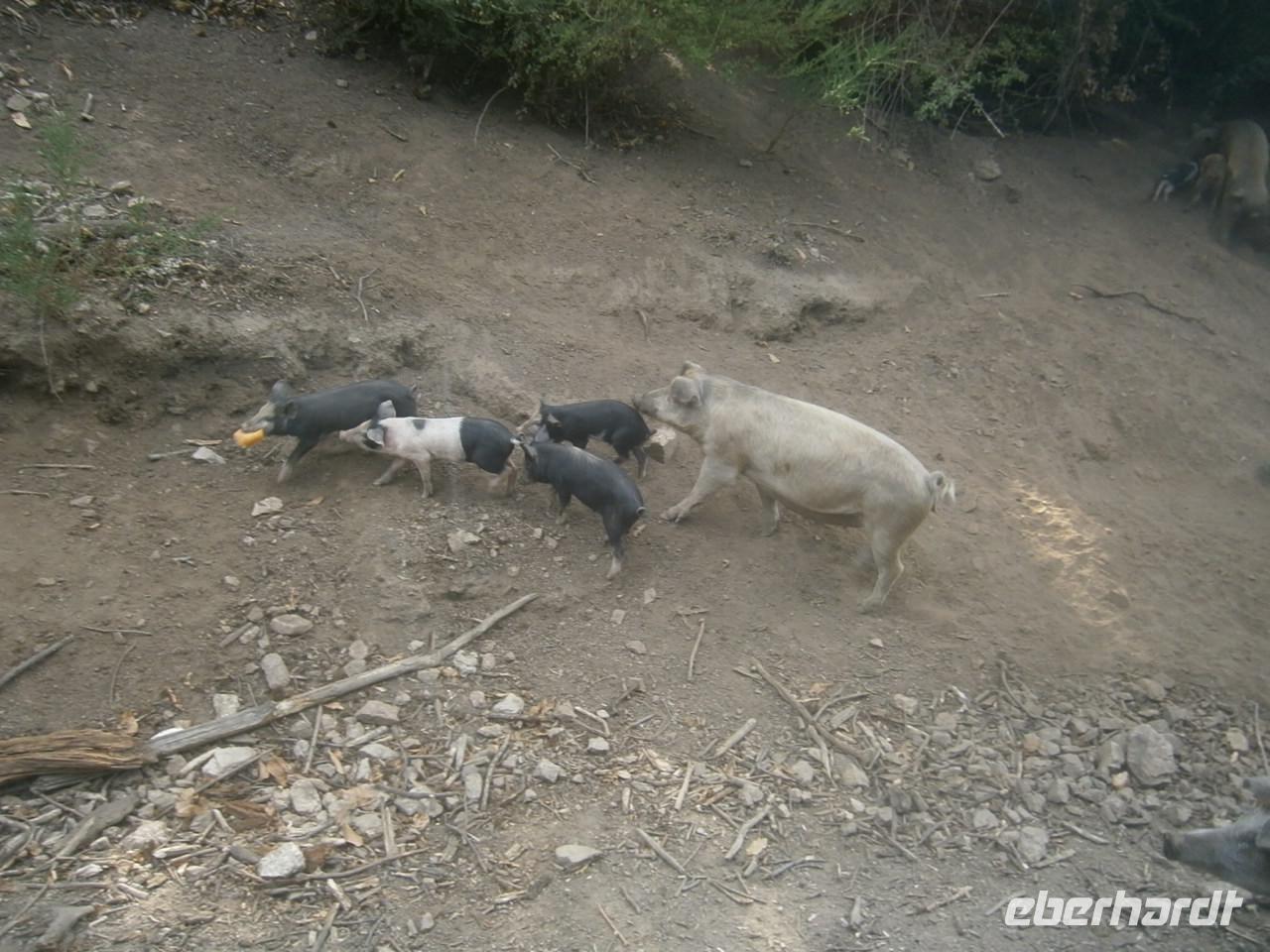 Am Nachmittag geht's dann zurück in Richtung Ajaccio. Natürlich auf einem anderen Weg. Durch die Berge, an Evisa und Vico vorbei. Während unserer Fahrt eröffnen sich unseren Gästen immer wieder fantastische Ausblicke und tiefe Einblicke in die Bergwelt Korsikas. In dieser Gegend leben zahlreiche frei laufende Hausschweine. Rechts und links der Fahrstrecke kreuzen sie immer wieder die Fahrbahn. Von Evisa aus schauen wir noch einmal zurück auf den Golf von Porto und auf eine Selve. Das ist eine Hochstammanlage aus veredelten Edelkastanien. In Evisa wurde diese Anlage wiederbelebt, da sie einen hohen Stellwert in der Kulturlandschaft besitzt.