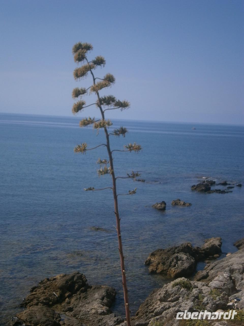 Unser Buschauffeur hat an diesem Reisetag seinen Ruhetag. Deshalb spazieren wir gemeinsam vom Hotel aus entlang der Uferpromenade um unsere Gästeführerin Marcella zu treffen. Gemeinsam mit ihr unternehmen wir einen Rundgang durch die Altstadt, die zu den schönsten von Sardinien zählt. Dicke Mauern umschließen die Altstadt, die wiederum an drei Seiten vom Wasser umgeben wird. Am Turm des Forte de La Magdalena befindet sich der Gedenkstein der an die Landung von Garibaldi im Jahr 1855 erinnert. Durch die Porta a Mare betritt man die Altstadt die durch schmale Gassen mit vielen kleinen Plätzen durchzogen wird. Wir besichtigen die Kirche San Francesco. Sie wurde im 14. Jahrhundert gebaut und nach einem Einsturz Anfang des 17. Jahrhunderts zum Teil wieder aufgebaut. Der Glockenturm mit seiner Kuppel, die mit bunten Kacheln überzogen ist, wurde zu einem Symbol der Stadt. über zahlreiche Bauten aus dem Mittelalter verfügt. Marcella erklärt uns warum ein Teil der Einwohner (vorwiegend innerhalb der Familien) den katalanischen Dialekt sprechen. Kolonisten aus Barcelona besiedelten die Stadt neu, nachdem die einheimische Bevölkerung nach einem Aufstand gegen den König von Aragon vertrieben wurden. Verschiedene Vereine fördern in der heutigen Sprache und Kultur. Zur Mittagszeit verabschieden wir uns von Marcella und unseren Gästen steht der Nachmittag zur freien Verfügung. Alghero ist ein touristisches Zentrum und gut eingestellt auf ihre Besucher. Zahlreiche Restaurants und Cafes laden zum verweilen ein. Liebhaberinnen für Korallenschmuck kommen auf ihre Kosten. Die Küste rund um Alghero wird wegen ihres reichen Korallenvorkommens auch als Riviera del Corallo bezeichnet. In den Souvenir- und Schmuckgeschäften gibt es ein großes Angebot an kunstvoll verarbeiteten Korallenschmuck. Der größte Teil unserer Reisgruppe hat sich für einen Bootsausflug zur Neptunsgrotte entschieden. Gemeinsam fahren wir vom Hafen zum Capo Caccia. Das Cap fällt fast zweihundert Meter steil ins Wasser und ist sieben Kilometer lang. Von besonderer Schönheit ist die Neptunsgrotte. Wir sind an diesem Tag nicht die einzigsten die die Grotte besichtigen möchten. Die Tropfsteinhöhle zählt zu den schönsten im Mittelmeerraum. Im 14. Jahrhundert wurde sie von Fischern entdeckt und ist seit 1950 für Besucher geöffnet - allerdings nur die ersten paar hundert Meter im Rahmen einer Führung.