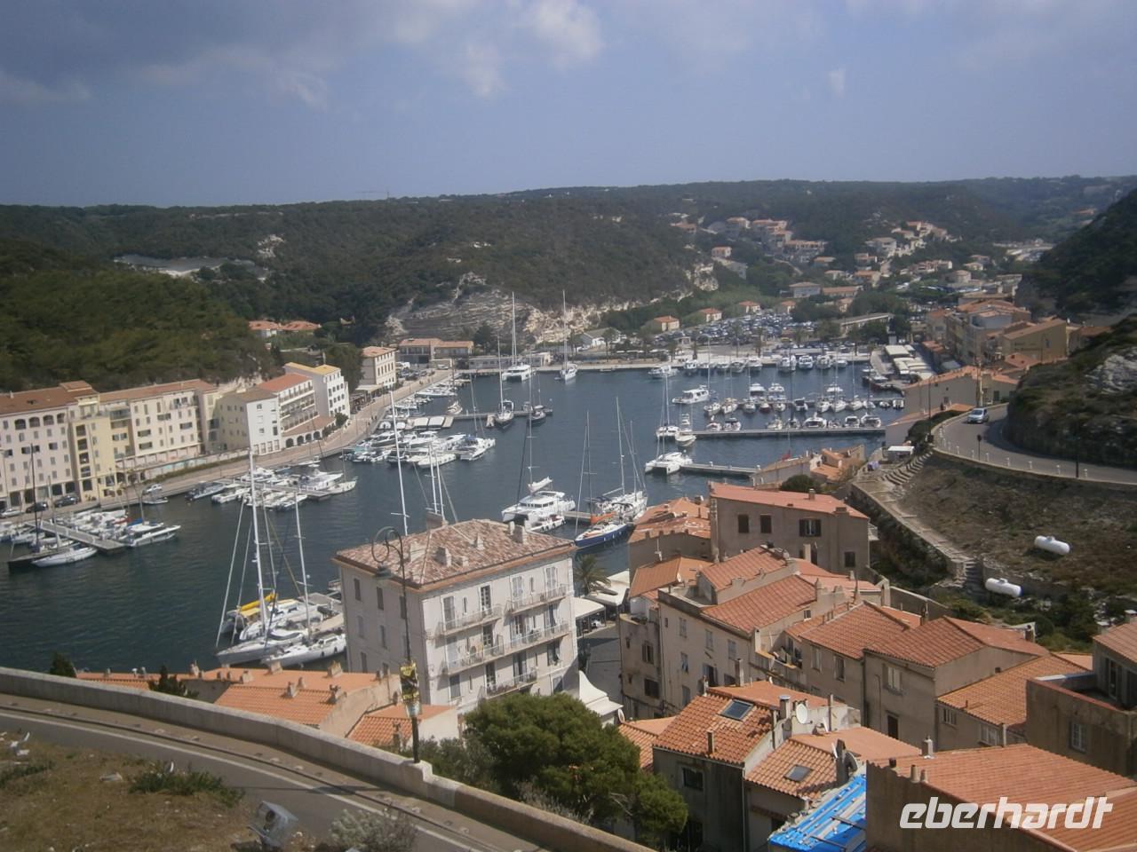 In Santa Teresa Gallura erreichen wir pünktlich den Hafen. Die kleine Hafenstadt wurde von Victor Emanuel I, König von Sardinien und Piemont, gegründet und nach seiner österreichischen Frau Maria Theresia benannt. Mit der Moby fahren wir über die Straße von Bonifacio. Sie ist eine Meerenge zwischen den benachbarten Inseln Sardinien und Korsika und ist 12 Kilometer breit. Zur Mittagszeit sind wir in der Stadt Bonifacio, die südlichste Hafenstadt von Korsika. Durch ihre einmalige Lage, hoch oben auf einem Kreidefelsen ist sie einzigartig und atemberaubend schön. Vom Hafen aus führt eine Treppe hinauf in die Altstadt. Diese betritt man durch das wuchtige Portal des Genueser Tores und über eine Zugbrücke. Kleine schmale Gassen durchziehen die Altstadt von Bonifacio und dem Besucher eröffnen sich immer wieder grandiose Ausblicke auf das Küstengebiet und den Yachthafen. Nach dem Aufenthalt setzen wir unsere Fahrt fort, in Richtung Ajaccio. Entlang am Küstengebiet Zwischen Bonifacio und Sartene erblicken wir den Löwenfelsen. Der Legende nach soll der Löwe die Korsen vor Angreifern schützen. Nun ja immer hat das wohl nicht funktioniert. Sagt doch die Geschichte der Insel etwas anderes. Wir passieren die Stadt Sartene. Die Kleinstadt im Südwesten Korsika liegt auf einem Plateau mit wunderschöner Panoramaaussicht auf das Rizzanesetal und den Golf von Valinco. Sartene, genannt auch als „Die korsischste aller Städte" vermittelt durch ihre hohen Granithäuser einen verschlossenen Eindruck und erinnert an die dunklen Zeiten der Vendetta, der Blutrache.
