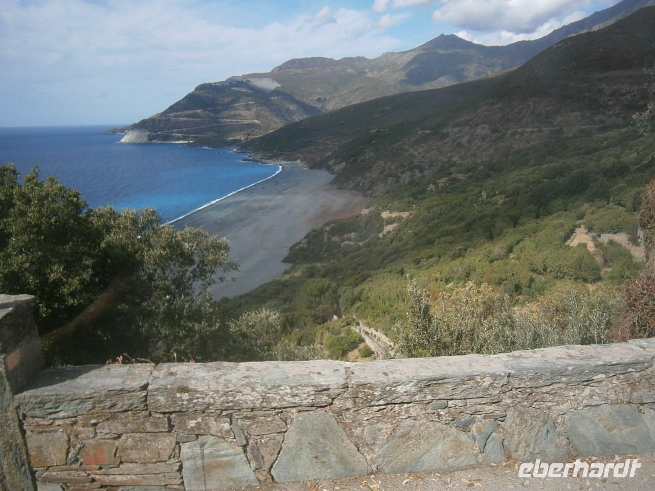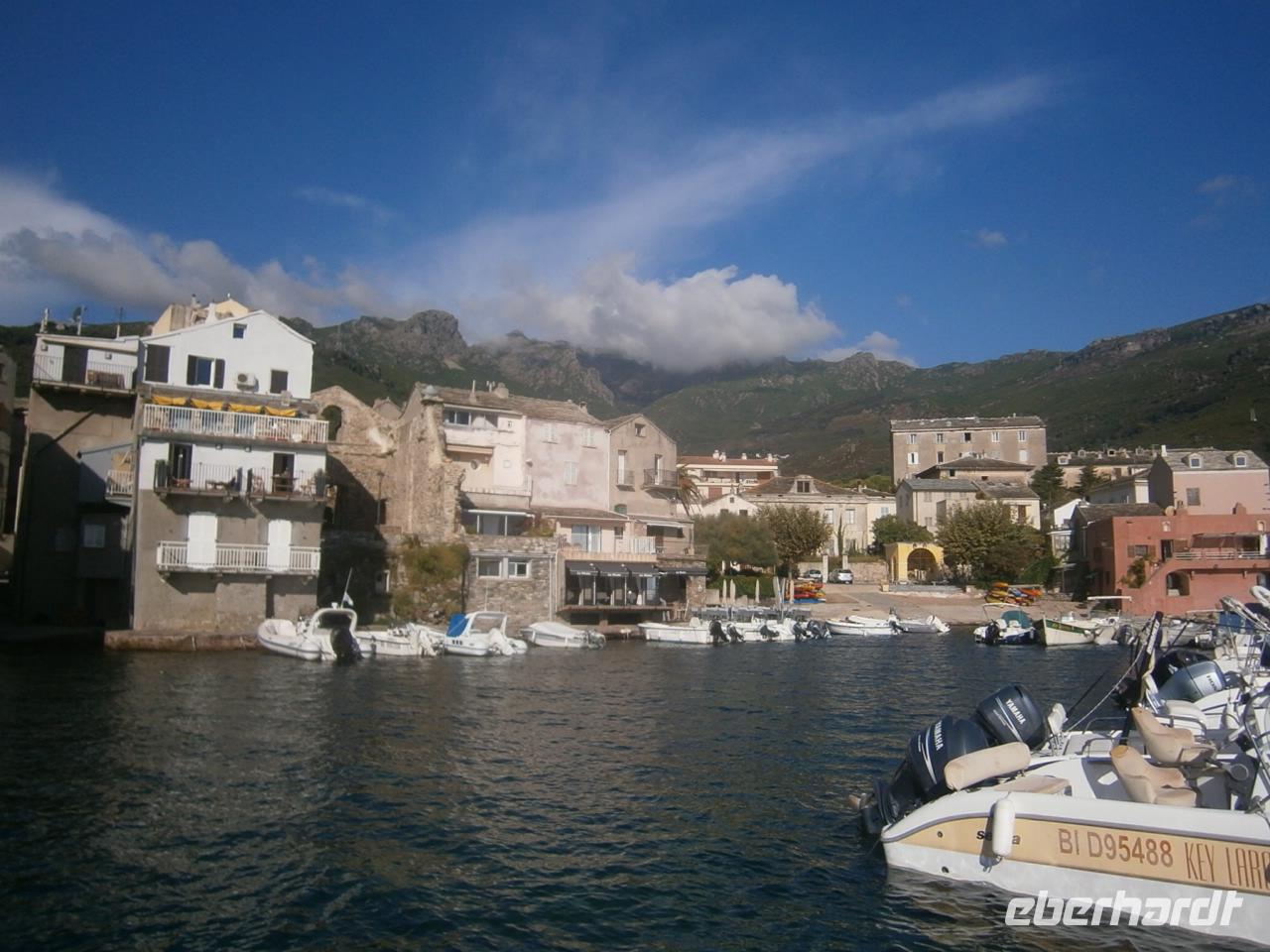 Nach dem Regen in der Nacht scheint die Luft an diesem Morgen wie frisch gewaschen. Wundervolle Ausblicke stehen uns am letzten Reisetag auf der Insel Korsika bevor. Die Umfahrt um Cap Corse. Das Cap ist 40 km lang und zwischen 10 und 15 km breit. Die Ostküste fällt eher flach ins Meer und es gibt mehrere schöne Badebuchten. In Erbalunga spazieren wir gemeinsam bis zum Hafen. Die Häuser dieses kleinen Ortes scheinen mit dem Meer eine Einheit zu bilden. Bewacht wird der Ort von einem Genueserturm. Rund um Korsika entlang der ganzen Küste trifft man sie an, die Wachtürme aus genuesischer Zeit. Sie stehen oft auf Landzungen oder auf Felsen manchmal aber auch mitten in Dörfern. Erbaut wurden sie alle zwischen 1510 und 1620, als Korsika unter der Herrschaft der genuesischen Bank des heiligen Georgs war. Korsika wurde zur damaligen Zeit immer wieder von Sarazenen und Osmanen überfallen. Das Cap Corse weist eine enorm hohe Dichte an Genuesertürmen auf. Einst standen 29 Türme entlang der Küste. Erbaut wurden sie alle aus Schiefer, dem typischen Gestein des Cap Corse, während die allermeisten anderen Türme Korsikas aus Granit errichtet wurden.