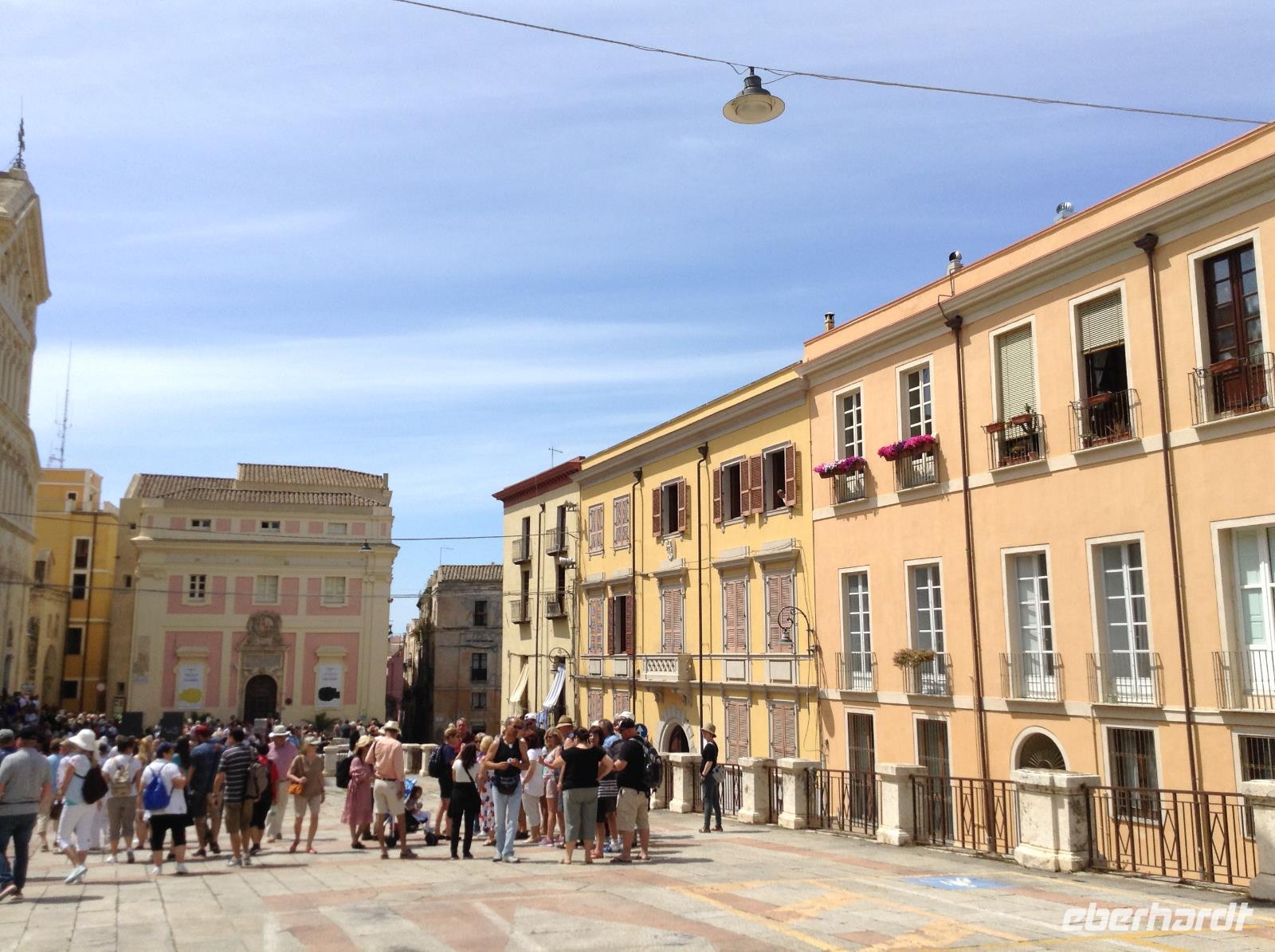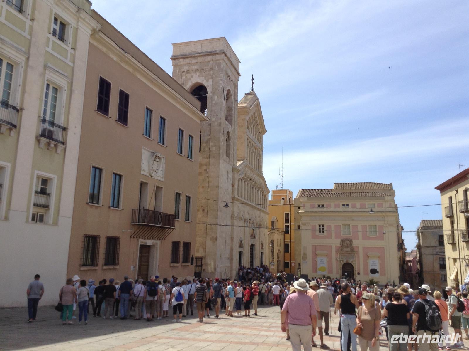 Der heutige Tag stand ganz im Zeichen der sardischen Hauptstadt Cagliari und wir fuhren an der Küste entlang, an hunderten Flamingos im Brakwasser vorbei, zum Ortseingang, wo uns die örtliche Stadtführerin empfing. Per Bus ging es zunächst zum klosterkomplex Bonaria mit der mächtigen Basilika, später dann zum Berg Monte Urbino mit der Statue des Heiligen Franz von Assisi. Wir wurden mit einem tollen Rundumblick auf die Stadt, das Meer und das Brakwasser mit den unzähligen Flamingos belohnt. Der Bus fuhr dann bis zur Altstadt, dem Castello. Dort stiegen wir aus und bummelten zu Fuß weiter durch die Altstadtgassen. Anschließend war genügend freie Zeit für eigene Erkundungen in der Stadt. Am Nachmittag fuhren wir zurück nach Quartu Sant Elena, machten einen Stopp am Strand unterwegs bei zugigem Wind. Der restliche Nachmittag war zur freien Verfügung.