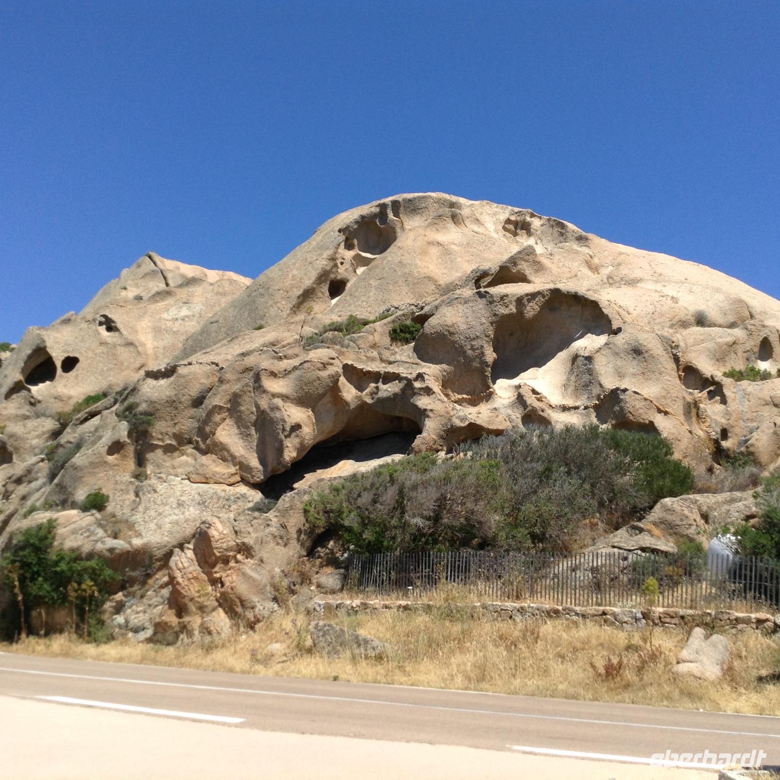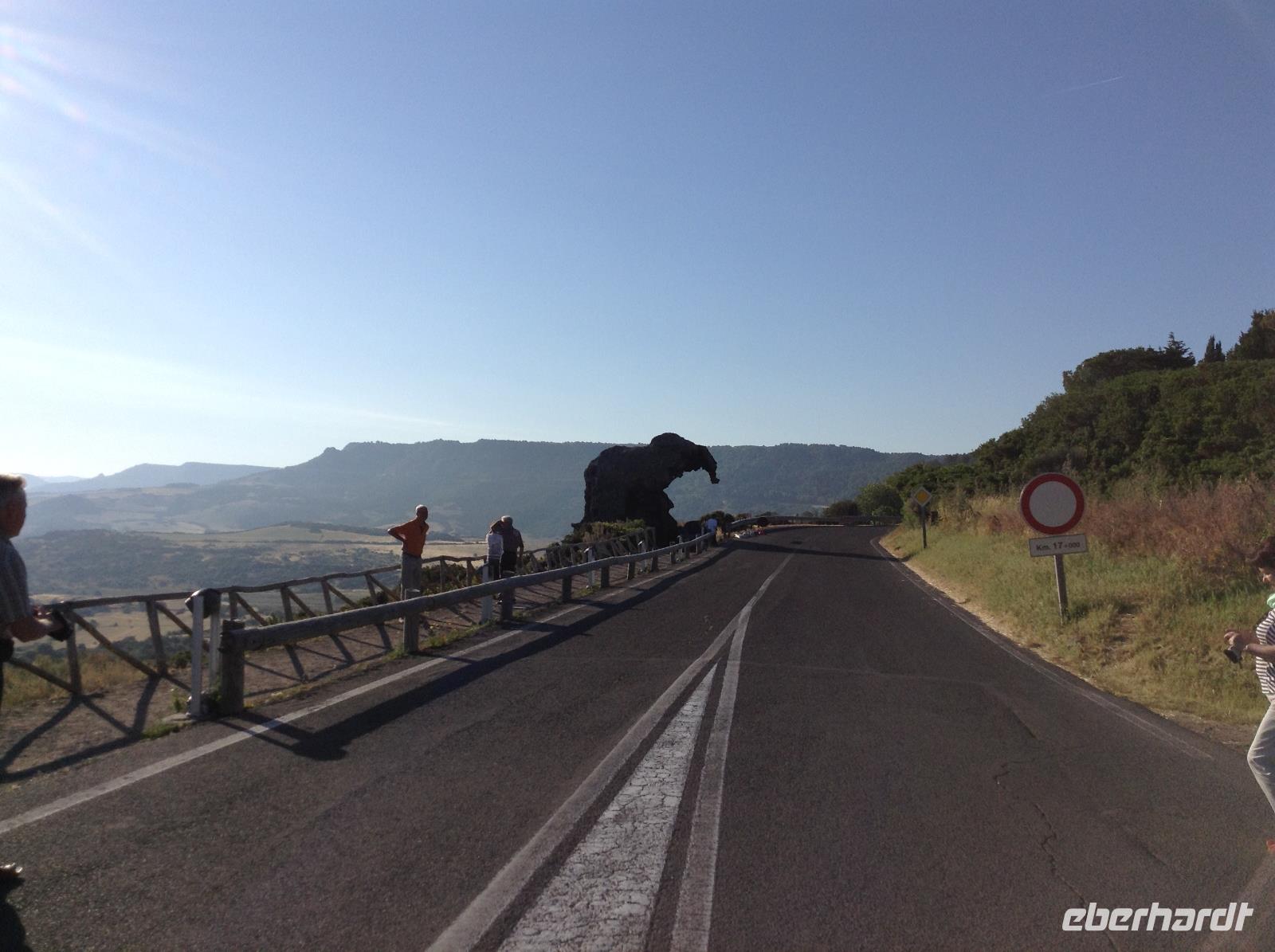 Gemeinsam gingen wir von Bord der Fähre, unser Bus stand schon da und unsere Inselerkundung konnte beginnen. In der Morgensonne fuhren wir in Richtung Costa Smeralda und hielten immer wieder zu Fotostopps, um die Schönheit dieses Küstenabschnittes einzufangen. Unser Weg führte uns nach Porto Cervo, dem Zentrum der Smaragdküste, das in den 60iger Jahren durch den Multimillionär Karim Aga Khan touristisch erschlossen und ausgebaut wurde. Heute ist es das "teuerste Pflaster" der Insel. Ein gemeinsamer Bummel führt uns durch die Gassen von Porto Cervo. Entlang der Küste ging es zurück ins Landesinnere in südlicher Richtung. An Nuoro vorbei ging es in die Berge nach Orgosolo, der Stadt der "Murales". Die berühmten Wandbilder haben Orgosolo bekannt gemacht. Sie reichen von politischen Motiven über abstrakte Kunst und drücken das Denken und Fühlen der Hirten und Einheimischen aus. Durch Orgosolo hindurch ging es in die Berge des Gennargentugebirges zum Hirtenessen. Im Herzen Sardiniens lernten wir Traditionen und Sitten und vor allem das Essen der Hirten kennen. Es gab Inselspezialitäten, wie gegrilltes Lamm und Spanferkel, würzigen Pecorinokäse und Schinkenspeck, Fladenbrot. Dazu wurde reichlich Wasser und Wein serviert. Zum Abschluß noch ein Grappa und dann sangen 4 Männer