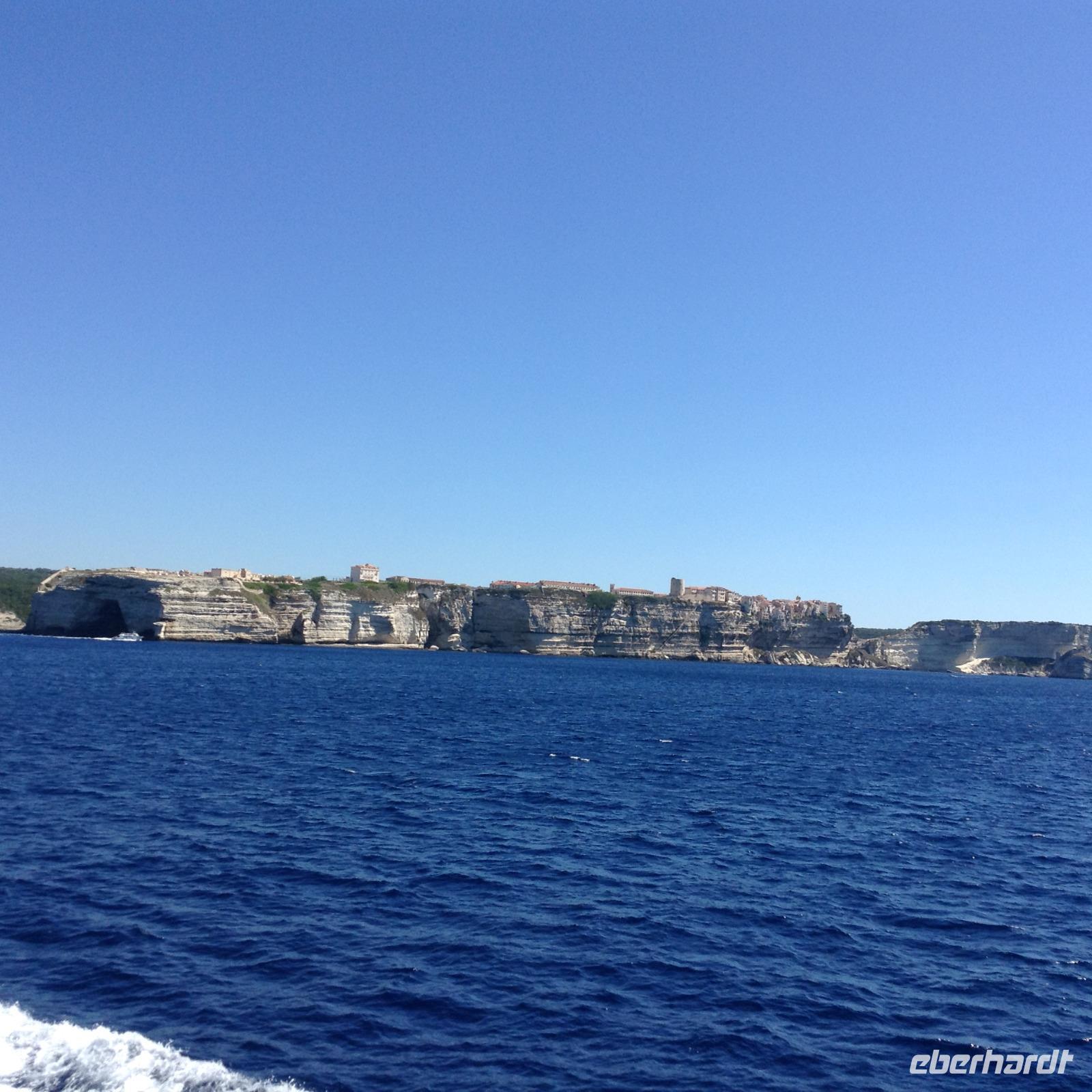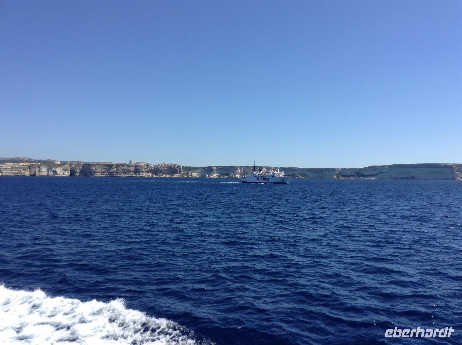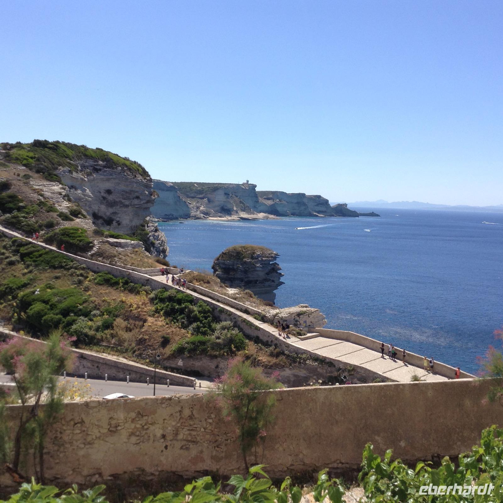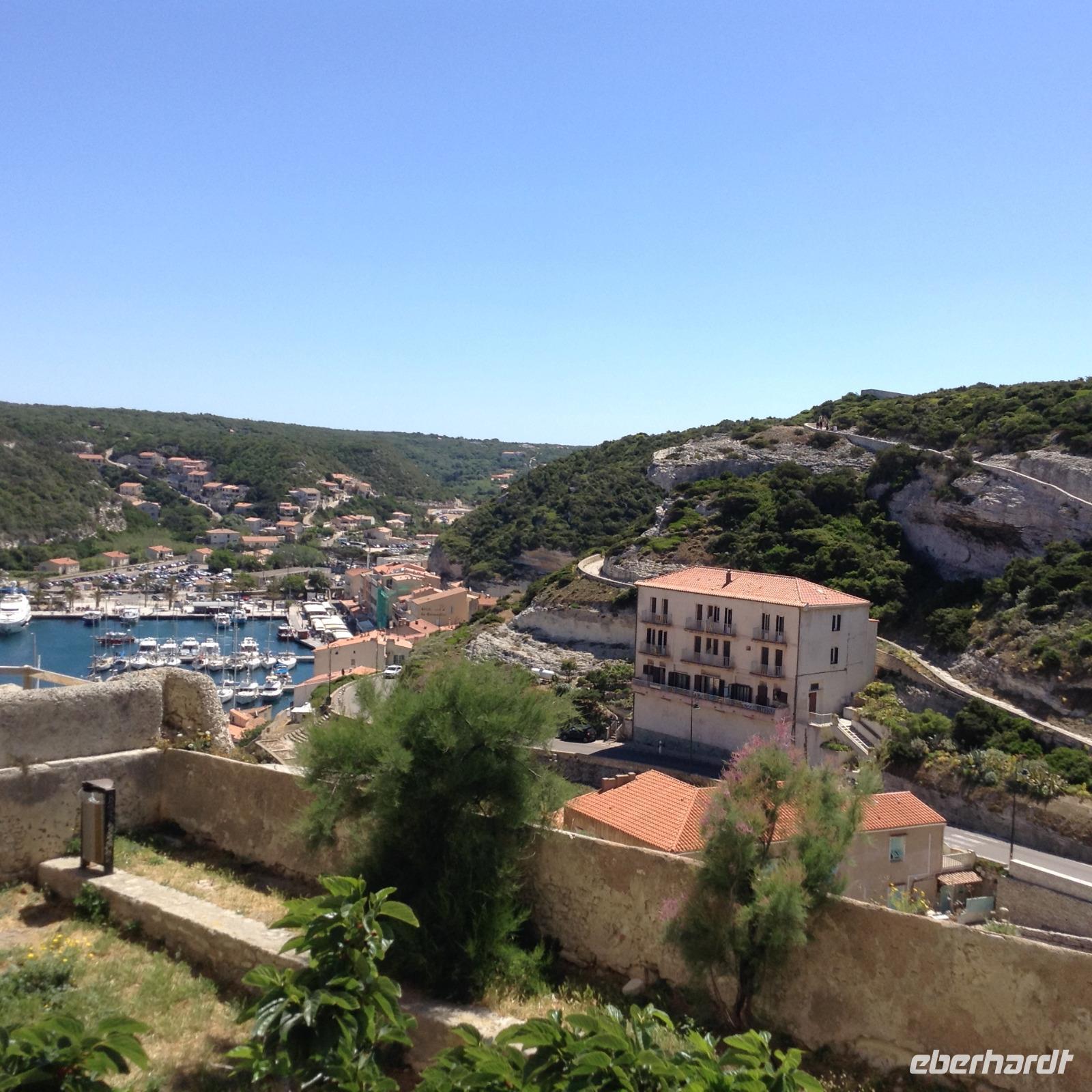 Zeitig früh mussten wir im Hotel los, machten Fotostopps in Castelsardo und am steinernen Elefanten, ehe es an die nördlichste Spitze Sardiniens ging. Von Santa Teresa di Gallura aus ging unsere Fähre nach Korsika. Nach einer Stunde erreichten wir das südlichste Ende in Bonifacio. Gemeinsam spazierten wir am Hafen der Unterstadt entlang bis zu den Stufen zur Oberstadt. Einige wollten sich die Stufen und den etwas beschwerlichen Weg zur Oberstadt sparen und nutzen die kleine Bimmelbahn ab Hafen zur Auffahrt. Nach Erkundung der Altstadt ging es zurück zum Bus und weiter ins Landesinnere in nordwestlicher Richtung.