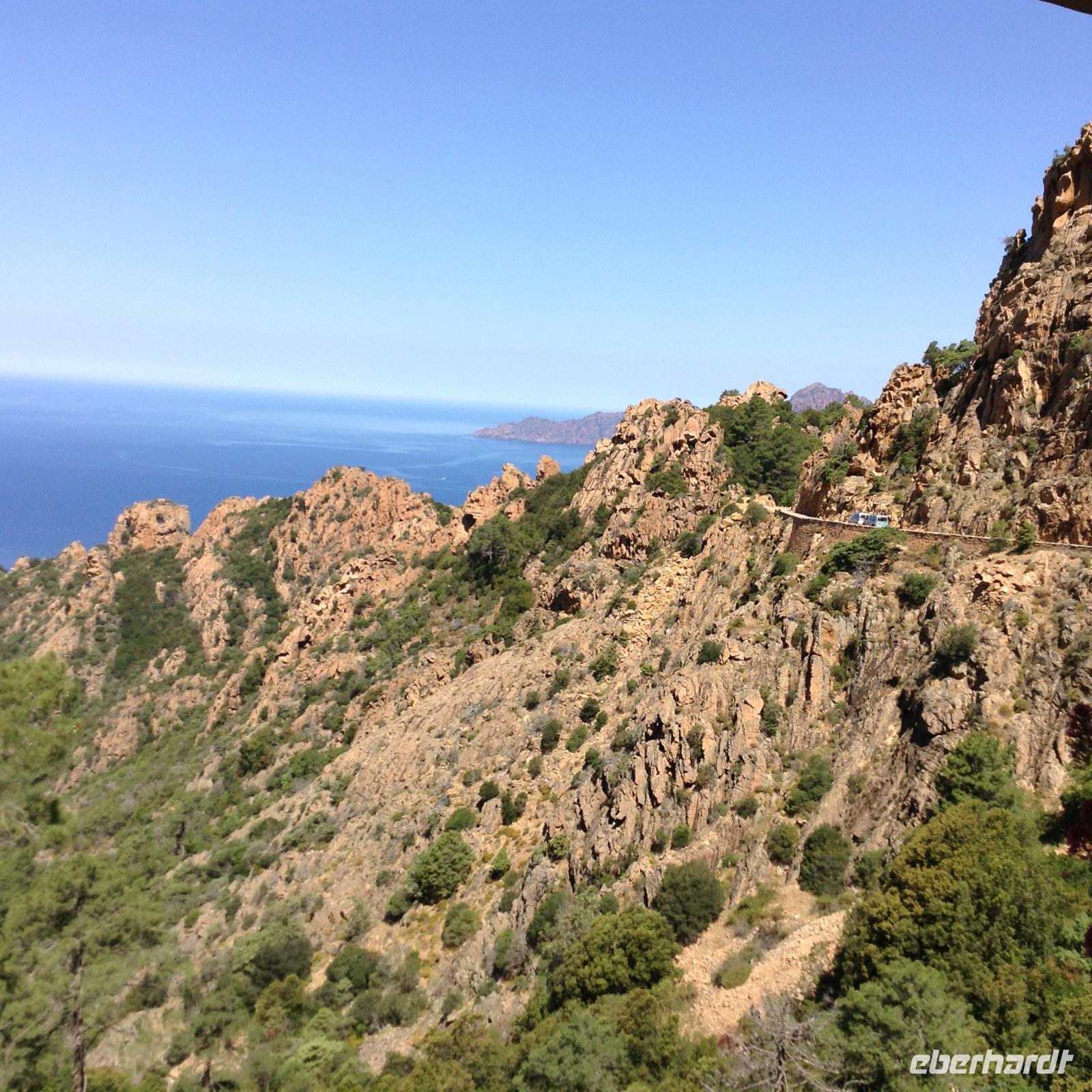 Wir starteten unseren Ausflug wieder durch das Inselinnere zur Nordküste. Mit Fotostopps ging es zuerst nach L'll-Rousse, dann nach Calvi, heute wieder mit strahlendem Sonnenschein.