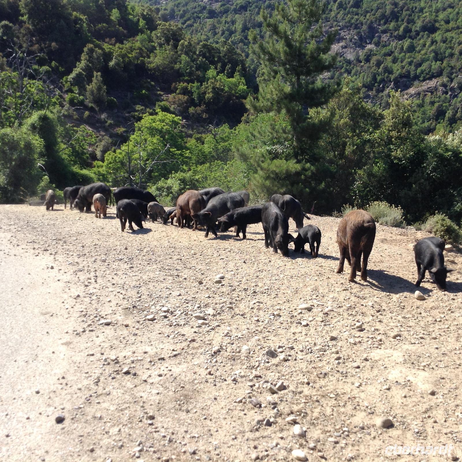 Dieser Küstenabschnitt gilt als einer der schönsten der Insel. Die Sonne läßt hier in wundervollen Rot- und Orangetönen bizarrste Felsformationen erstrahlen. Wir konnten uns kaum sattsehen an diesen wundervollen Bildern. Unsere Fahrt führte weiter nach Porto, wo die meisten Gäste der Gruppe eine wundervolle Bootsfahrt vor der Küste erleben konnten. Von Porto weg ging es dann in Richtung Spelunca Schlucht, auch hier gab es unterwegs wunderschöne Fotomotive. In den Bergen begegneten wir auch ersten freilaufenden Schweinen und hatten viel Spaß. Unsere Rückfahrt ging über Vico zurück nach Agnarello.