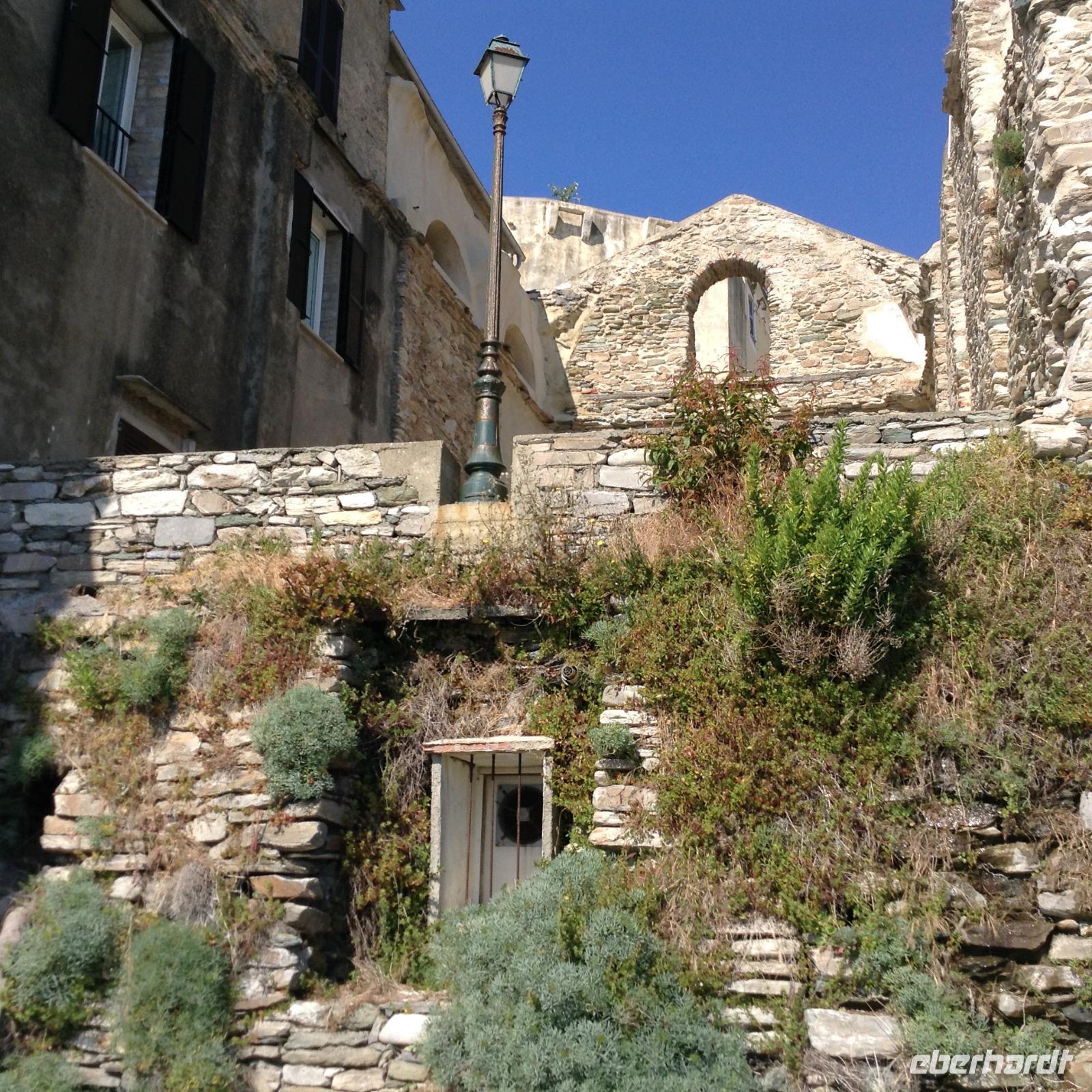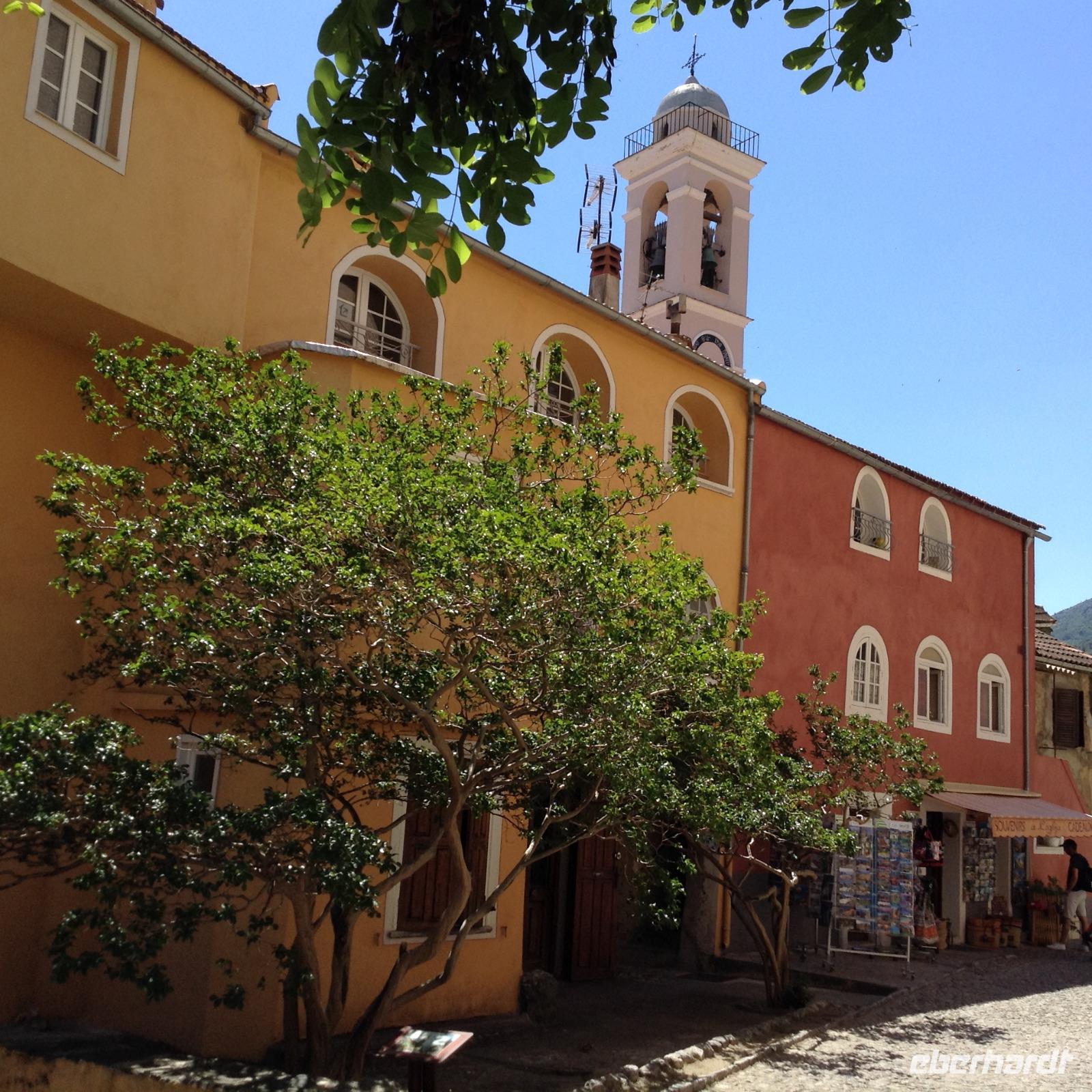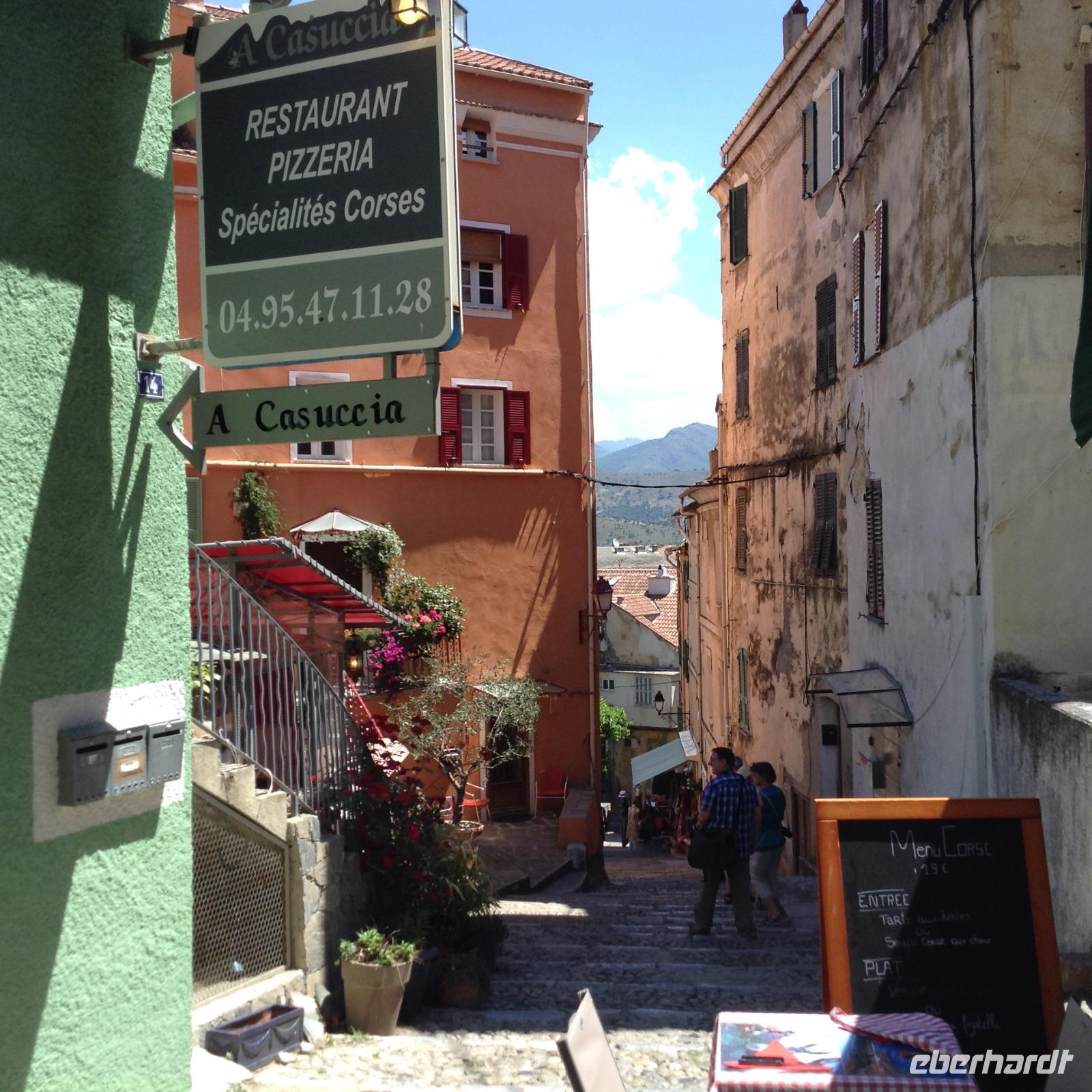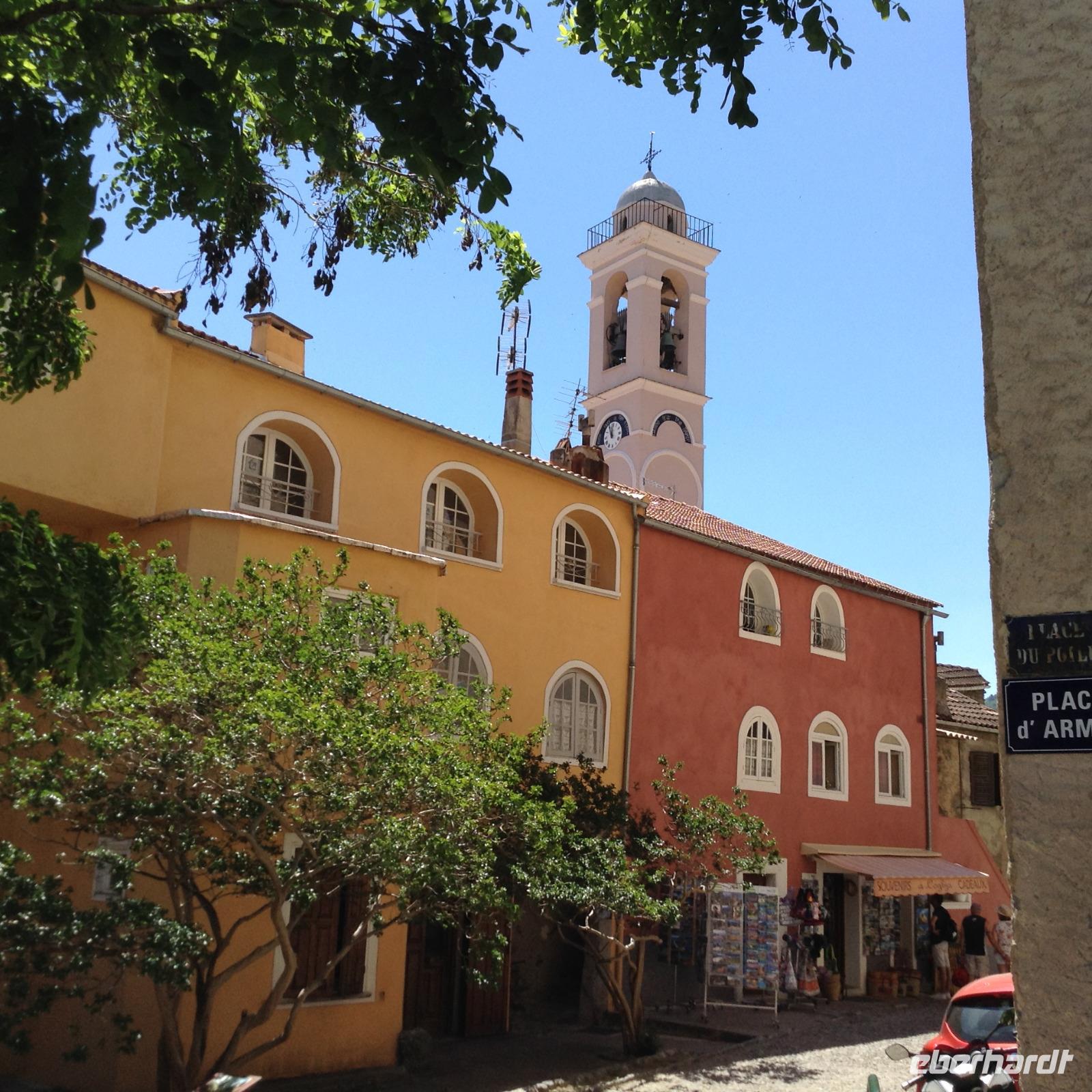 In Calvi gab es genügend Zeit zur Eroberung der Zitadelle zu Fuß und dann den Stadtbummel entlang des kleinen Hafens und der Altstadtgassen in der Unterstadt. Diverse Mitbringsel konnten gekauft werden, oder man hat einfach das tolle Flair dieser Stadt auf sich wirken lassen. Durch die Balange, den Garten Korsikas, führte uns unser Weg zum kleinen Bergdorf Sant Antonino. Wie ein Adlerhorst hängt dieser Ort hoch über dem Meer auf einer Bergkuppe.