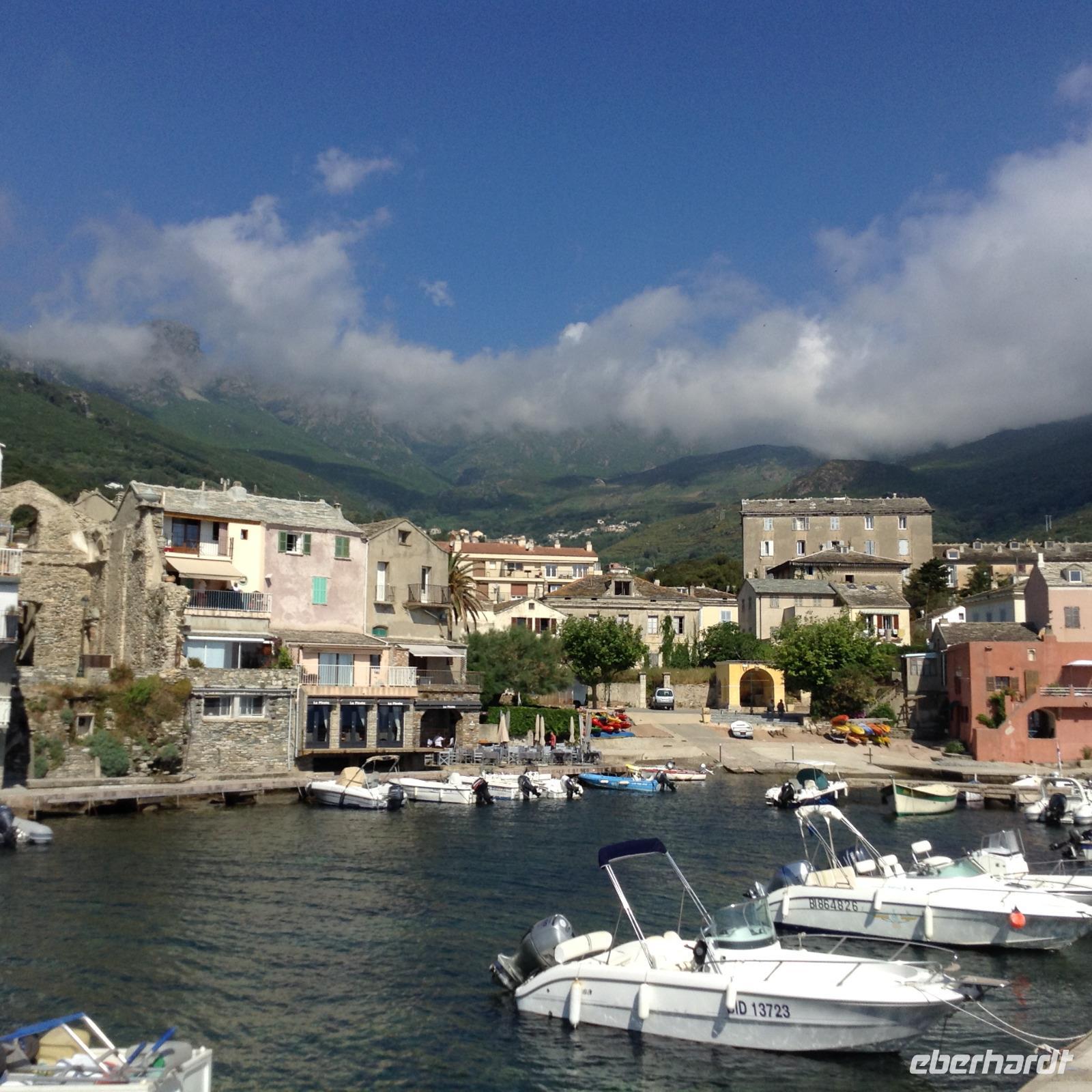 Unser letzter Ausflugstag auf der wunderschönen Insel begann und es sollte nochmal ein besonderer Tag werden. Wir starteten in Richtung Bastia, fuhren die Ostküste entlang und legten in Erbalunga unseren ersten Stopp ein. Eine klein Ortsbesichtigung war möglich, bot schöne Fotomotive. Weiter ging es in Richtung Nordspitze des Caps. Unterwegs hielten wir an einem der zahlreichen Genuesertürme zum Fotostopp und dann wieder im Hafen von Macinaggio. Die Gäste bummelten durch den Ort und wir bereiteten ein köstliches Picknick für die Gruppe vor. Mit korsischen Köstlichkeiten und korsischem Wein wurde der letzte Tag auf Korsika gebührend gefeiert. Das hat Spaß gemacht und wurde dankbar angenommen. Zur Weiterfahrt ging es dann hinüber auf die Westseite der Halbinsel, Halt am Aussichtpunkt Moulin Mattei und in unzähligen Kurven bis Nonza. Dort war kurzer Fotostopp hoch über dem schwarzen Strand. Unser letzter Halt war in Sant Florent. Dort gab es nochmal Zeit zum Bummeln am Hafen und in der hübschen Stadt, ehe es über den Col de Teghime zurück nach Bastia ging. Von dort fuhr unsere Fähre am Abend in Richtung Nizza ab.