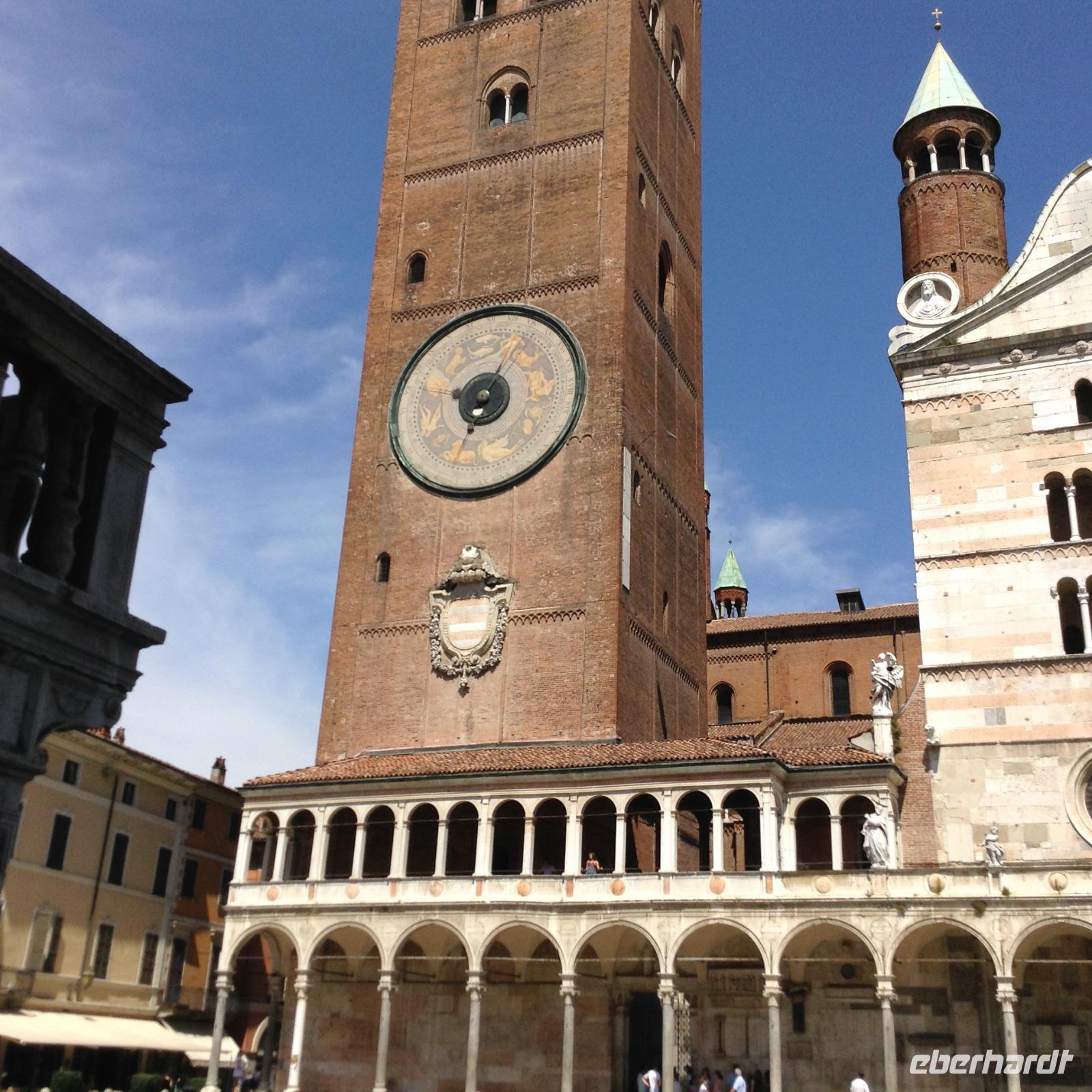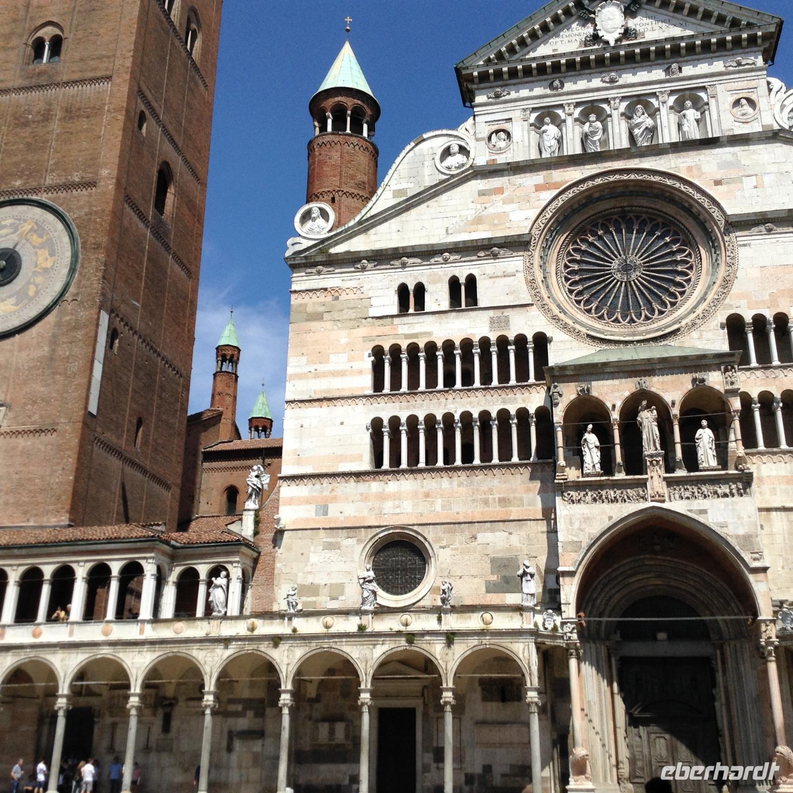 Mit tollem Sonnenaufgang wurden wir auf dem italienischen Festland begrüßt. Das Auschecken in Nizza dauerte etwas. Bevor wir unsere Fahrt in nördlicher Richtung angetreten haben, wollten wir im Schnelldurchlauf noch einiges von Nizza kennenlernen. Unsere Fahrt ging ein Stück entlang der Küstenautobahn A8, bevor wir ins bergige Hinterland in Richtung Poebene abbogen. Stellenweise war sehr zäher Verkehr, das hat uns Nerven und Zeit gekostet. Gegen Mittag waren wir in Cremona. Gemeinsam bummelten wir in Richtung Altstadt, waren überrascht und überwältigt von der Schönheit der Stadt der Geigenbauerlegenden. Noch bis heute wird die alte Tradition gewahrt, man trifft an vielen Ecken der Stadt auf die alte Tradition der Musikinstrumenteherstellung. Absolut toll ist die prächtige Kathedrale mit der schönen Marmorfassade, das Baptisterium und der hohe Campanile. Unsere Weiterfahrt ging südlich des Gardasees über Affi nach San Zeno zur letzten Zwischenübernachtung.