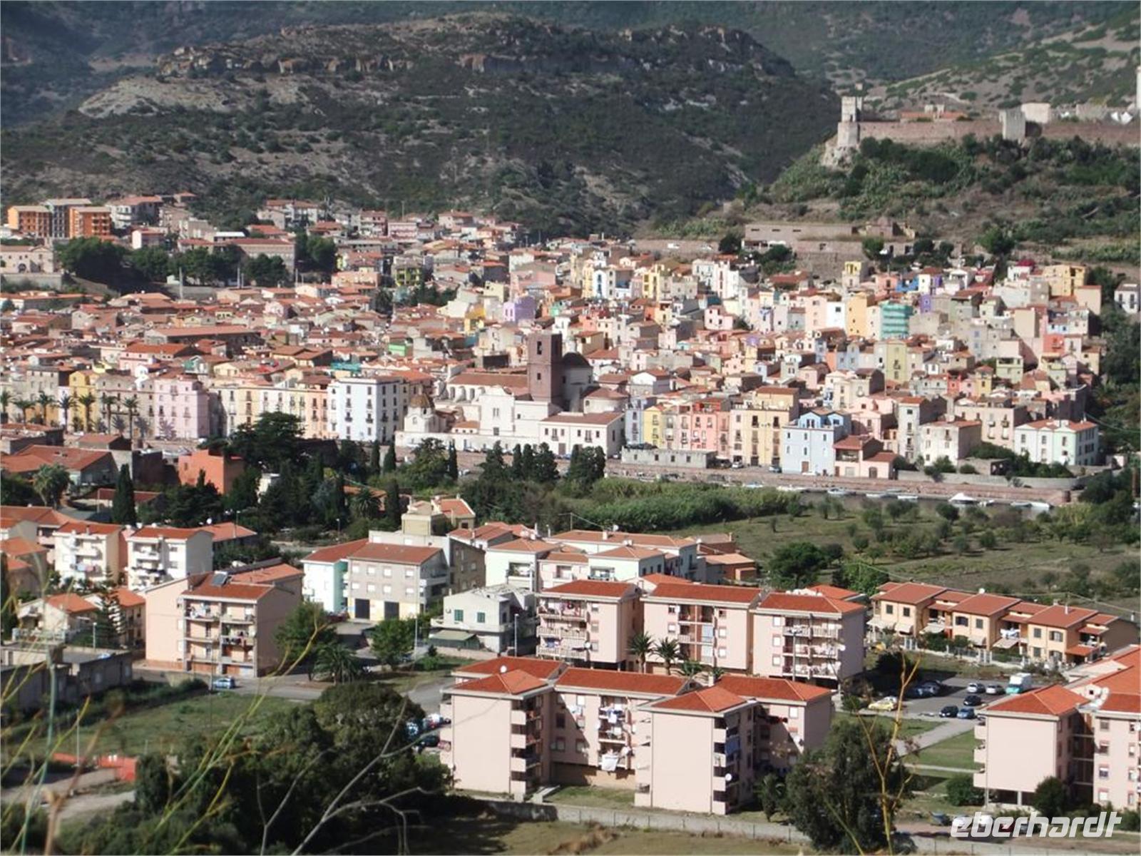 Ganz anders Bosa, eine Stadt zu Füßen einer Burg der genuesischen Malaspina-Familie. Jedes Jahr stelle ich fest, wieder einige der hohen Häuser, die sich dicht um den Burgberg drängen, einen kräftigen Farbanstrich erhalten haben. Von der Burgmauer hat man einen weiten Blick auf die Temomündung, das Meer und die umliegenden Berge. Fresken im kleinen Kirchlein künden von Aposteln und historischen Gestalten und vermitteln Weisheiten in der Legende von den drei Lebenden und den 3 Toten.