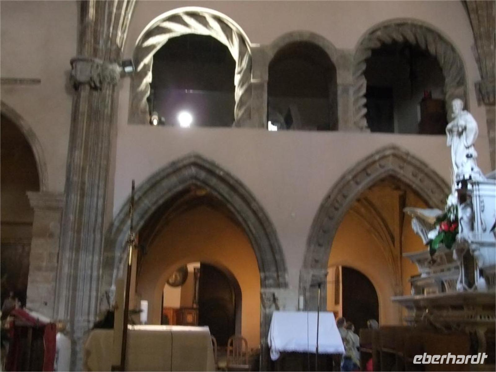 Zwei davon besuchen wir. Aber vorher sehen wir die alte und neue Basilika unser lieben Frau von Bonnario und Teile des anschließenden Klosters. Es war schon ein Wunder, als 1370 die Statue der Madonna mit einer brennenden Kerze in der Hand in einer Kiste angeschwemmt wurde. Von Wundern künden auch die Bilder, die zum Dank für die glücklichen Rettung aus Seenot geschenkt wurden, die vielen Schiffsmodelle und die Krücken an der Wand.