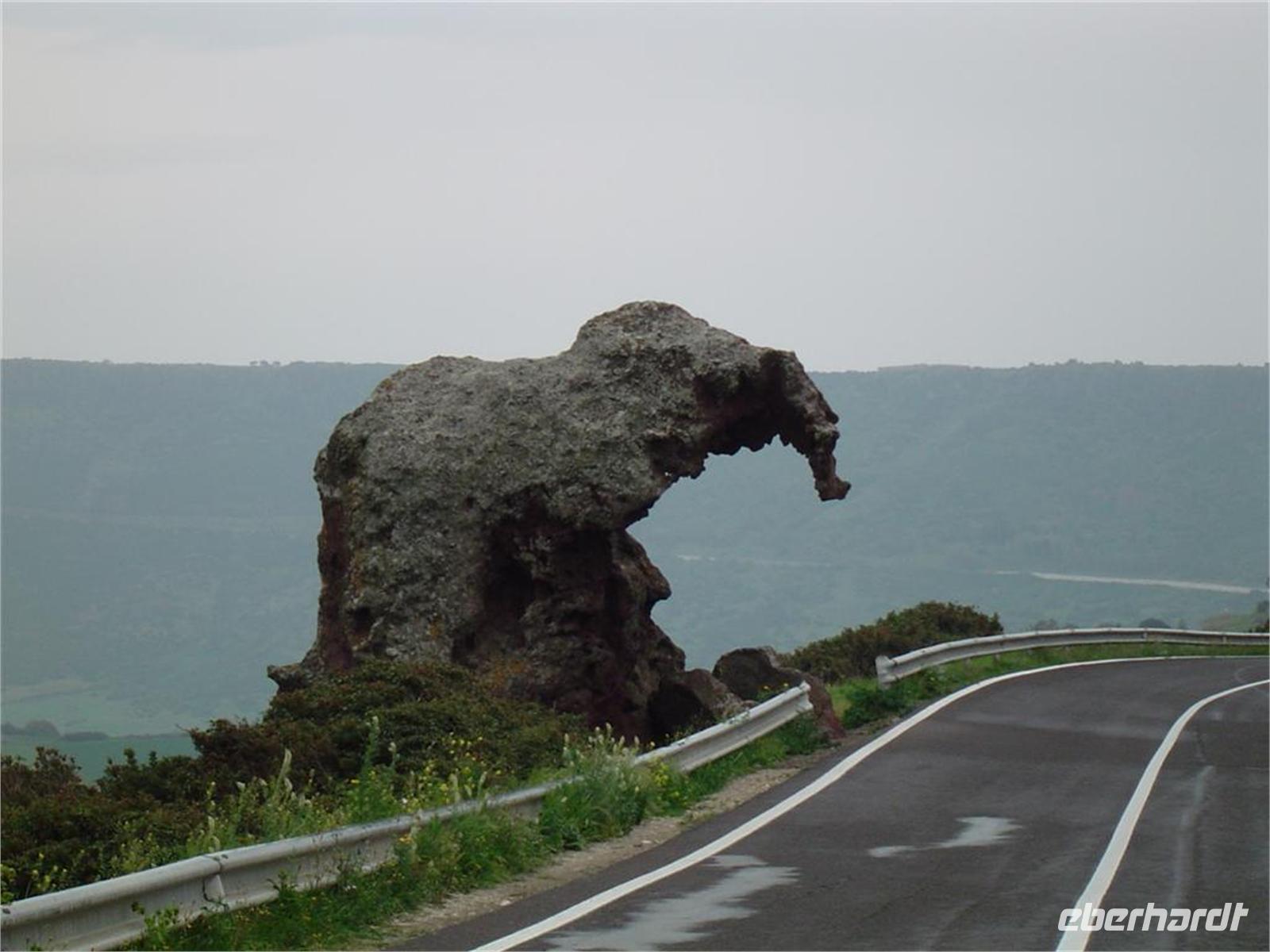 Auf der Fahrt zu der Nordspitze Sardinien sehen wir die beeindruckende Stadt Castelsardo, von einer Festung gekrönt. Nicht weit davon hat die Natur aus Trachyt, einem vulkanischen Gestein die bizarre Figur eines Elefanten geformt.