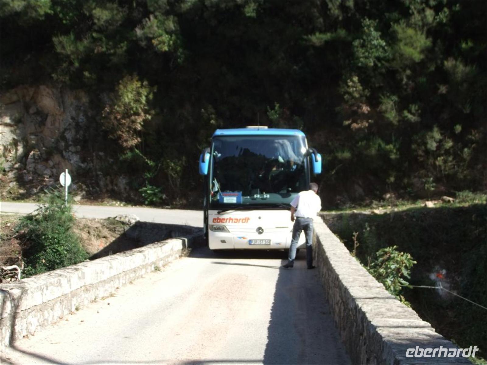Wir fahren in die Speluncaschlucht, müssen aber dann wenden, um das „Rückgrat" Korsikas, dieser Alpen im Meer auf einer anderen Straße zu überqueren. Man verbreitet endlich eine enge, gebogene Brücke, die früher unseren Buschauffeuren viel abverlangt hat. Es ist schon dunkel als wir unser Hotel auf der Nehrung des großen Strandsees von Biguglia erreichen. Ich bin wie immer vom Foyer des Hotels begeistert, das eher ein mineralogisches Museum ist.