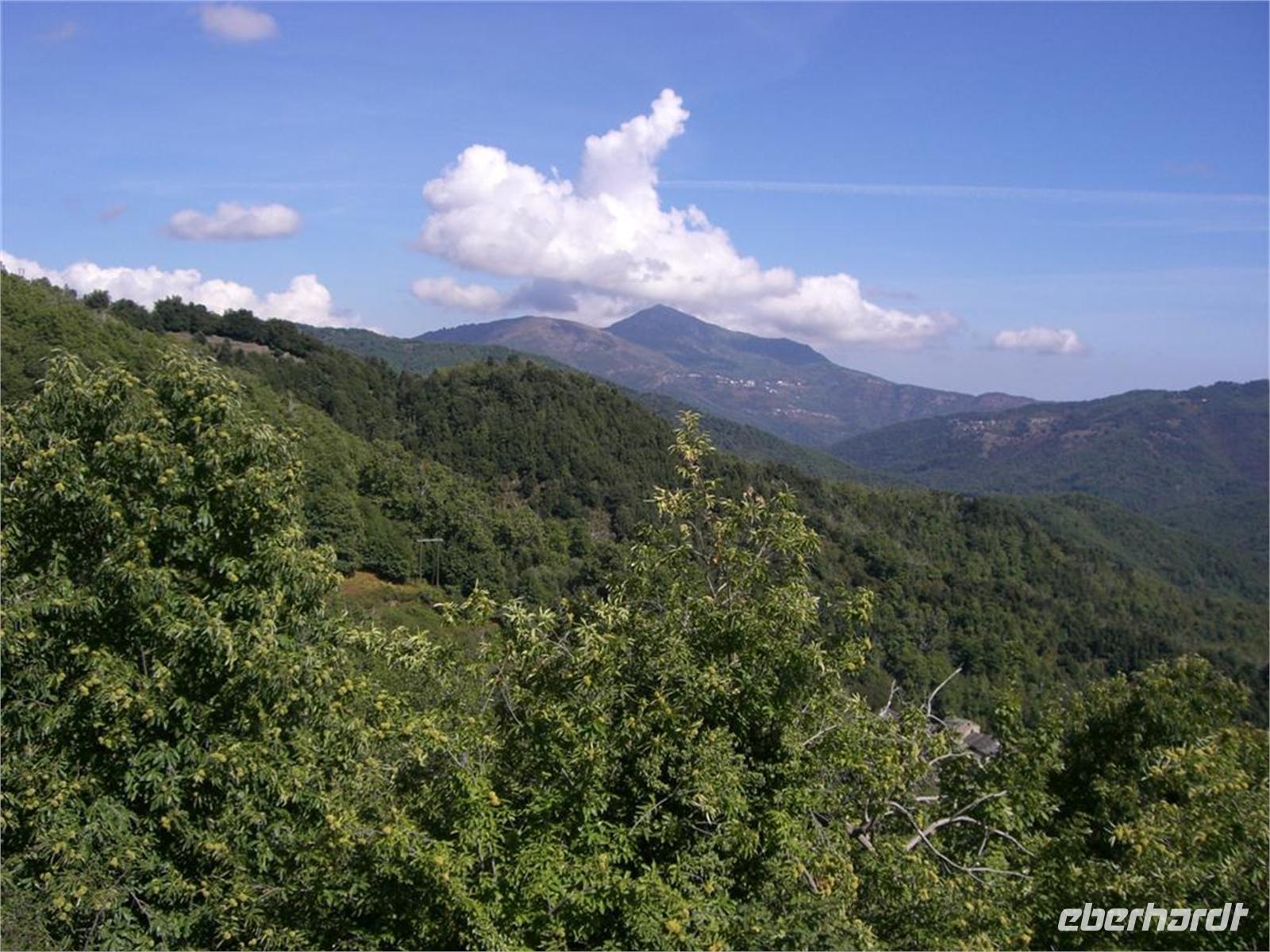 Die Castagniccia ist im Herbst am schönsten, wenn die großen grünen Früchte der Esskastanie an den bunt gewordenen Bäumen herangereift sind. Es ist der Baum des Lebens, Nahrungsgrundlage schon seit der Jungsteinzeit, aber erst im 16.Jhdt. durch genuesisches Gesetz bewusst angepflanzt. Nach dem Erliegen des Getreideanbaus war die Kastanie das Grundnahrungsmittel und dreimal billiger als Weizenmehl. Heute ist es zehnmal teurer und Grundlage viele Speisen und des ausgezeichneten Kastanienbieres.