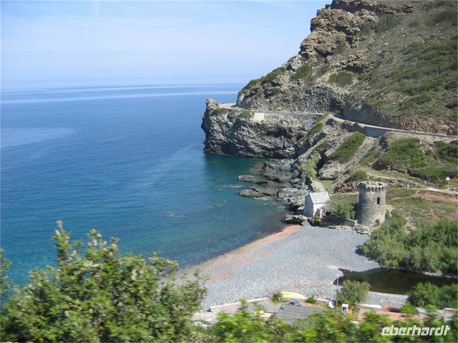 Noch einmal Meer und Felsen, kleine Dörfer und winzige Strände, alte Wachtürme der Genuesen und eine enge Straße mit notwendigen Ausweichmanövern - die Korsen weichen geschickt dem großen Reisebus aus. Es ist das Cap Corse mit seiner wilden Felslandschaft auf der Westseite und seiner kultivierten Ostseite.