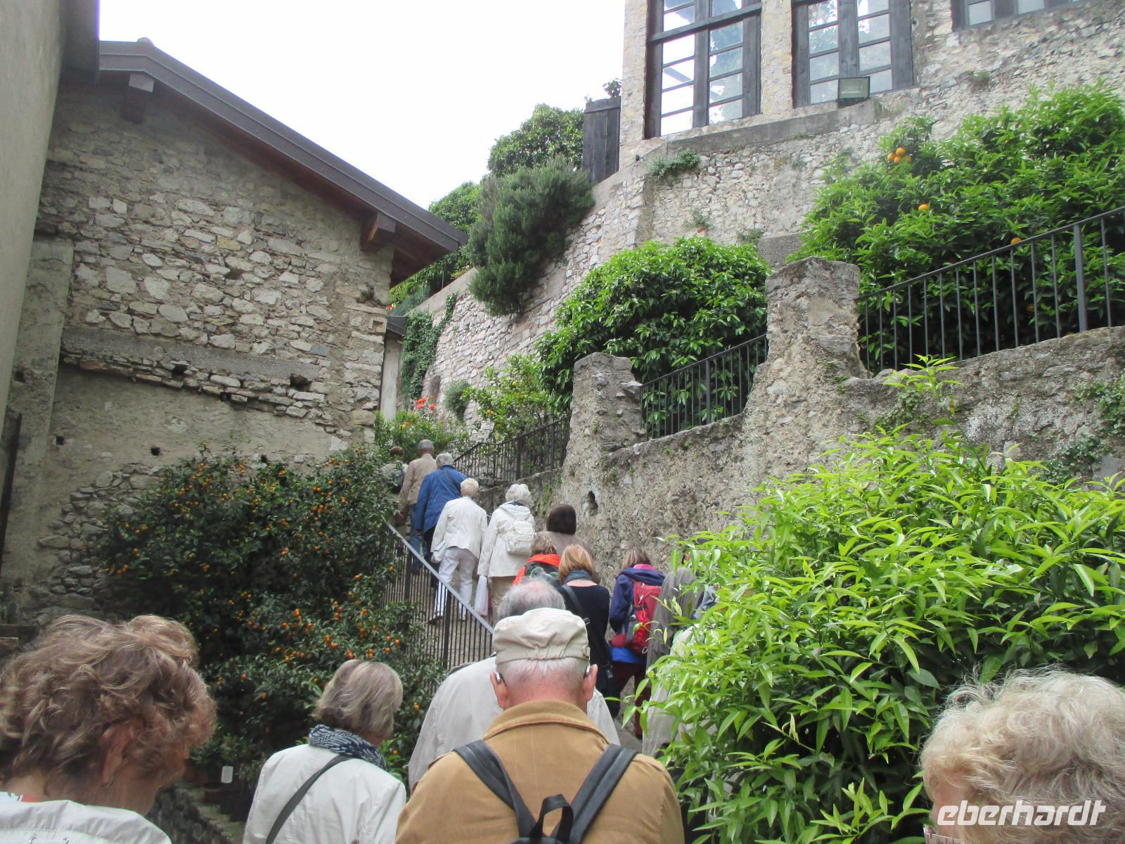 War es oben doch etwas kühl, kann man hier am See in der warmen Sonne sitzen und italienische Köstlichkeiten genießen! Einige Gäste besichtigen auch die Scaligerburg, die in der Pulverkammer ebenfalls an den Aufenthalt von Herrn Goethe erinnert. Vom Turm auch hier ein herrlicher Blick in die Landschaft!