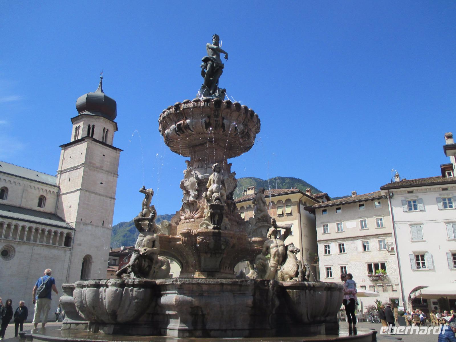 Mit einigen Gästen spazieren wir noch zur Burg Buonconsiglio mit ihrem imposanten Mauerwerk. Sie war über Jahrhunderte die Residenz der Trienter Fürstbischöfe. Schon Albrecht Dürer hat sie skizziert. Nach einer Mittagspause treffen wir uns am Neptunbrunnen, dem heimlichen Wahrzeichen der Stadt.