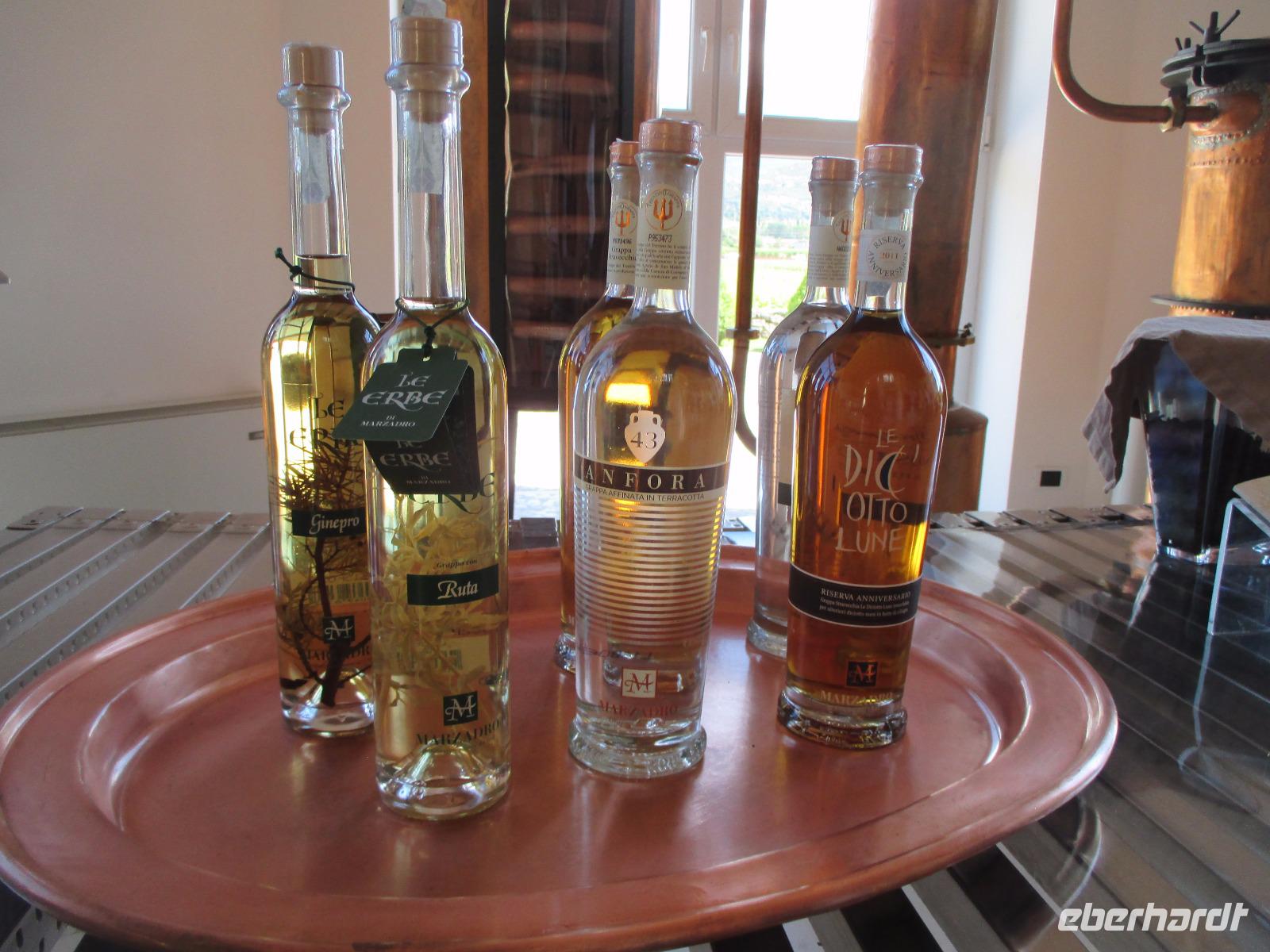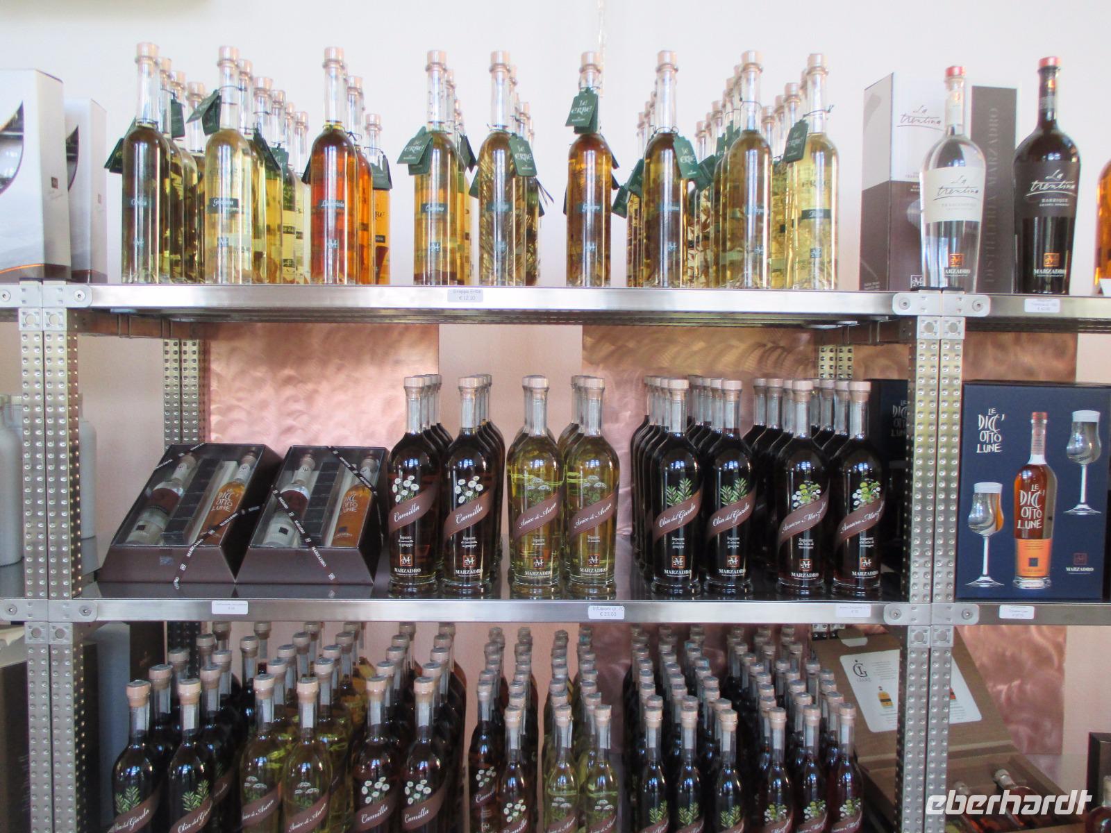 Wir fahren weiter zur Grappabrennerei Marzadro nach Nogaredo. Bevor es ans Verkosten geht, besichtigen wir während einer Führung die modernen Produktionshallen und Lagerräume und erfahren die Geschichte der Familie Marzadro und ihres Grappas. Anschließend können wir all die interessanten Grappasorten oder auch selbsthergestellten Liköre in diversen Geschmacksrichtungen probieren. Es ist sicher für jeden Geschmack etwas dabei, und manch Fläschchen tritt auch den Weg nach Deutschland an.