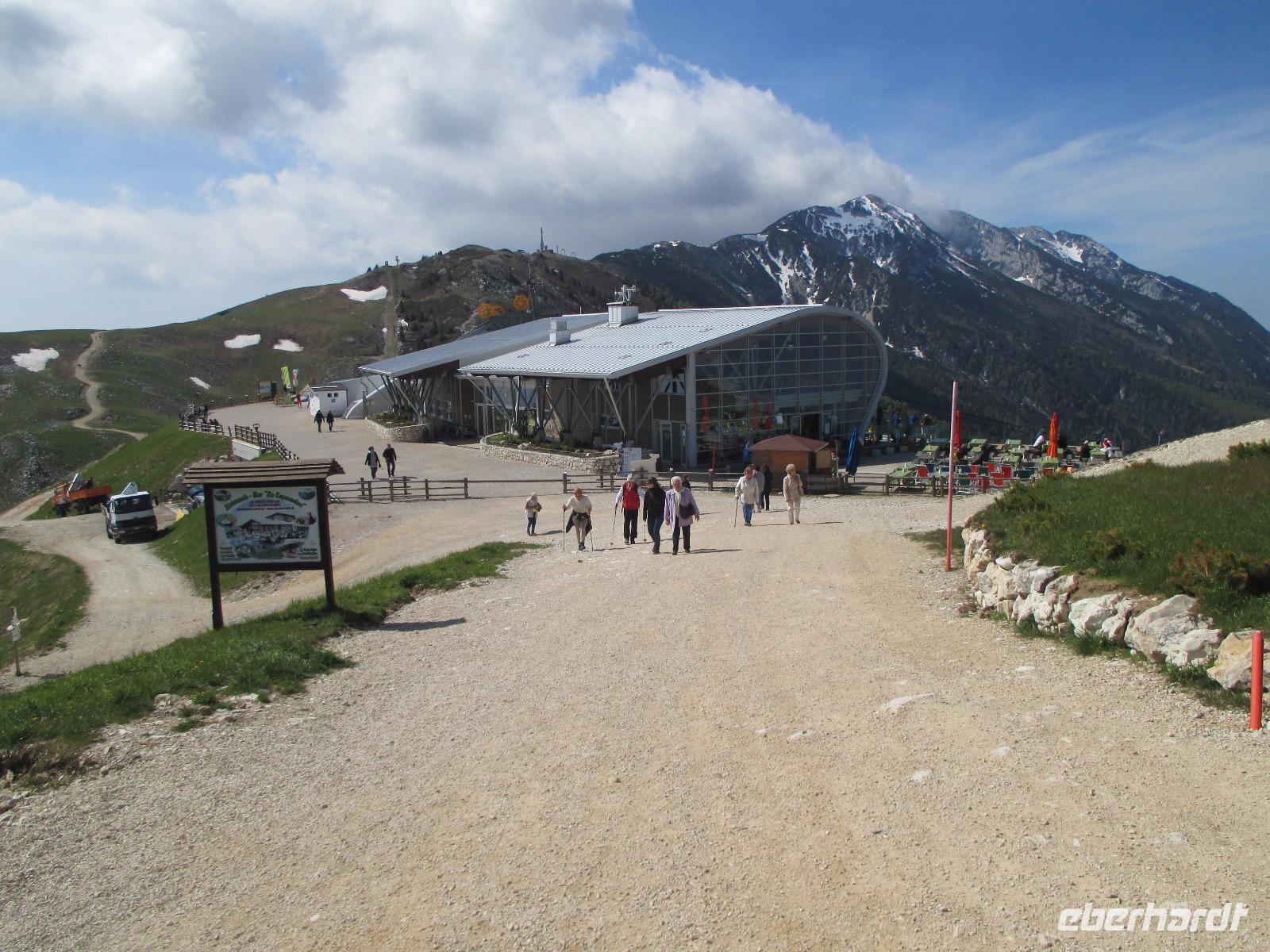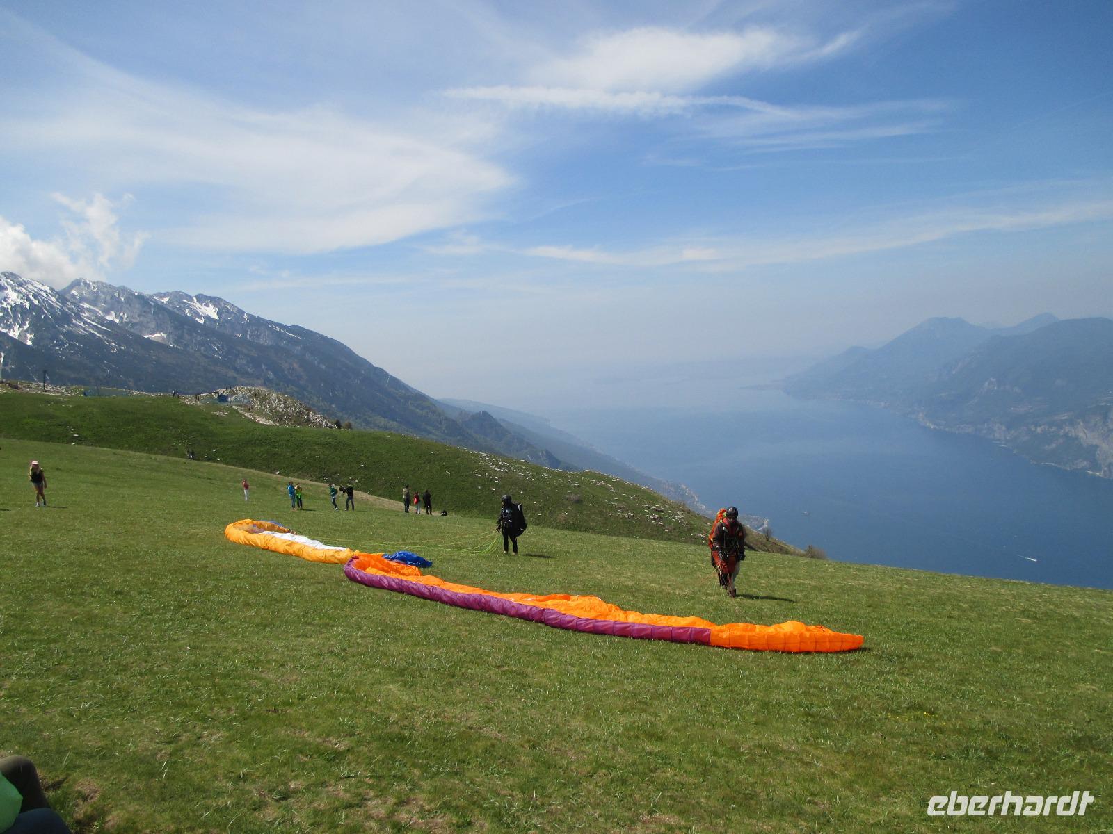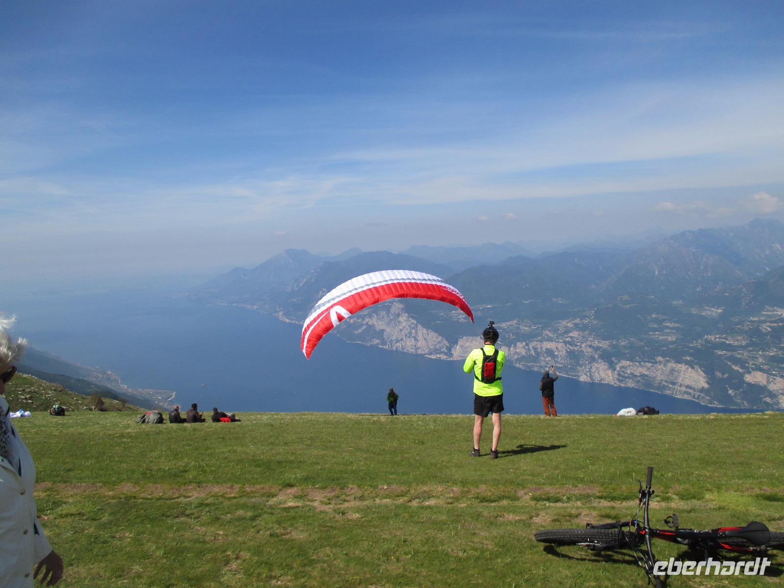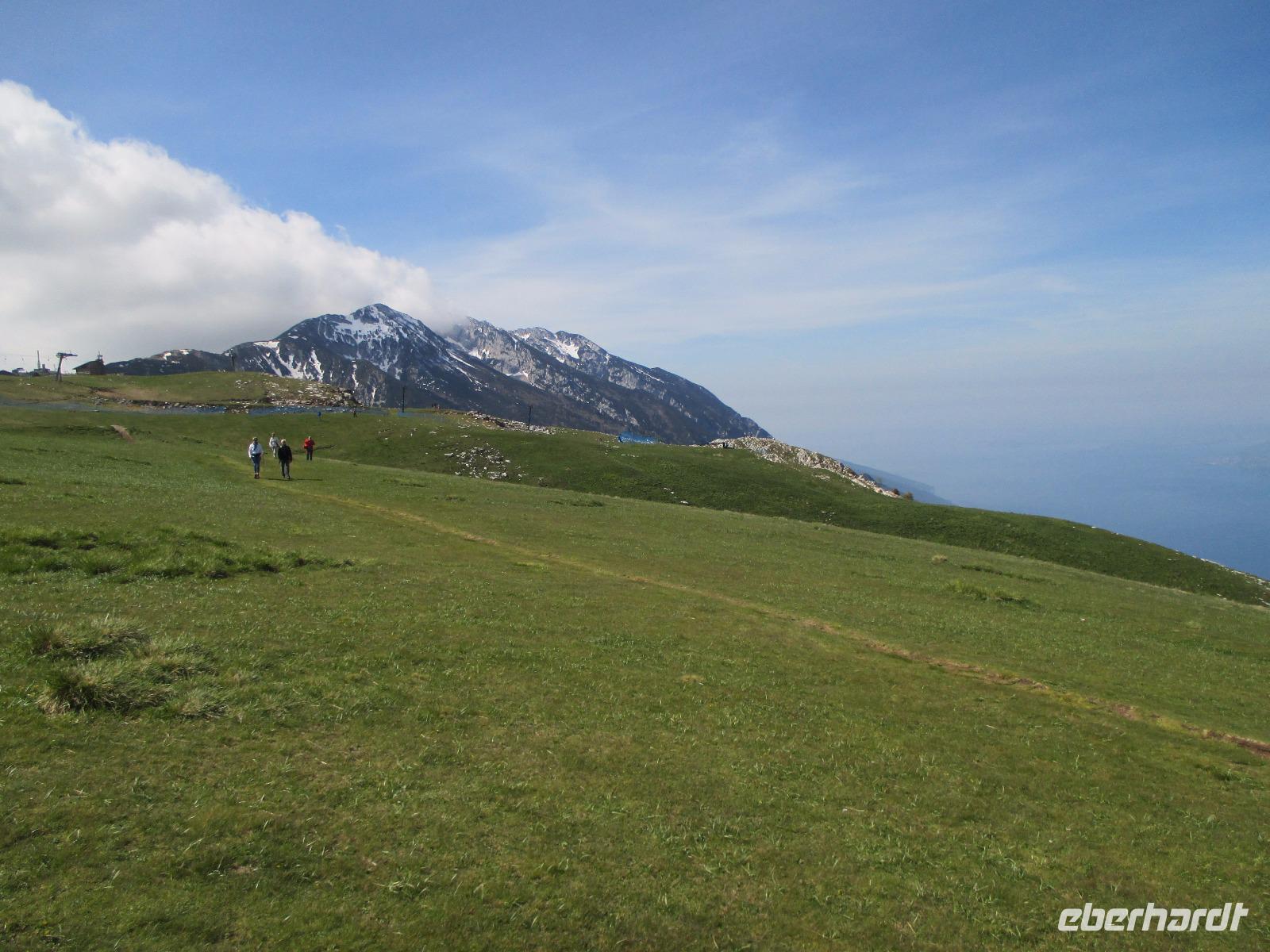 Fast alle Gäste nehmen heute bei herrlichem Sonnenschein am fakultativen Ausflug zum Monte Baldo teil. Unser Bus bringt uns nach Malcesine. Mit der Seilbahn fahren wir auf den Berg hinauf zur Bergstation Tratto Spino bis auf 1760 Meter. Langsam rotiert die Kabine in der 2. Teilstrecke um 360°. Wir wandern über Grasmatten zu einem Aussichtspunkt, und genießen den herrlichen Ausblick über den See und die Berge. Der Monte Baldo wird als Botanischer Garten von Italien oder sogar von Europa bezeichnet, da hier Hunderte Pflanzen gedeihen, einige sind sogar endemisch! Wir entdecken herrliche Blumenwiesen mit mehreren Arten von Enzian, mit Trollblumen, Orchideen, Schlüsselblumen und vielen uns unbekannten Arten. Wir beobachten die Gleitschirmflieger bei ihrem Start in das unendliche Blau über dem See.