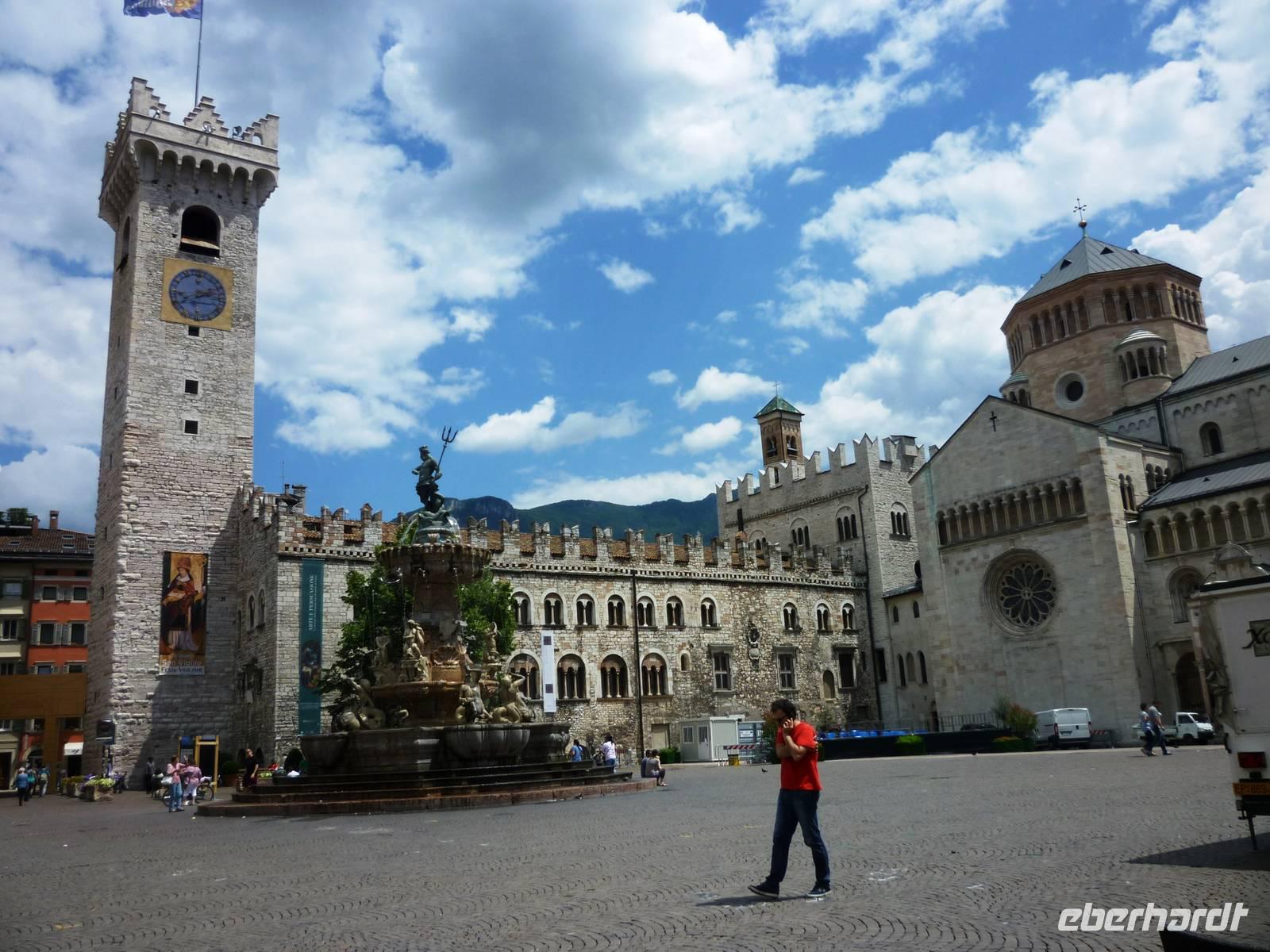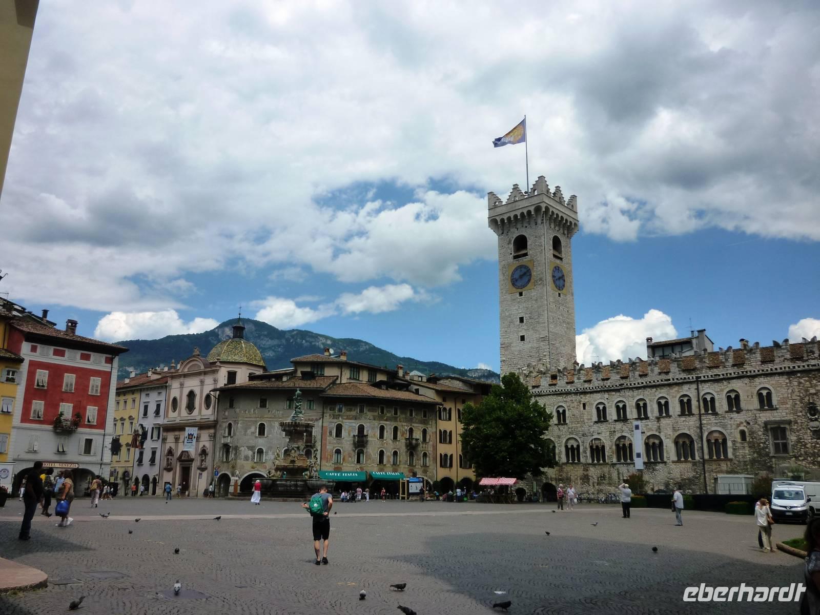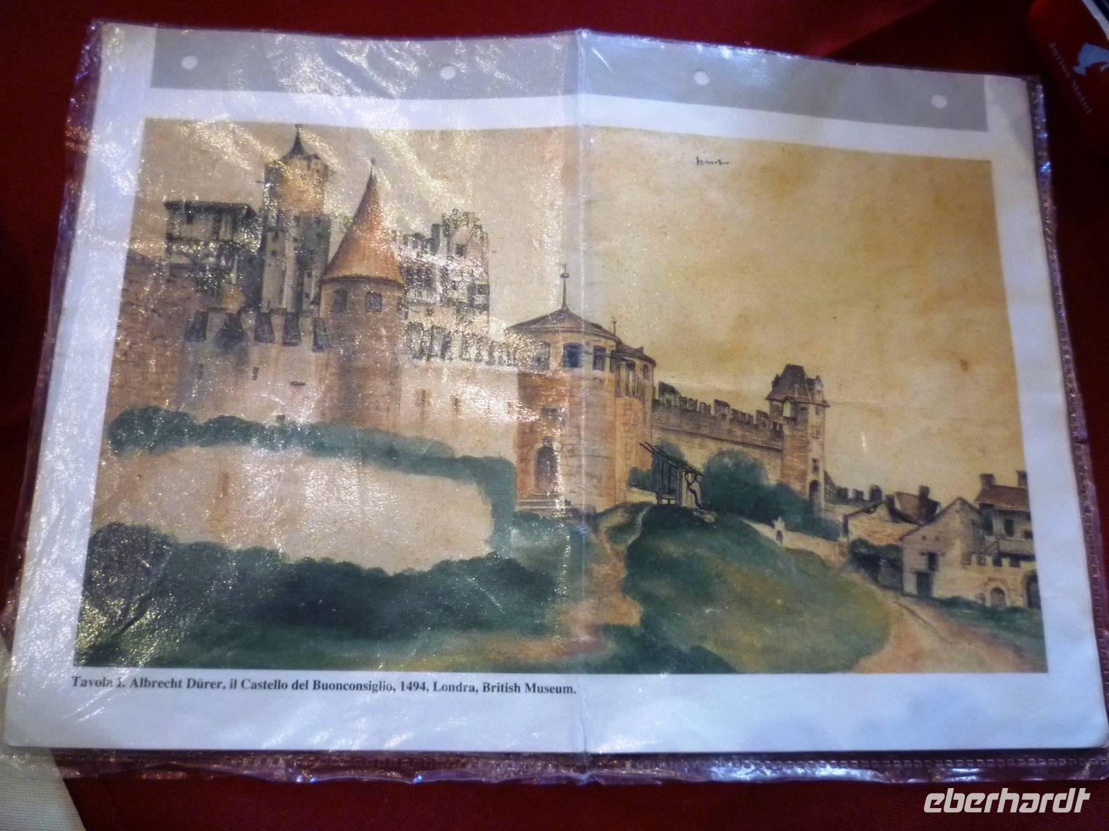 Gegen 09.00 Uhr brachen wir nach Trento auf, über die Autobahn gelangten wir nach etwa einer Stunde Fahrt an das Ufer des Eisacks in Trento. Dort trafen wir Maria Hoffer zum ausgiebigen Stadtrundgang. Zunächst erkundeten wir die Burg Buonconsiglio mit ihrem imposanten Außenmauern, Türmen und Loggien. Marie hatte ein Aquarell von Albrecht Dürer mitgebracht, das den Zustand der Burg vor 500 Jahren zeigte. Weiter ging es, vorbei an den Palazzi der Alberto-Colico und Thun zum Domplatz und in das Dominnere. Nach diesem ausführlichen und informativen Rundgang boten Cafes und Restaurants rund um den Domplatz genügend Erfrischungen an, leider nicht für die Füße! Nach der Pause setzten wir unsere Fahrt fort, diesmal zur Grappabrennerei Marzadro. In der weiträumigen, gepflegten Anlage erwartete man uns bereits, sofort begann die Führung durch die modernen Produktionshallen und Lagerräume für den Trester. Anschließend konnten wir nach Herzenslust Grappa probieren, herb, scharf, süß, durchwachsen im Geschmack, war für jeden etwas zu finden.